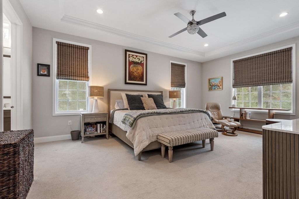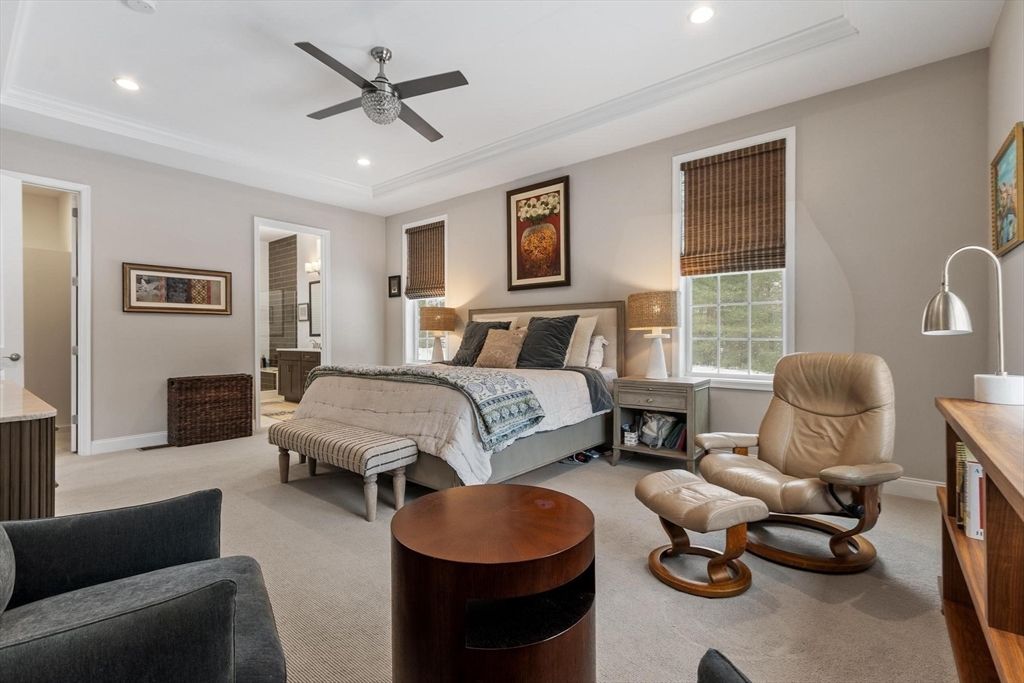 Welcome to 6 Jameson Drive at Regency Glen Ellen. This Exceptional residence is loaded with upgrades including premium appliances, cabinetry, countertops, designer lighting, gorgeous flooring throughout, Smart Home wired and immersive Surround sound throughout. The Stunning Open-Concept Kitchen commands the home with a Grand Center Island and flows seamlessly into the dining area and great room w/ soaring ceilings, fireplace, and walls of windows for abundant natural light. Step outside to your private deck—perfect for morning coffee or evening dining. The first-floor primary suite showcases a walk-in closet, double vanity en-suite & custom walk-in shower. Main level includes a private office w/ French doors, second bedroom, full bath, & laundry w/sink. Upstairs reveals a spacious loft, third bedroom & full bath, while the finished lower level delivers exceptional extra living space & full bath. Resort Style Living w/Outdoor Heated Pool,Tennis Courts,Pickleball,Bocce & Walking trails.