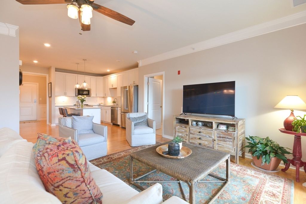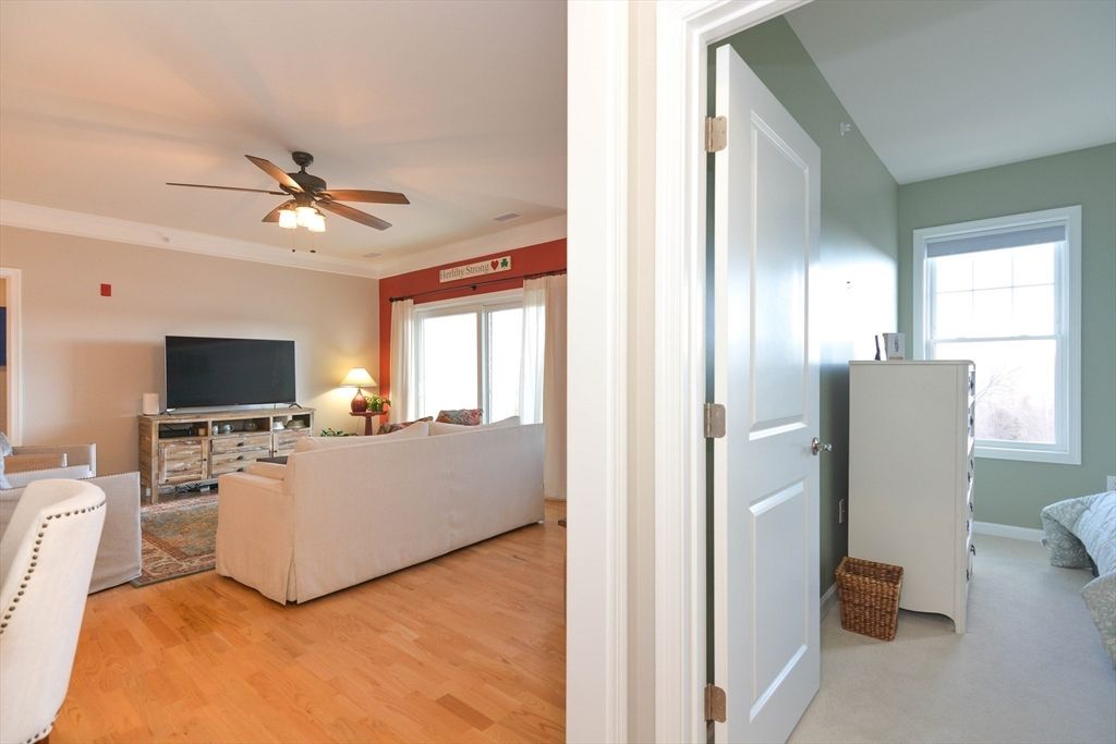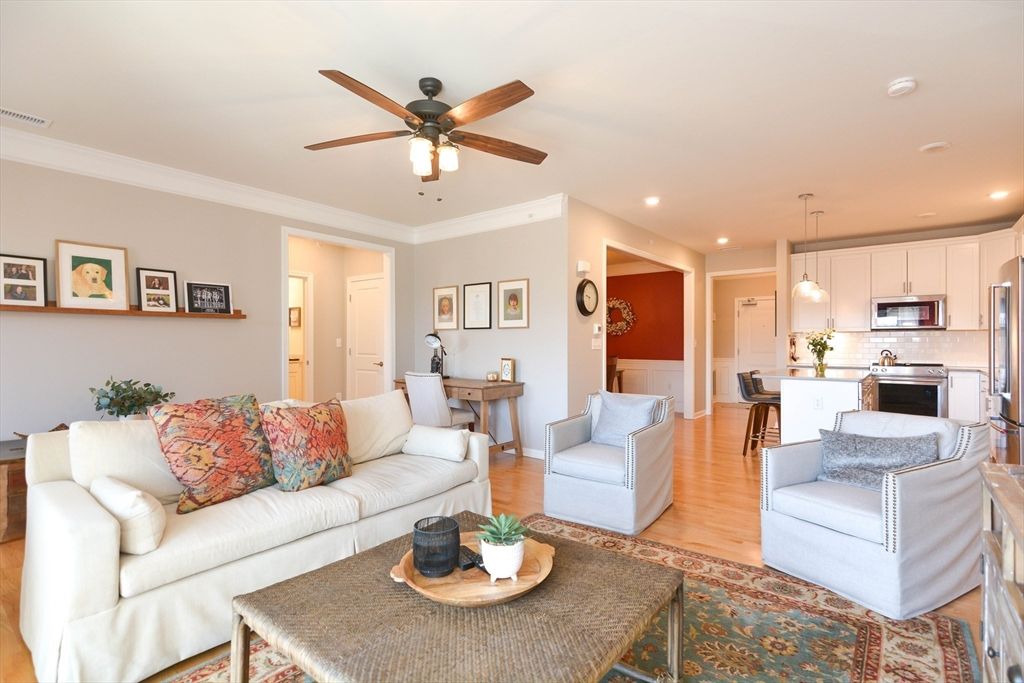 Top-floor 1,495 sq ft condo at 62+ Riverside Woods in highly desirable Andover. This light-filled home features an open-concept living and dining area, ideal for both everyday living and entertaining. The spacious primary suite offers two walk-in closets and a private bath with a newly updated shower door. A versatile second bedroom is perfect for guests, a home office, or additional storage. The updated kitchen includes quartz countertops and added pull-out cabinetry for enhanced functionality. Enjoy peaceful mornings on your private deck, along with the added privacy of having only one neighboring unit. Elevator access to all levels, including garage parking (Space #40), ensures convenience. Located just minutes from Andover’s charming downtown with easy access to I-495 and I-93. ***Showings start at open house on Sunday 3/29 from 11am - 1pm**