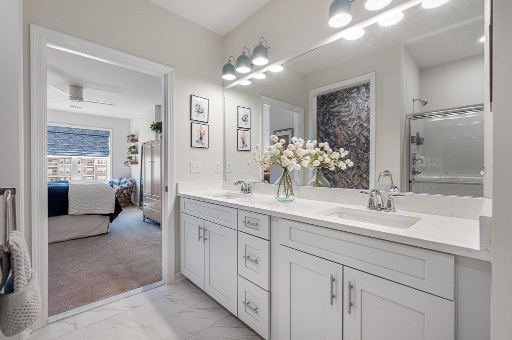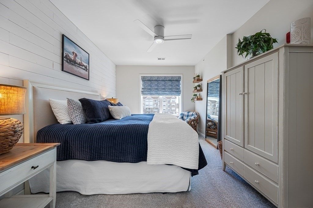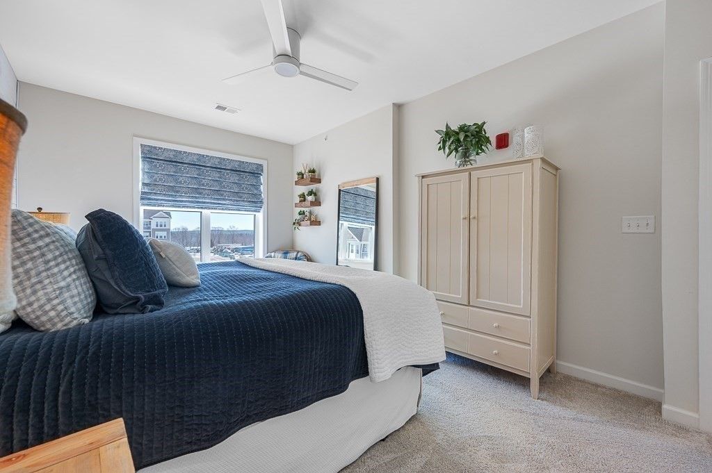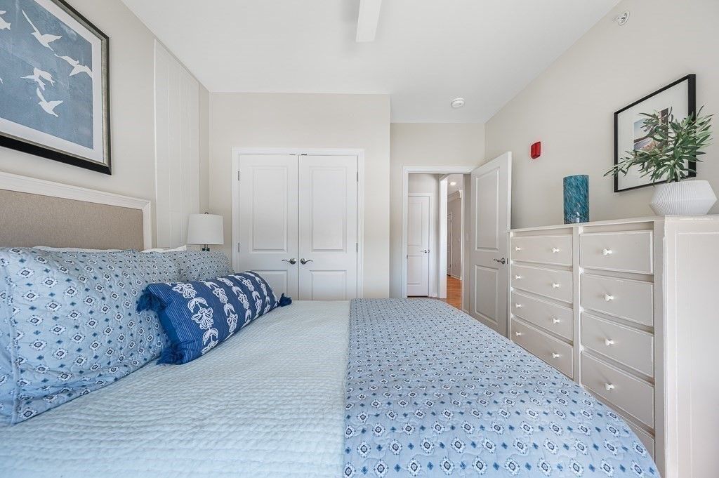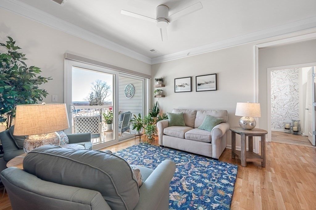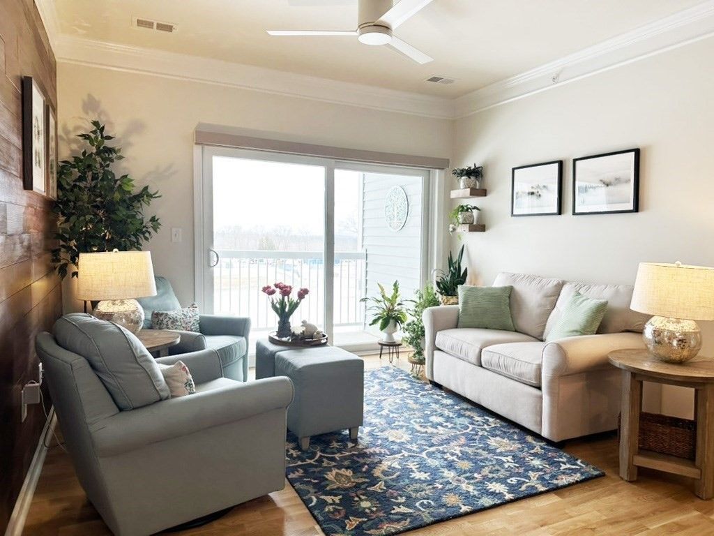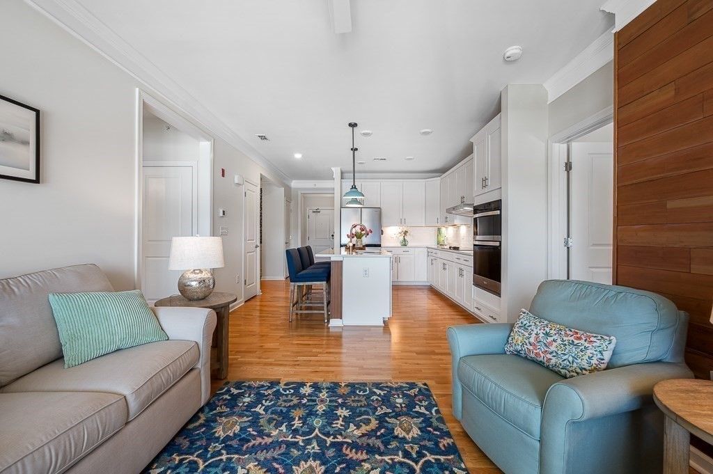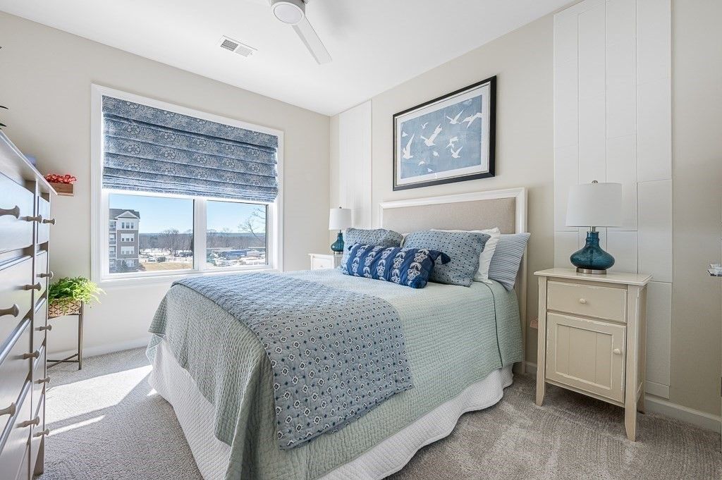Better than new! Overlooking a grassy knoll with mature landscaping and a view of the lake, this sun-drenched top-floor "Hayden" condo in the luxury over 55 community of Chauncy Lake is not to be missed. Offering 2 generously sized bedrooms, 2 full baths, separate dining area and a versatile flex room that you can tailor to your needs. Elegant finishes include 9' ceilings, designer cabinets, quartz counters, high end appliances, upgraded lighting, custom moldings, & curated window & wall treatments. Enjoy the convenience of a deeded, heated garage parking spot near the elevator, plus the savings and comfort of natural gas heating and on demand hot water. Why wait for new construction when you can move into this stylish, ready-to-enjoy home for less? Featuring an on site full time lifestyle director and condo manager, so you can focus on the lake views, walking trails, community room, gym and beautiful pool. Convenient to major routes and just 30 miles from Boston! 1 YEAR HOME WARRANTY!