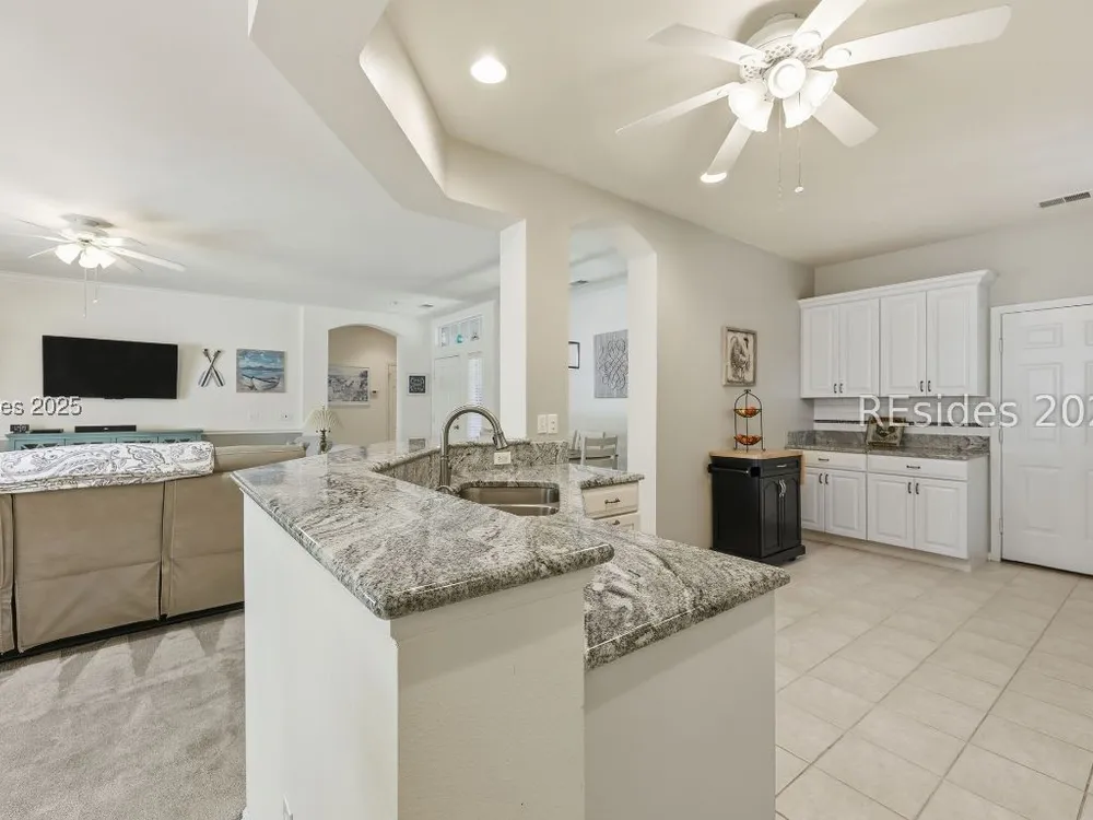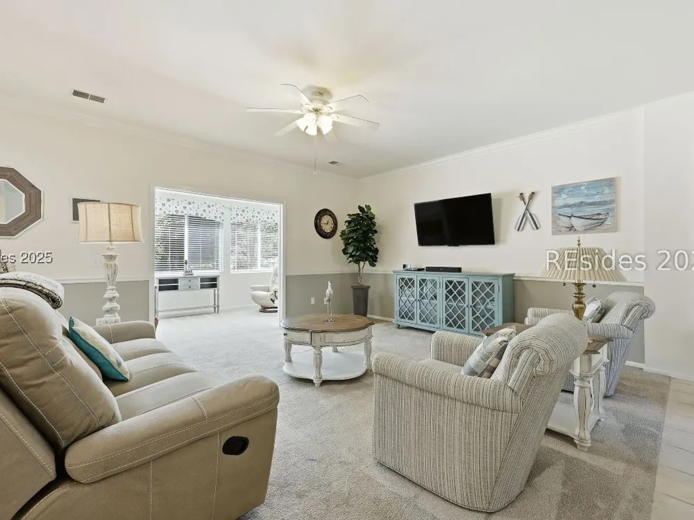 Welcome to the good life in Sun City Hilton Head! This expanded Camden/Shenandoah model is perfectly positioned on a coveted cul-de-sac just off Lake Somerset, offering a peaceful retreat with easy access to endless community amenities. Step inside to a light-filled, open layout featuring a spacious kitchen with crisp white cabinetry, tasteful granite counters, stainless appliances, and large center island for entertaining. Enjoy some morning coffee or wind down after a round of golf in the enclosed Carolina room which serves as a four-season extension of the main living space. Both baths have been beautifully updated offering granite counters with stylish vanities and light fixtures. Just moments from world-class golf, pools, fitness centers, and over 100 social clubs, this home invites you to live each day like you're on vacation in the heart of the Lowcountry.