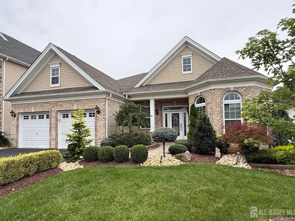 Prestigious home in sought-after Regency at Monroe located on a cul-de-sac. This full brick front home features paver walkway & patio, leaded glass entry door, library/den, Huge center-island kitchen w/quartz countertops, top of the line appliances, sunroom w/vaulted clg, great rm w/gas fireplace, grand primary suite incls luxurious bath w/oversized stall shower, garage has finished walkup attic staircase. Come enjoy the wonderful lifestyle of Regency and all that it offers.