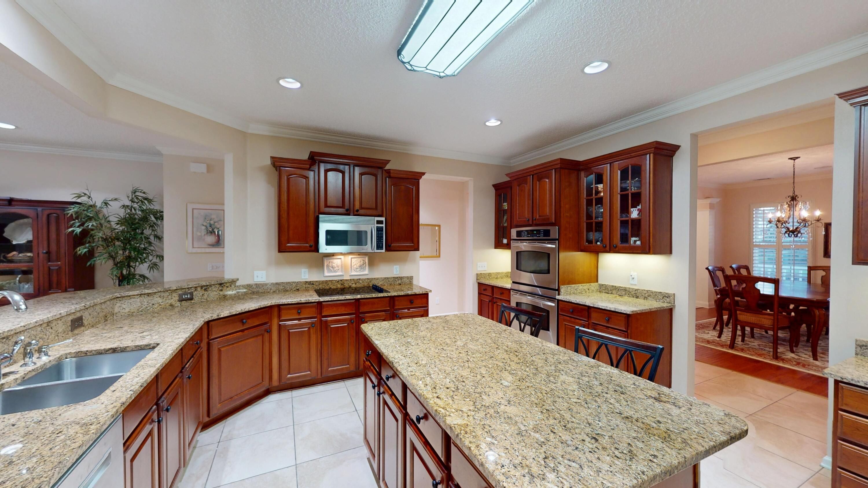 Sycamore model in Sun City's 55+ resort-style community! This 3BR/3.5BA home with den/office features private baths for each bedroom, a granite kitchen with breakfast bar, formal dining, and accent-lit cabinetry. The great room opens to a heated/cooled lanai, while a paver patio and landscaped backdrop create privacy with an open feel. Enjoy an extended garage with built-ins and pass-through door, plus new roof and dual HVACs in 2025. Full-size laundry with ample cabinetry adds convenience--an estate-sized home combining comfort, value, and true move-in readiness.