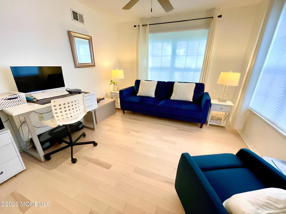 Exquisitely presented Newbury II model in the coveted Fairways at Lake Ridge community features 2 bedrooms, 2 baths, & a 2-car garage. Encompassing 1,706 square feet of elegant living space, beautiful oak hardwood floors flow throughout the living spaces, creating a warm and cohesive design. A brand-new HVAC system (2025) ensures year-round comfort and peace of mind. The kitchen showcases granite countertops, white cabinetry & a fixed center island that gleams under abundant natural light from the sliding glass door to your private patio. Off the formal dining room, Glass French doors enclose the office/bonus room, providing sound privacy while maintaining the home's open-concept flow. The primary suite offers modern en-suite with walk in shower, high ceilings & spacious walk-in closet. This home is truly in move in ready condition, and the most discerning buyers will appreciate the attention to detail throughout. Professionally painted throughout, impeccably clean, this home is an absolute model, and a must see! Make an appointment today!