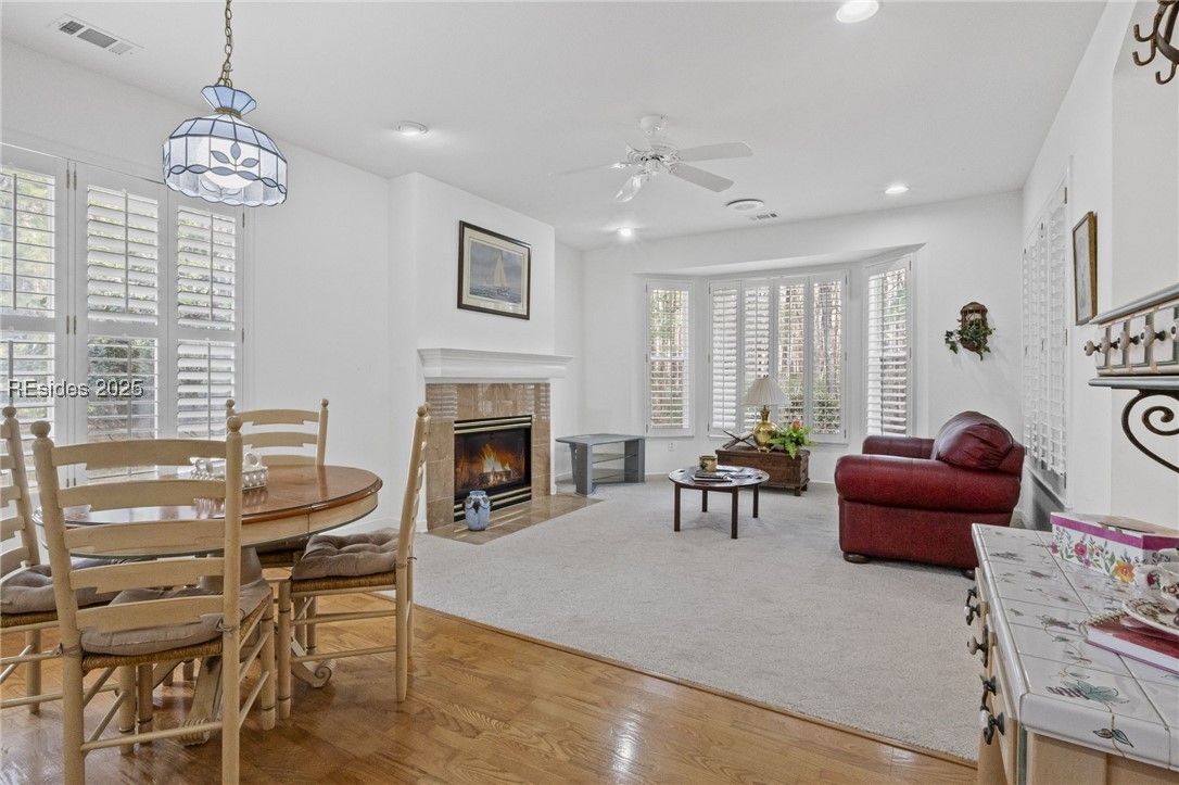MOTIVATED SELLER! Desirable floor plan w/3 Bedrooms or 2+ den and 2.5 bathrooms. Backing up to a wooded Nature Preserve adds to the serenity of this setting. Complete w/a Great room, Dining area, a Carolina Room PLUS screened Lanai just waiting for you to enjoy your morning coffee or evening aperitif as you sit and enjoy the view. A large Kitchen with bar seating and an area for a breakfast table all which overlooks the Carolina Room & gas Fireplace allowing a wonderful room in which to watch TV or read. An oversized 2-car garage provides space for your golf-cart or storage. An open patio also in addition to the screened lanai. Some furn. available. Come see and make this your own! Offering a $10,000. CREDIT for upgrades!