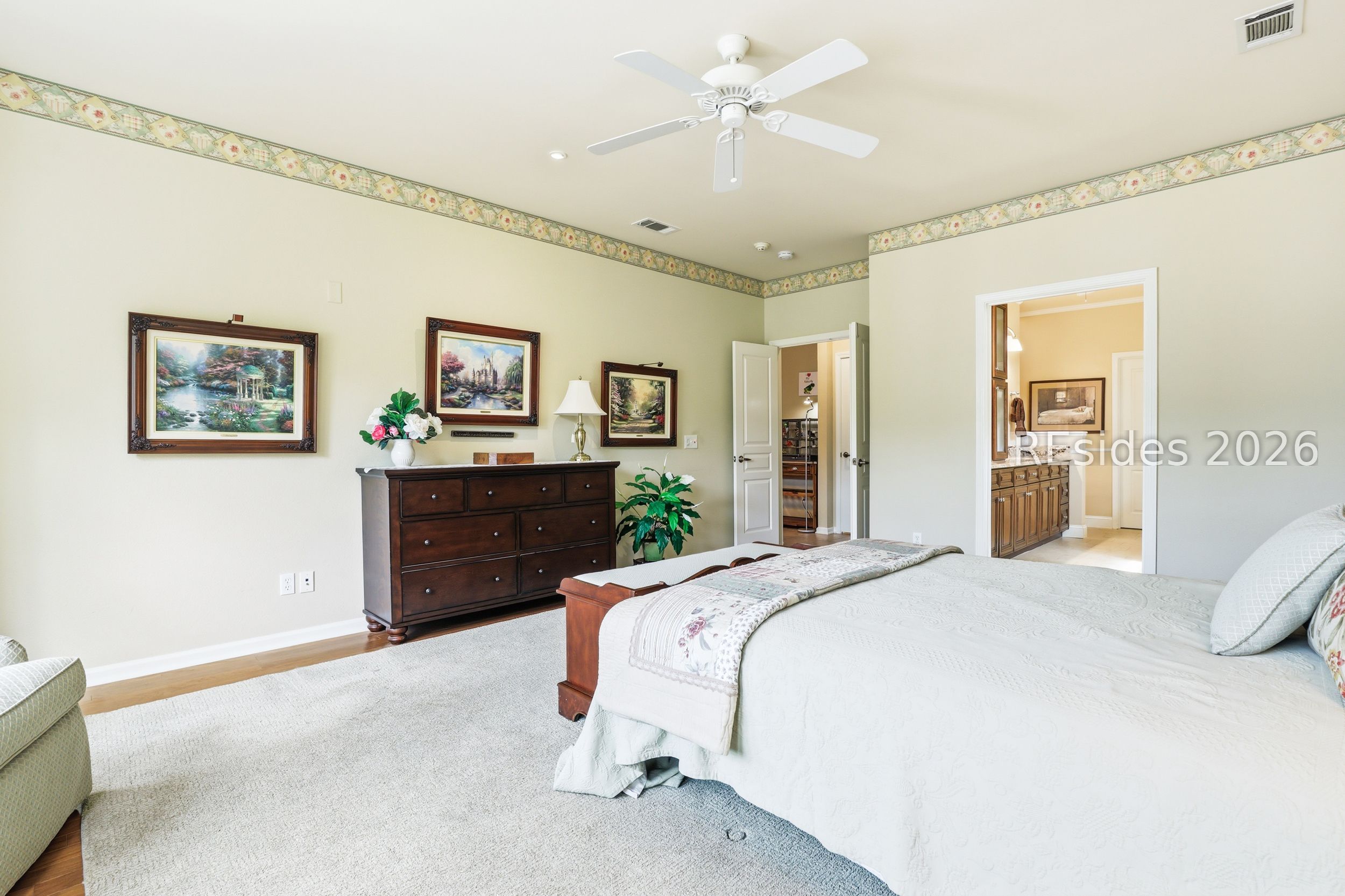 - Attic Access, Built-in Features, Ceiling Fan(s), Carbon Monoxide Detector, Cathedral Ceiling(s), Fire Extinguisher, Fireplace, High Ceilings, Main Level Primary, Multiple Primary Bathrooms, Permanent Attic Stairs, Smooth Ceilings, Separate Shower, Smart Thermostat, Cable TV, Vaulted Ceiling(s), Wired for Data, Central Vacuum, Entrance Foyer, Eat-in Kitchen, Pantry