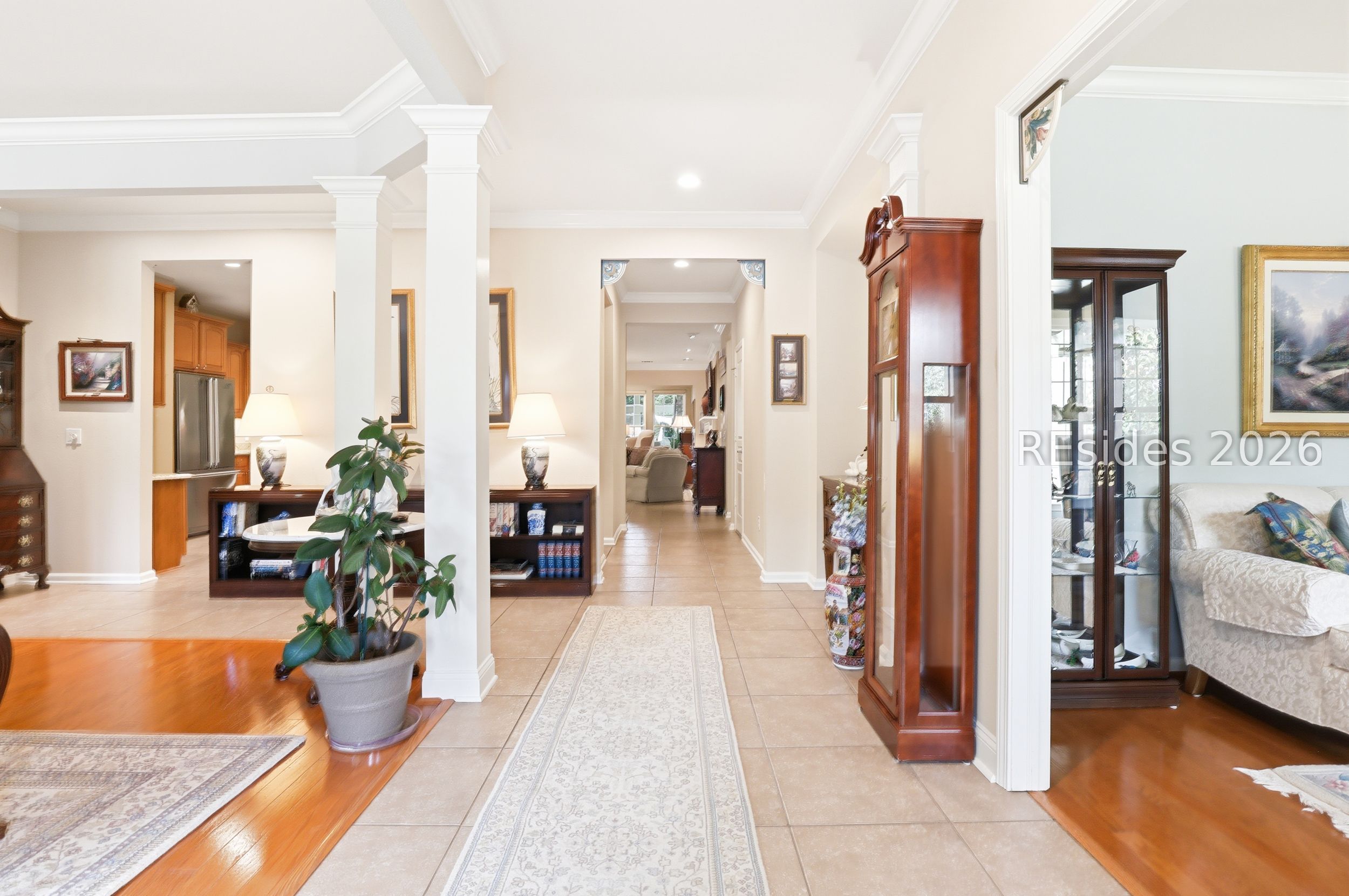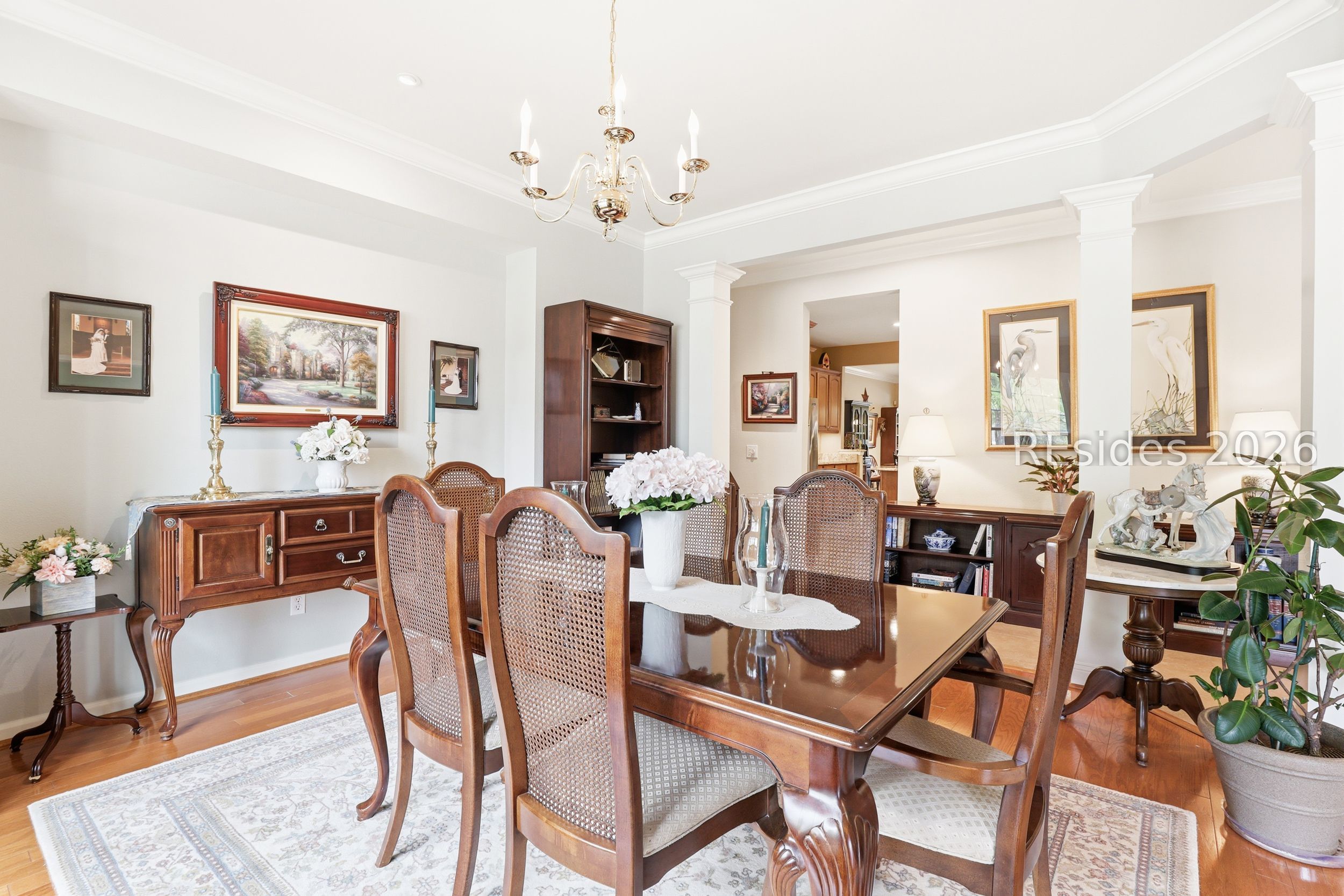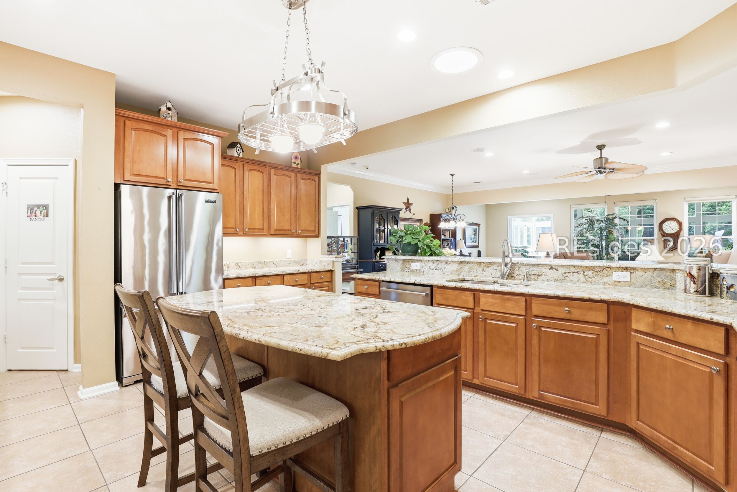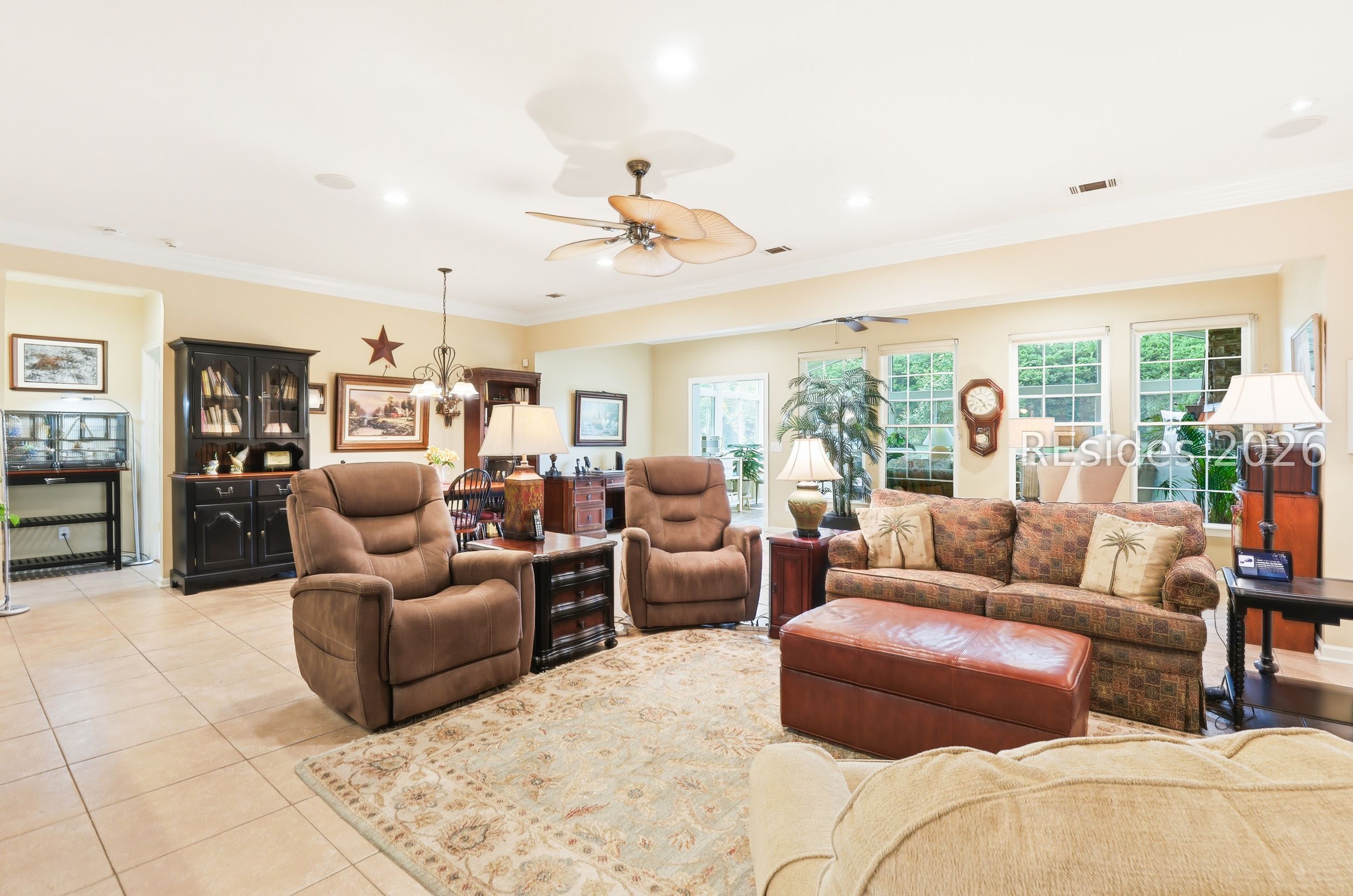 Move-in-ready Sycamore model with over $150,000 in upgrades, including the entire home being re-stuccoed. Located on the south side of Sun City with low Beaufort County taxes, this home offers gorgeous curb appeal with an updated landscaping package featuring shrubs, sod, and a newer irrigation system. Major updates include a newer roof, HVAC, water heater, and interior paint. The rare 2.5-car garage, beautiful landscaping, and covered front porch make a striking first impression.With over 3,000 square feet, this home offers 3 bedrooms, each with its own private bathroom, including one with a step-in Kohler Jacuzzi tub, plus a convenient powder room for guests. There is no carpet throughout. The layout includes a formal dining room, flex space, and an open-concept design perfect for entertaining. The kitchen features ample cabinetry, granite countertops, a center island, double ovens, a gas stove, and a Viking refrigerator. The living room is enhanced by built-in bookshelves and a gas fireplace.The owner's suite includes a large walk-in closet with custom organization system and a remodeled en suite bath. A standout feature is the expansive 16x24 four-season sunroom with a private wooded view and an additional fireplace. Other features include walk-up attic access with ample storage, washer and dryer conveying, laundry room with utility sink, smooth ceilings, skylight, recessed lighting, ceiling fans, crown molding, gutters, hurricane shutters on all windows and doors, surround sound, central vacuum, and a tankless water heater.