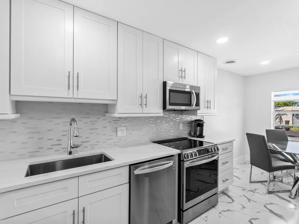 - Dishwasher, Disposal, Dryer, Freezer, Ice Maker, Microwave, Electric Range, Refrigerator, Washer, Electric Water Heater