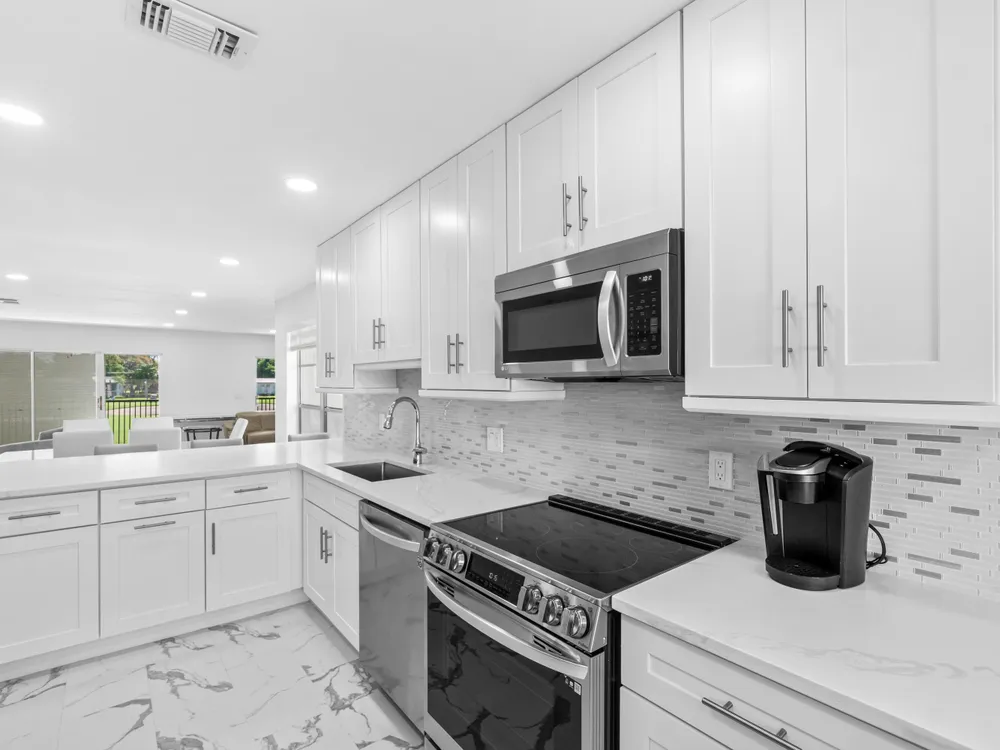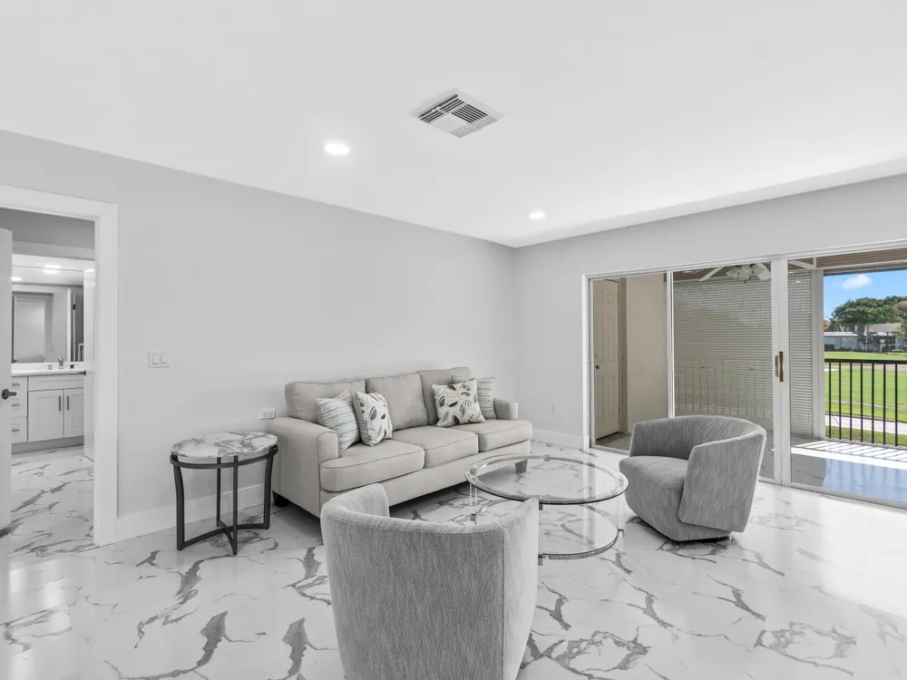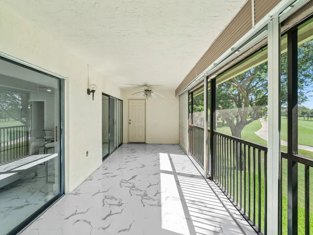 Welcome to effortless luxury with this beautifully upgraded condo offering peaceful golf course views and modern style. Step into a light-filled space with clean lines, sleek porcelain tile, and a crisp white kitchen finished with quartz counters and premium touches. Every inch has been thoughtfully updated from the bathrooms and doors to the A/C and hardware. Step outside to a screened lanai perfect for morning coffee or evening unwinding. Located in Hunters Run, an exclusive membership community packed with top-tier amenities: 3 championship golf courses, tennis, pickleball, multiple dining options, fitness, spa, and more -- all just minutes from the beach and downtown Delray.