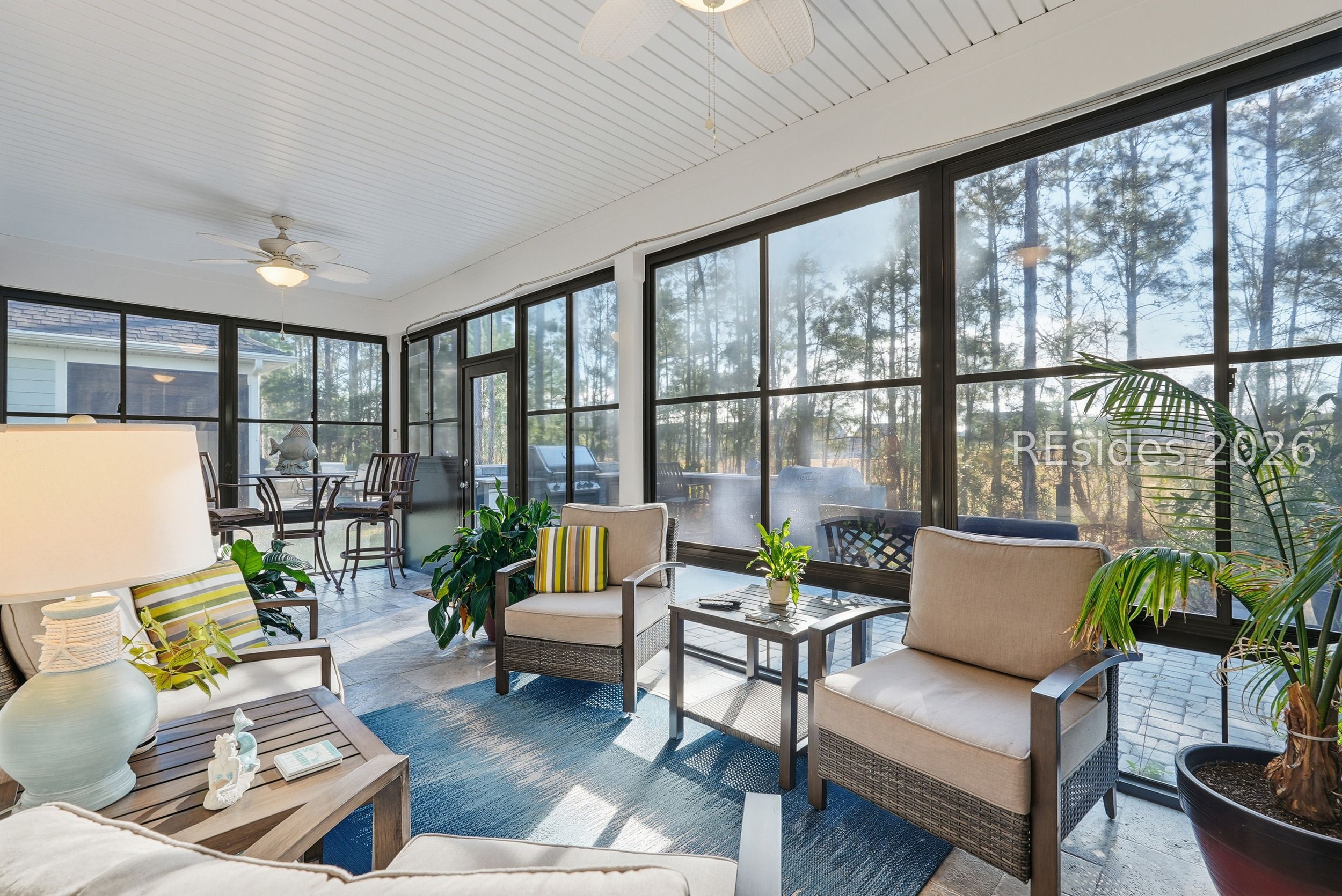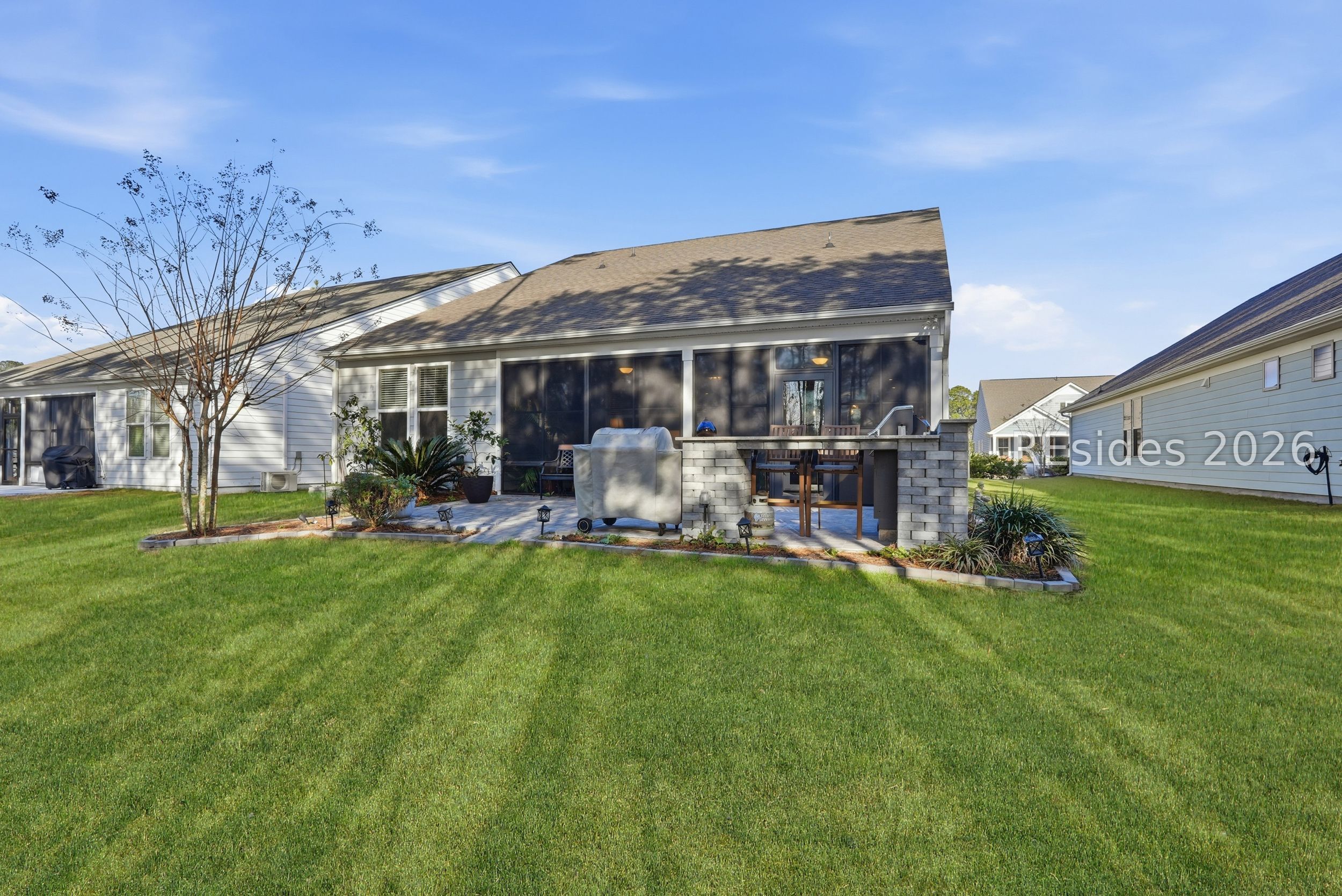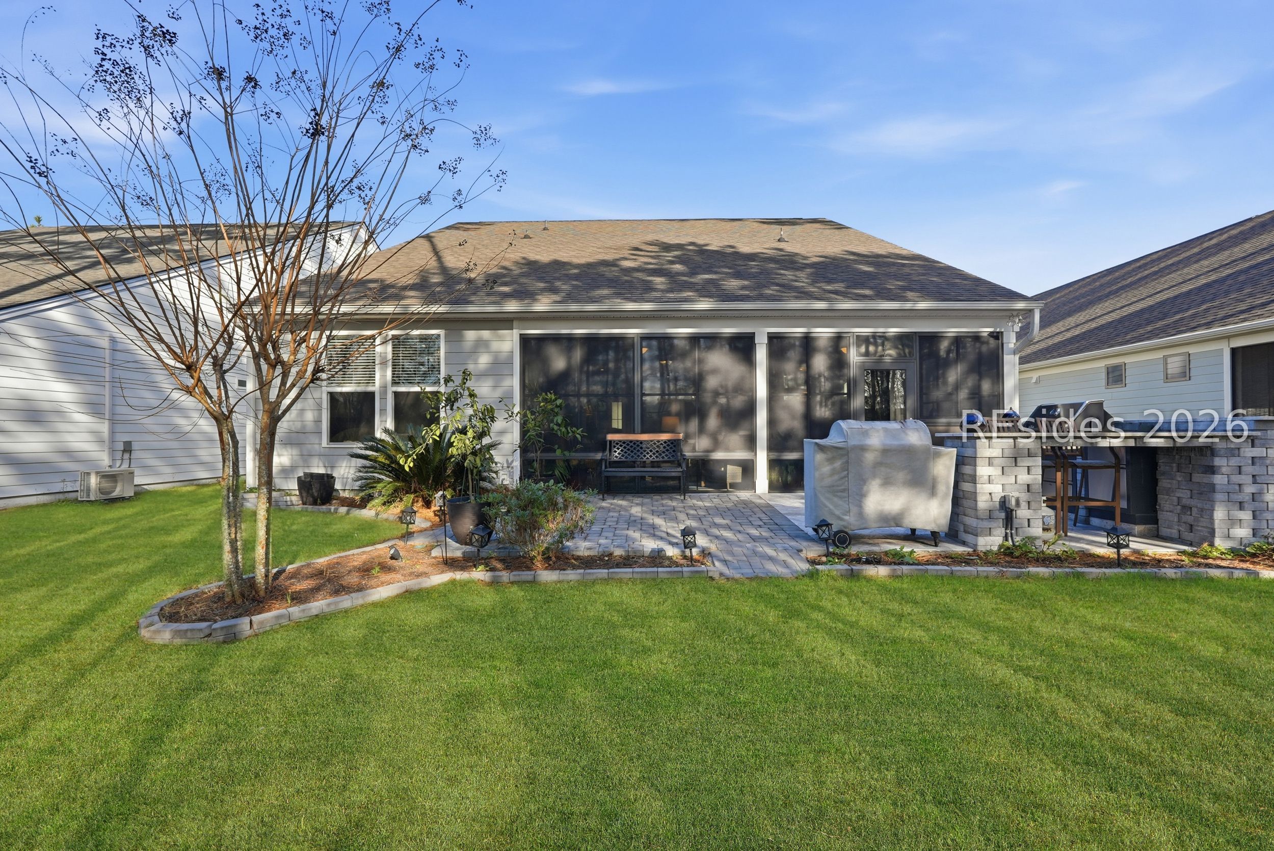 Welcome to the lifestyle you've been waiting for in the highly sought-after Sun City Hilton Head active adult community. This like-new Palmary Model offers effortless Southern living and is truly move-in ready with thoughtful upgrades throughout-perfect for those ready to enjoy life, not a to-do list.From the extended driveway and charming paver front porch, you'll feel right at home the moment you arrive. Inside, the open-concept design creates a welcoming flow between the gourmet kitchen, dining area, and living room-ideal for everyday comfort and easy entertaining. Large windows frame peaceful golf course views, drawing your eye straight to the four-season lanai and outdoor kitchen, where mornings start with coffee and evenings end with views of the 17th hole of Argent Lakes.The home features two bedrooms, two bathrooms, plus a flexible den/office-perfect for hobbies, guests, or a quiet reading space. The spacious primary suite is a true retreat, complete with a spa-like ensuite, oversized walk-in shower, and an impressively large upgraded closet. Elegant tray ceilings in the living room and primary bedroom add a refined touch throughout.Entertaining is a breeze with a built-in bar with refrigerator and ice maker, and outdoor living shines with a backyard designed for relaxing and gathering alike. Best of all, you're just minutes from the Northside Amenity Center, offering indoor and outdoor pools, fitness and gym facilities, tennis, pickleball, and cozy outdoor fire pits.Sun City Hilton Head is more than a neighborhood-it's a lifestyle. With 150+ social clubs and groups, there's always something to do and new friends to meet. And coming soon: a multi-million-dollar, resort-style amenity center featuring one of South Carolina's largest pools.If you're considering new construction, look no further-this home offers the upgrades, location, and lifestyle without the wait. Move right in and start living the retirement you've earned.