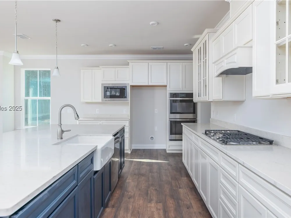 - Double Oven, Dishwasher, Disposal, Microwave, Stove, Tankless Water Heater