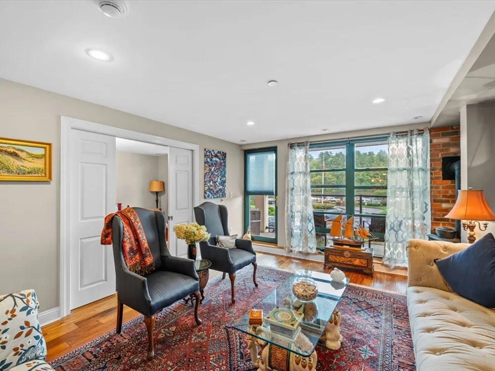 Gorgeous waterfront condo at coveted Hatter’s Point, a premier 55+ community overlooking the Merrimack River and Maudsley State Park. Originally the model unit, this luxury home features granite counters, stainless appliances, gas range, and abundant cabinets in a spacious kitchen that opens to dining and living areas with exposed brick and hardwood floors. The primary suite boasts river views, double closets, and a spa-like bath. A flexible den/office adds versatility, while the covered deck invites you to relax and watch eagles soar above the river. Enjoy one-level living with garage parking, elevator access, and superb community amenities. (Open Houses Saturday 11-1 & Sunday 12-2. Offers, if any, are due on Monday by 5pm)