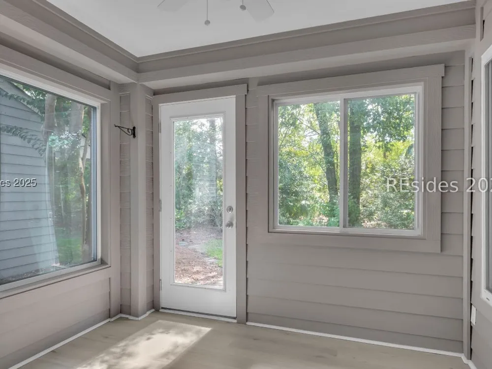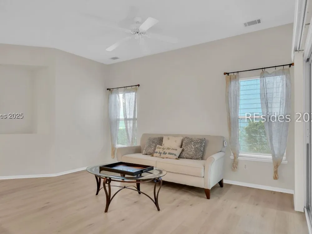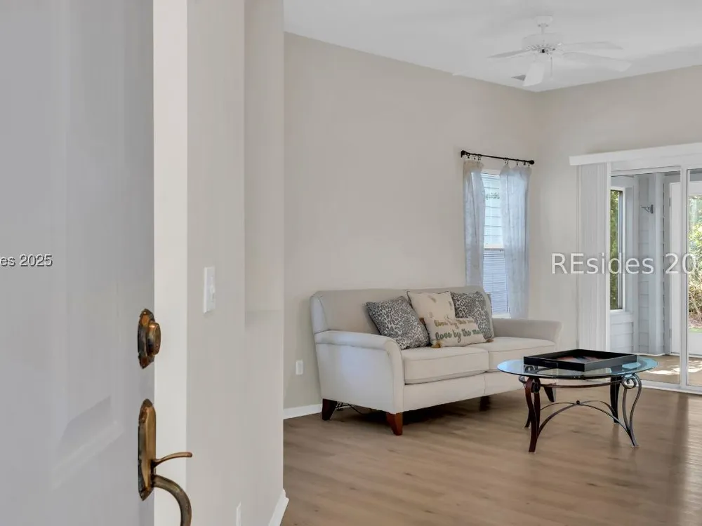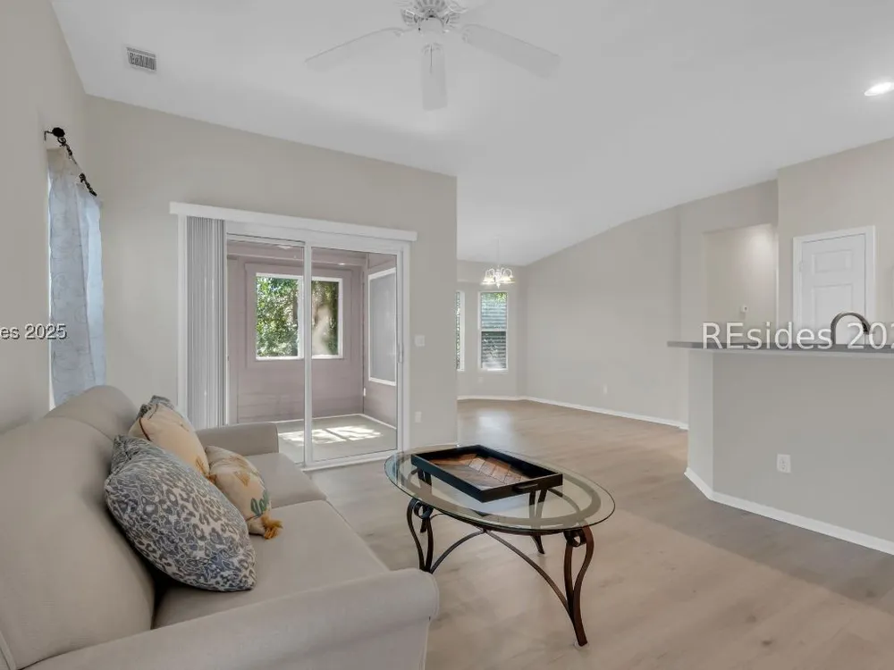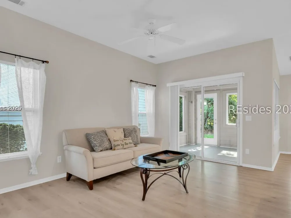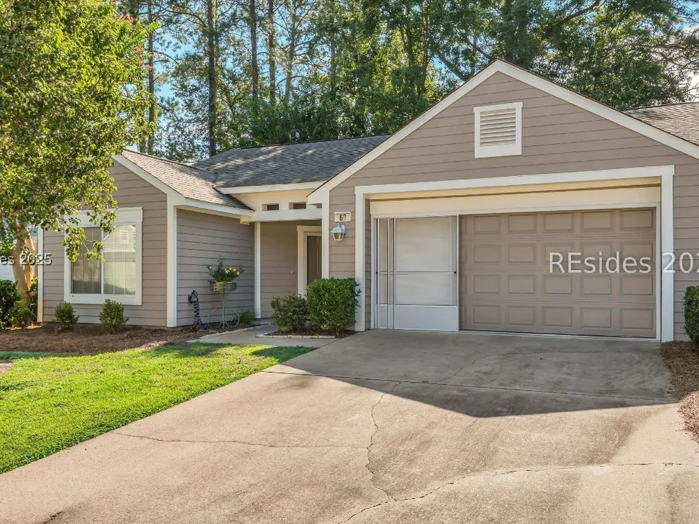 Located in the secluded Coastal Village neighborhood of Sun City Hilton Head, this charming Charleston Villa offers both privacy and convenience. With easy access to three gates and close proximity to Town Squares vibrant activities, its perfectly situated for enjoying everything the community has to offer. The home features two bedrooms, two bathrooms, and a screened two-car garage. Inside, you'll find smooth ceilings, luxury vinyl flooring throughout, and fresh paint that makes it truly move-in ready. The Carolina room provides year-round enjoyment and overlooks a wooded backyard, offering peaceful views and added privacy. The regime fee covers landscaping, irrigation, termite bond, exterior painting, and roof replacement when needed, allowing for a carefree lifestyle. This villa is ready for you to bring your suitcases and settle in to enjoy all the wonderful amenities of Sun City Hilton Head.