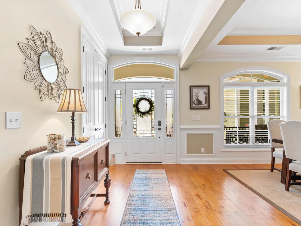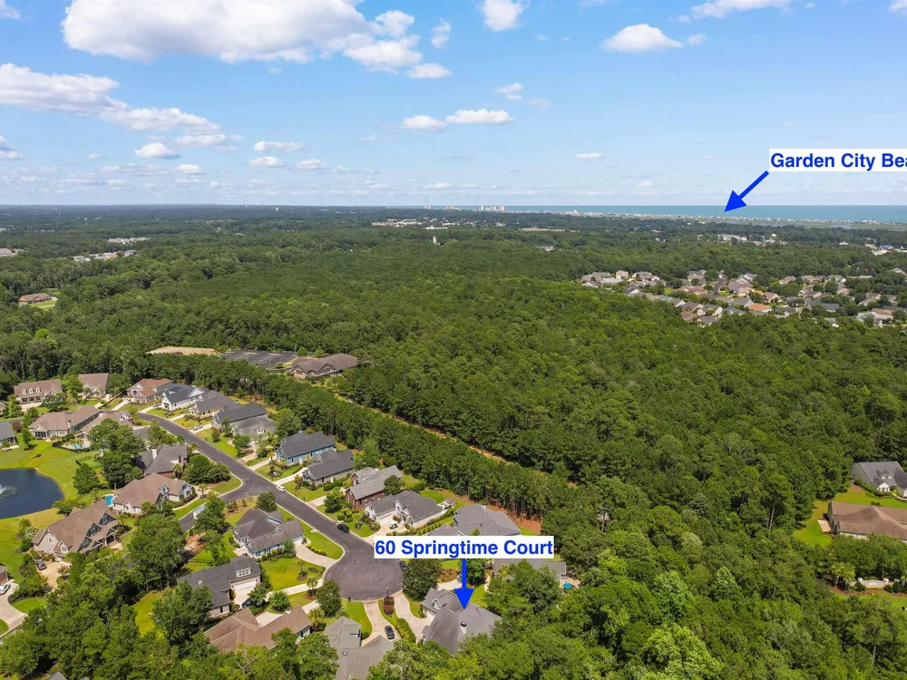 Welcome to 60 Springtime Court – a custom-built, beautifully maintained home tucked away on a quiet cul-de-sac in the prestigious Waverly Bay section of Prince Creek. Backing up to a private wooded buffer, this home offers peace, privacy, and thoughtful design throughout. Inside, you’ll find high-end finishes, natural gas, and an expansive primary suite wing featuring his-and-her closets, a spacious en-suite bath with double vanity and built-in bench, and serene views of the backyard. The gourmet kitchen is equipped with granite countertops, stainless steel appliances, a walk-in pantry, kitchen nook, and a large bar top island – perfect for entertaining. Additional highlights include a formal dining room, Carolina room, and a bonus room over the garage with a dedicated office nook and full bathroom, ideal for guests or a private workspace. Step outside to enjoy a serene backyard oasis complete with a tabby sidewalk, fire pit, rear deck, and a full yard lighting system for added ambiance. The community amenities are unmatched – enjoy access to two pools (including an Olympic-sized lap pool), clubhouse with fitness center, pickleball, tennis, and basketball courts, playground, picnic/fire pit area, volleyball court, and open green space for pets and play. Located in the top-rated St. James School District and just minutes from grocery stores, fitness centers, golf courses, healthcare, restaurants, and more. Only 10 minutes to the beach, 15 minutes to Myrtle Beach International Airport, and a short drive to Pawleys Island and Charleston. A must-see home in one of Murrells Inlet’s most sought-after communities!