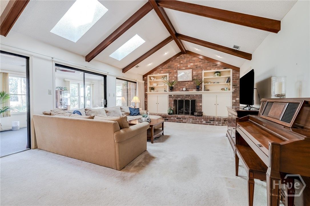 Discover the incredible potential in this spacious home perfectly positioned with stunning golf course views. Offering an abundance of space throughout, this property is a true remodeling dream ready for your personal touch. The home features generously sized bedrooms, two exceptionally large bathrooms, and a massive sunroom filled with natural light—perfect for relaxing or entertaining while enjoying the peaceful scenery. The living area is highlighted by a beautiful oversized fireplace with custom built-ins, creating a warm and inviting focal point. With extensive storage throughout and room to reimagine every space, this home offers a rare opportunity to create your ideal retreat in a prime setting.