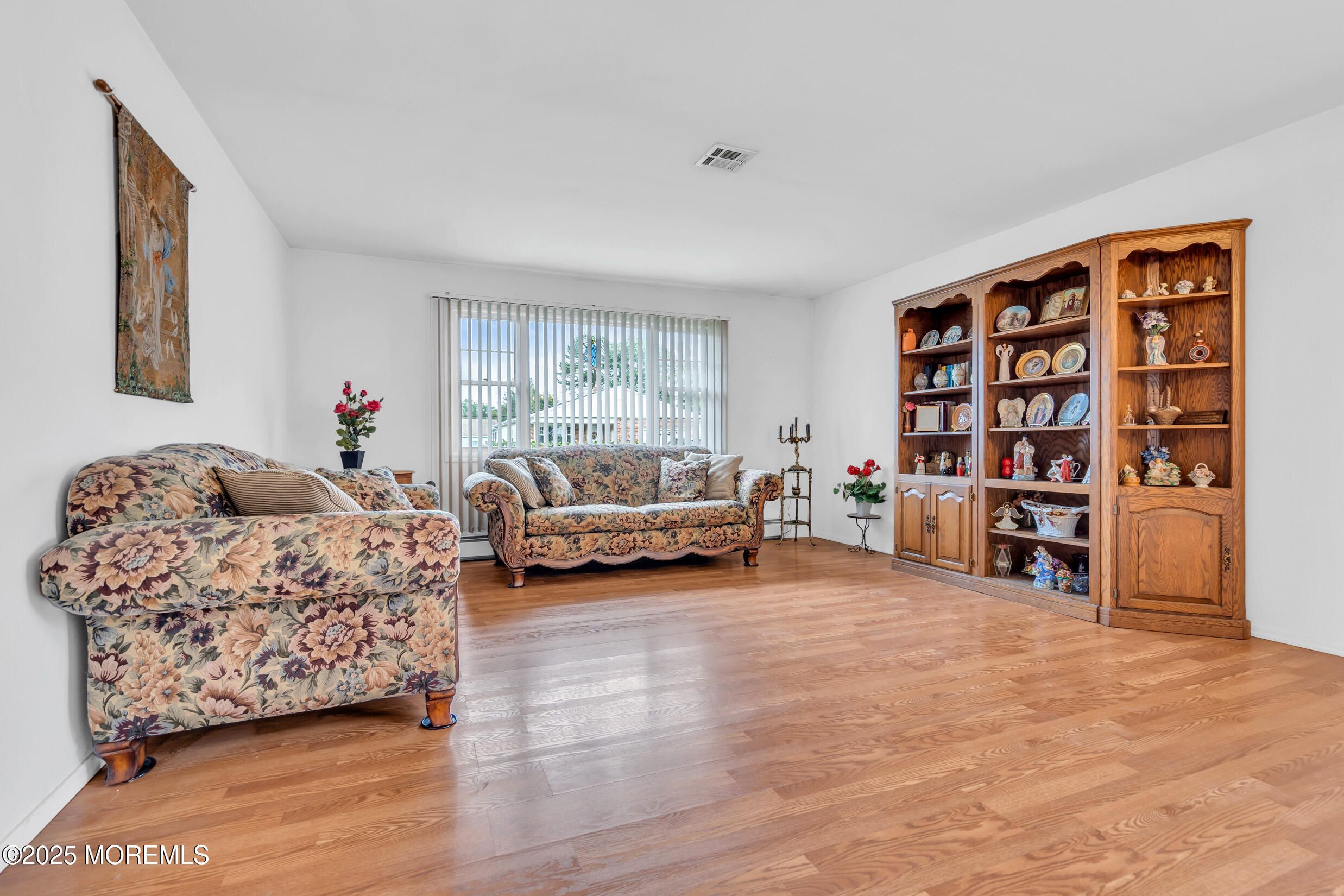 Step into this warm and welcoming 2-bedroom, 2-bath home, perfectly situated in the desirable Holiday Heights Adult Community. The open living and dining layout creates an ideal space for gatherings, while the separate family room offers a cozy fireplace and sliding doors that open to a serene backyard deck—perfect for unwinding or enjoying your morning coffee. The kitchen features a convenient breakfast bar, pantry, and all included appliances to make cooking simple and enjoyable. A spacious laundry room adds to the home's functionality, and abundant closets provide excellent storage throughout. The primary bedroom offers plenty of comfort with its ensuite bath and expansive walk-in closet. The second bedroom is generously sized as well, complete with two closets for extra stor out, central air, hot water baseboard heat, a one-car garage, and a covered front patio. Enjoy resort-style living in this active community offering a clubhouse, pool, and a wide variety of clubs and activities. Don't miss this one!