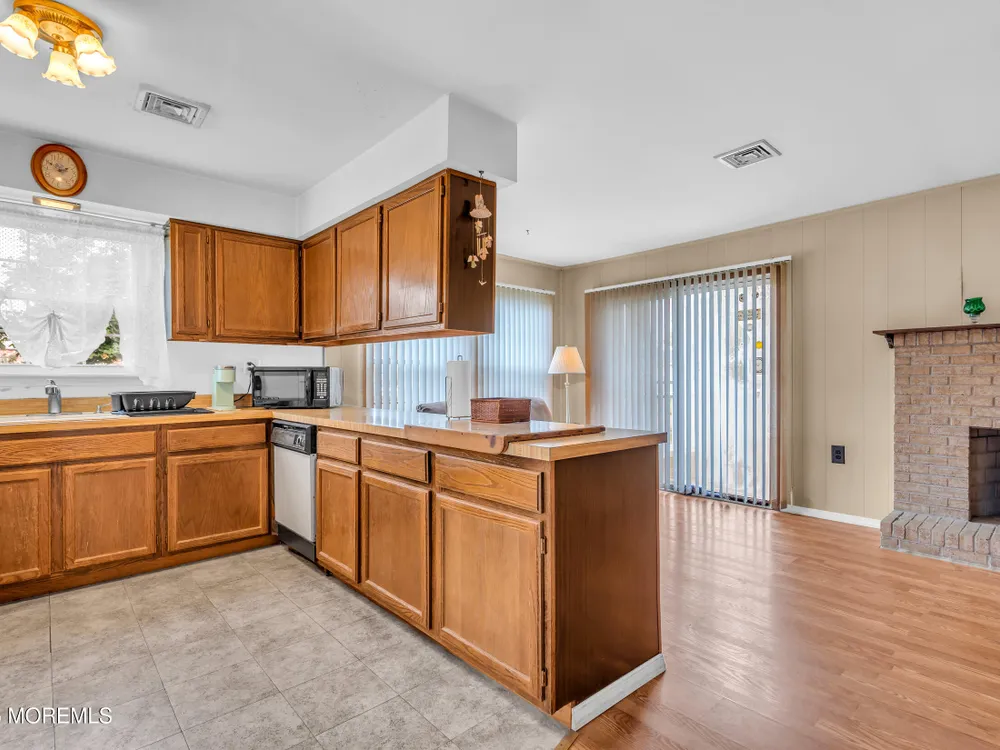 Welcome to this inviting 2-bedroom, 2-bath home offering comfort, space, and convenience in the highly sought-after Adult Community of Holiday Heights. The open-concept living and dining area is perfect for entertaining, while the separate family room features a cozy fireplace and sliding doors leading to the backyard deck—ideal for relaxing or enjoying morning coffee. The kitchen includes a breakfast bar, pantry, and all appliances, making meal prep a breeze. A large laundry room adds extra functionality, and there's plenty of storage throughout with abundant closets. The spacious primary bedroom boasts an ensuite bath and an oversized walk-in closet, while the generous second bedroom features two closets for added convenience. Additional highlights include laminate flooring through out, central air, hot water baseboard heat, a one-car garage, and a covered front patio. Enjoy resort-style living in this active community offering a clubhouse, pool, and a wide variety of clubs and activities. Don't miss this one!