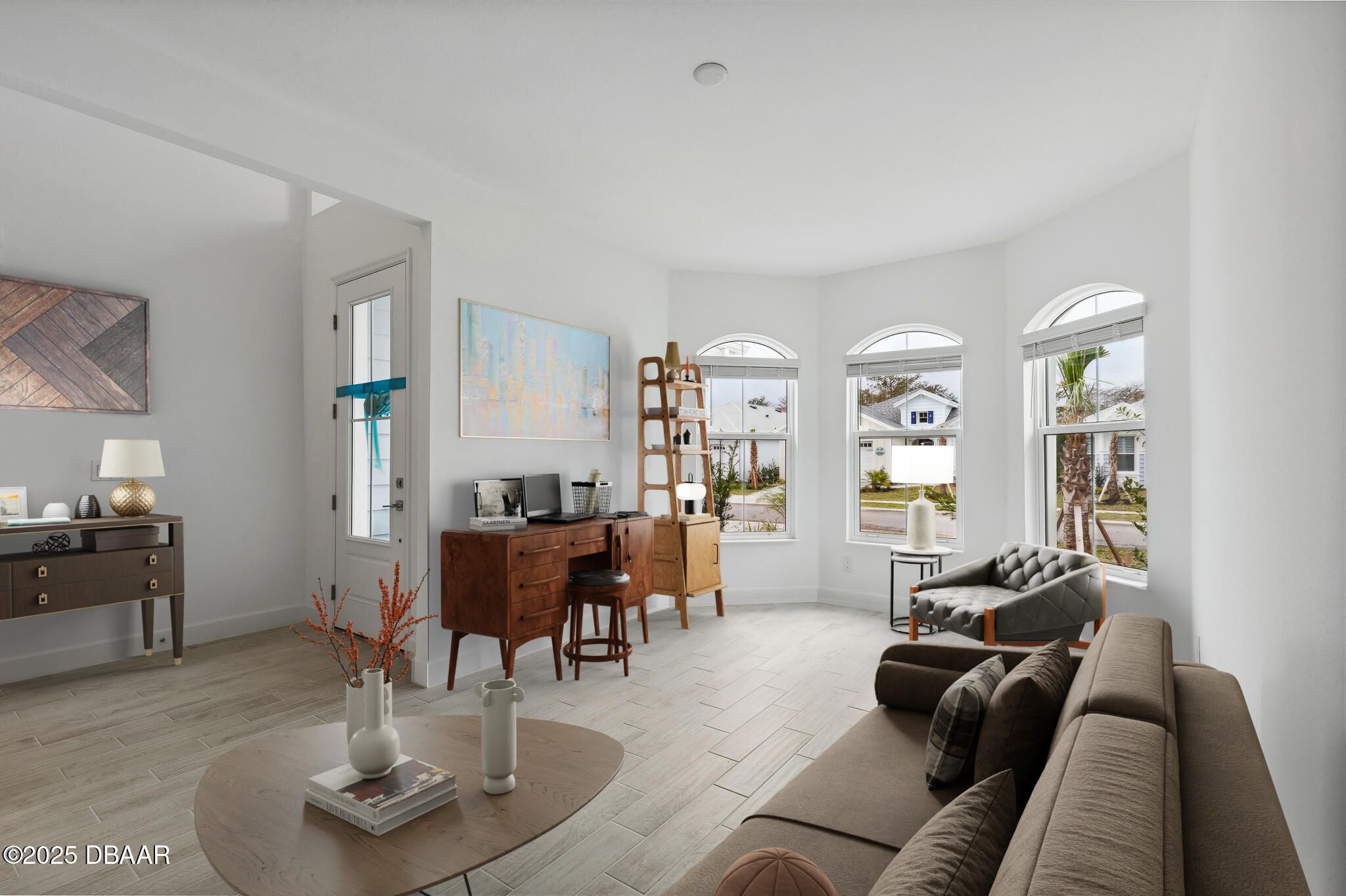 BRAND NEW, NEVER LIVED IN Breeze Bay! Come create your dream home in Paradise! 2 bedroom, 2.5 bath plus Den/Office. This wildly popular model has that coastal vibe plank tile flooring in all rooms, 5 1/4 baseboards, 8ft interior doors, window treatments & glass front door. A cooks delight kitchen features tons of clean white cabinetry, S/S appliances, a large quartz island that seats several guests & timeless subway tile backsplash. Enjoy open concept living in the spacious great room with a tray ceiling & recessed LED lighting that opens with an expansive slider to a screened lanai with plenty of room to expand. The primary bedroom overlooks a preserve and also features a tray ceiling, ensuite spa like bathroom plus two walk-in closets. The possibilities are endless with designing your new home. The amazing amenities are the icing on this dream with pickleball, tennis, paradise pool, sports pool, fitness classes and a private beach club with transportation!