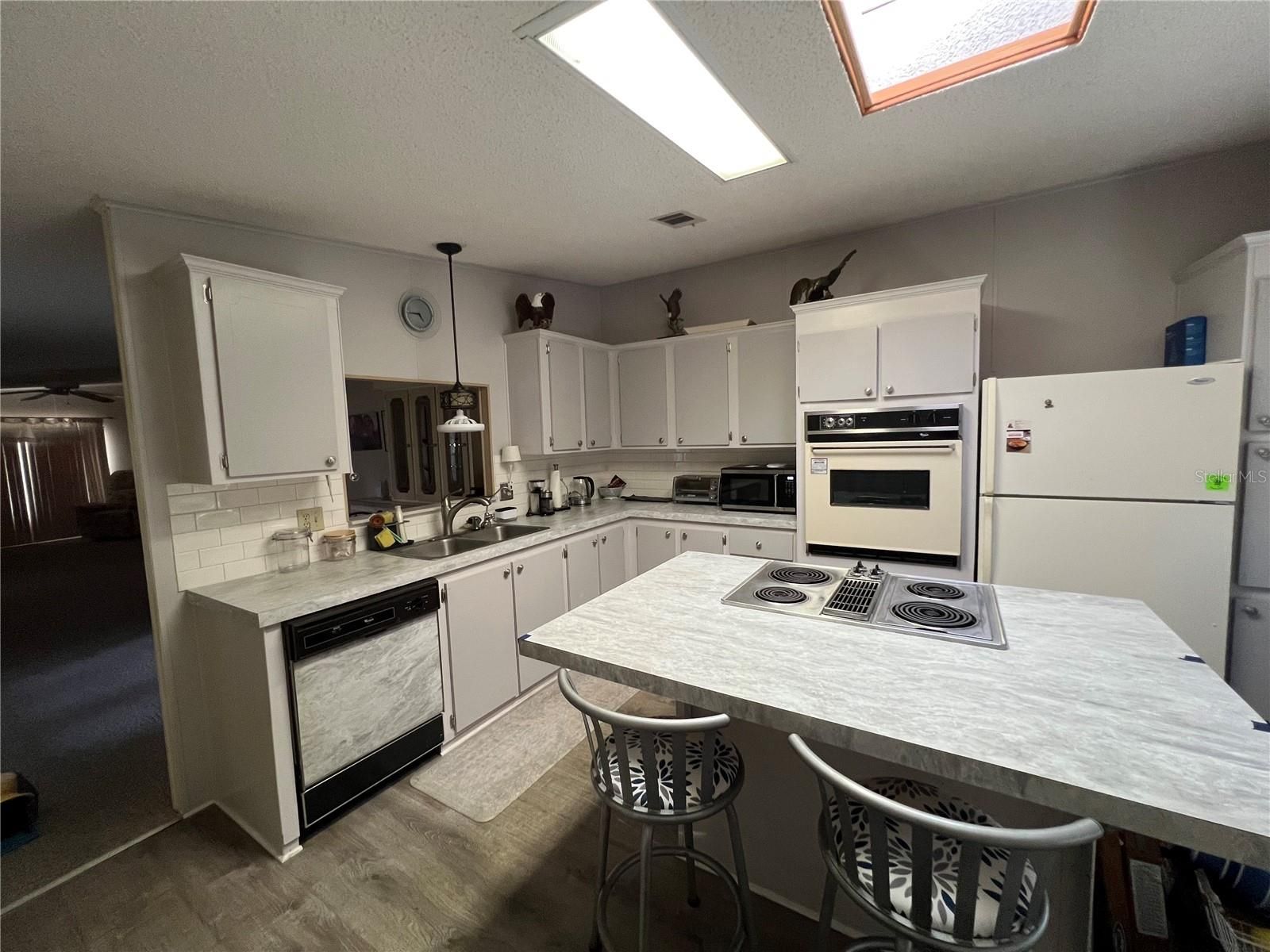 **Charming 2-Bedroom Home in a Gated Golf Community Near The Villages** Nestled in a serene, gated golf community just 2 minutes from The Villages, this delightful 2-bedroom, 2-bathroom home offers a perfect blend of comfort and convenience. The split floor plan ensures privacy, while skylights flood the space with natural light. The spacious kitchen boasts an island, abundant cabinetry, and a bar area, seamlessly connecting to the dining room and expansive living room—ideal for entertaining guests. A Florida room off the kitchen provides additional space to relax and enjoy the surroundings. Practical features include an inside laundry area, golf cart storage, and a shed for extra storage needs. The double carport and driveway gives you ample parking, and the newly landscaped yard enhances curb appeal. With no neighbors behind, enjoy added privacy and tranquility. As a resident owner, you'll benefit from lower HOA fees and gain a voter’s card, granting you rights to vote within this vibrant, active community. Come see for yourself—this home is ready to welcome you!