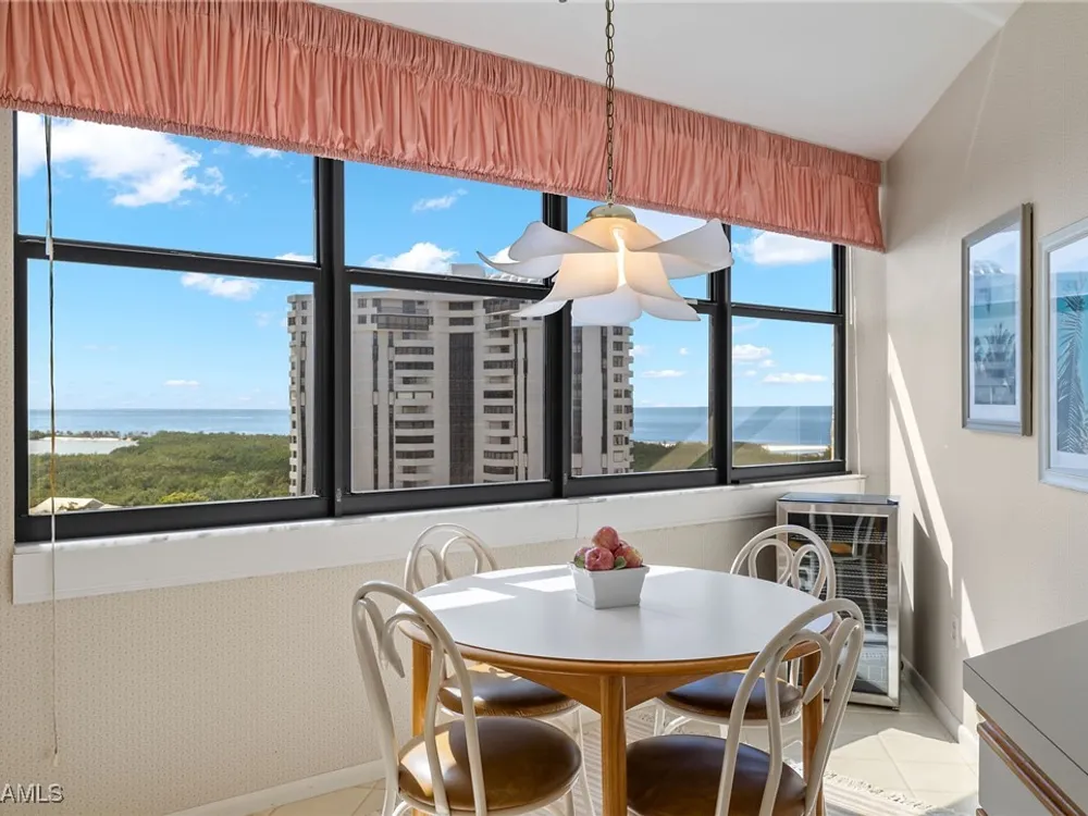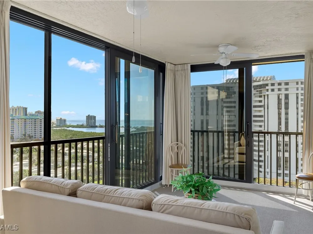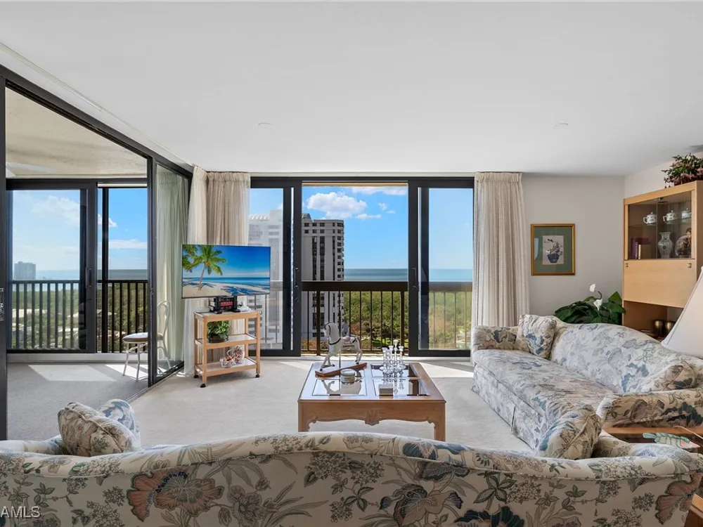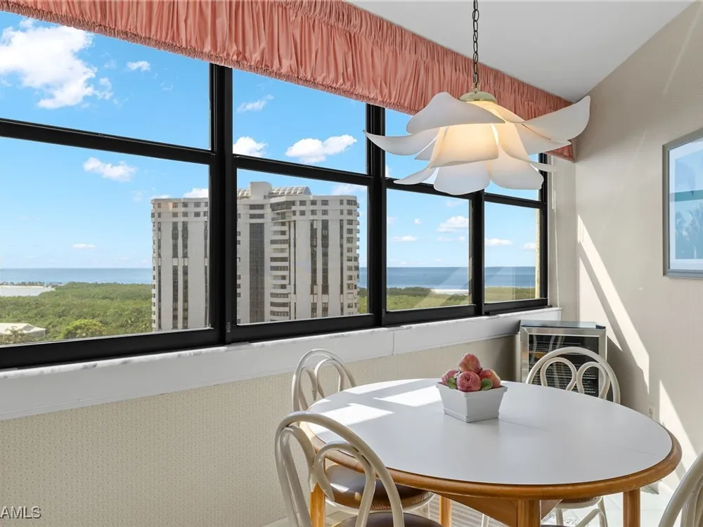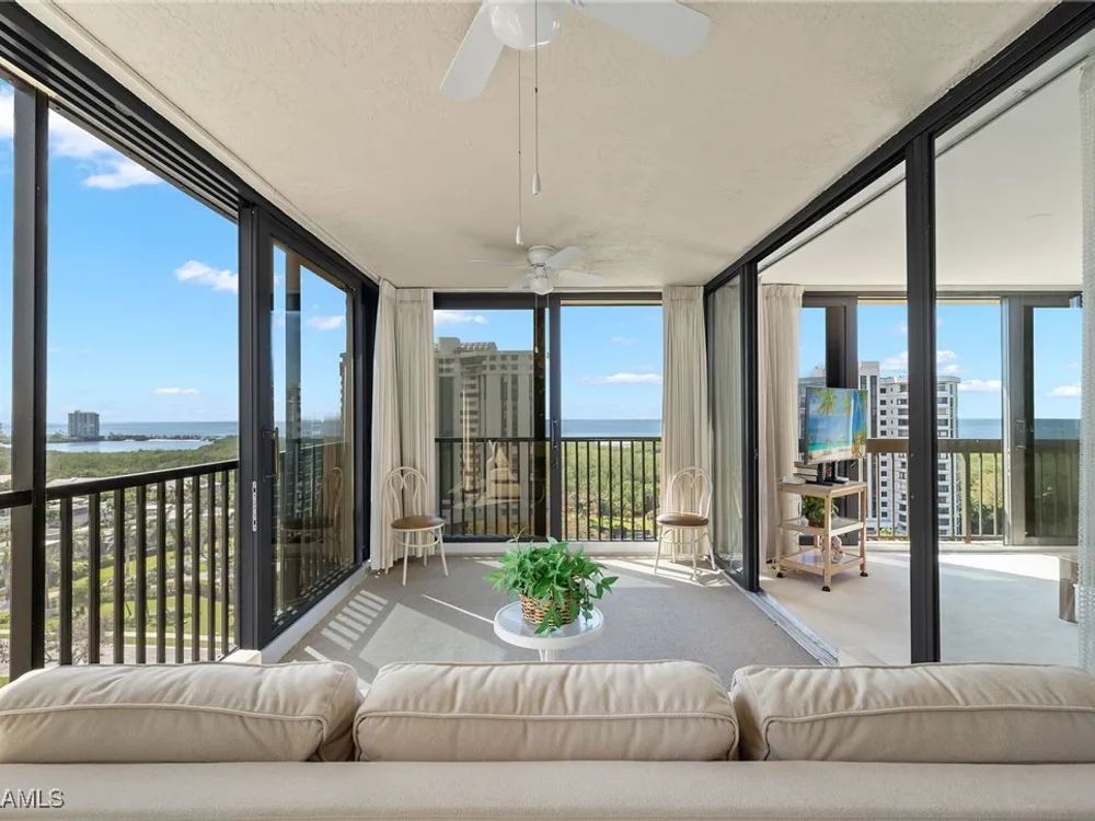 Welcome to this desirable 12th-floor condo in the highly sought-after Chateaumere community of Pelican Bay, where breathtaking panoramic southwest views of Clam Pass, the Gulf of Mexico, and mesmerizing sunsets with twinkling lights of downtown Naples await you. This stunning 2-bedroom, 2-bathroom fully furnished unit with a spacious enclosed lanai is truly a paradise in the sky. The open-concept floor plan ensures a seamless flow from room to room, enhancing comfort and convenience. The living area is bathed in natural light, thanks to large impact-resistant windows and sliding glass doors that frame extraordinary views. The eat-in kitchen boasts full views of the white sand beaches, making every meal a scenic delight. The spacious Master Suite is a tranquil oasis, featuring an en-suite bathroom with a double vanity and a walk-in shower. The guest bedroom and hall bath provide additional comfort for visitors. Residents of Chateaumere Royale enjoy access to 3 swimming pools, a fitness center, 3 guest suites, bike storage rooms, and a community room with a full kitchen and pool table, along with all the amenities of Pelican Bay. Pelican Bay offers tram service to 2 private beach clubs equipped with chairs umbrellas and kayaks, as well as 2 private restaurants open for lunch and dinner. The club features 18 tennis courts, another fitness center, and even yoga on the beach. Chateaumere is set on nearly 10 acres and is conveniently located less than 2 miles from Artis Fine Arts Theatre and Waterside Shops with fine dining and shopping. Centrally located near Mercato, Whole Foods, Fresh Market, and much more! Easy access to downtown Naples, renowned for its fine dining, shopping, and beautiful beaches.This condo comes with a rental with income.