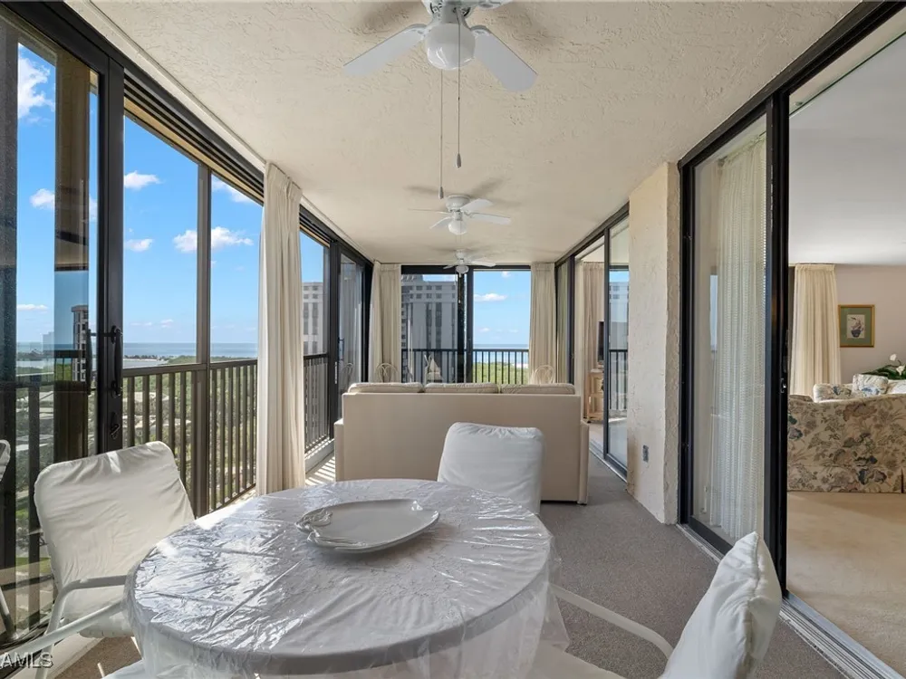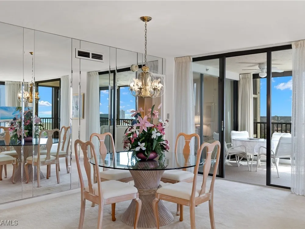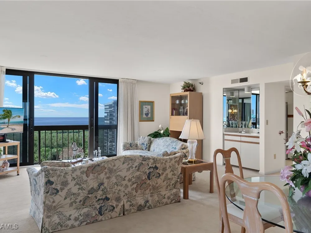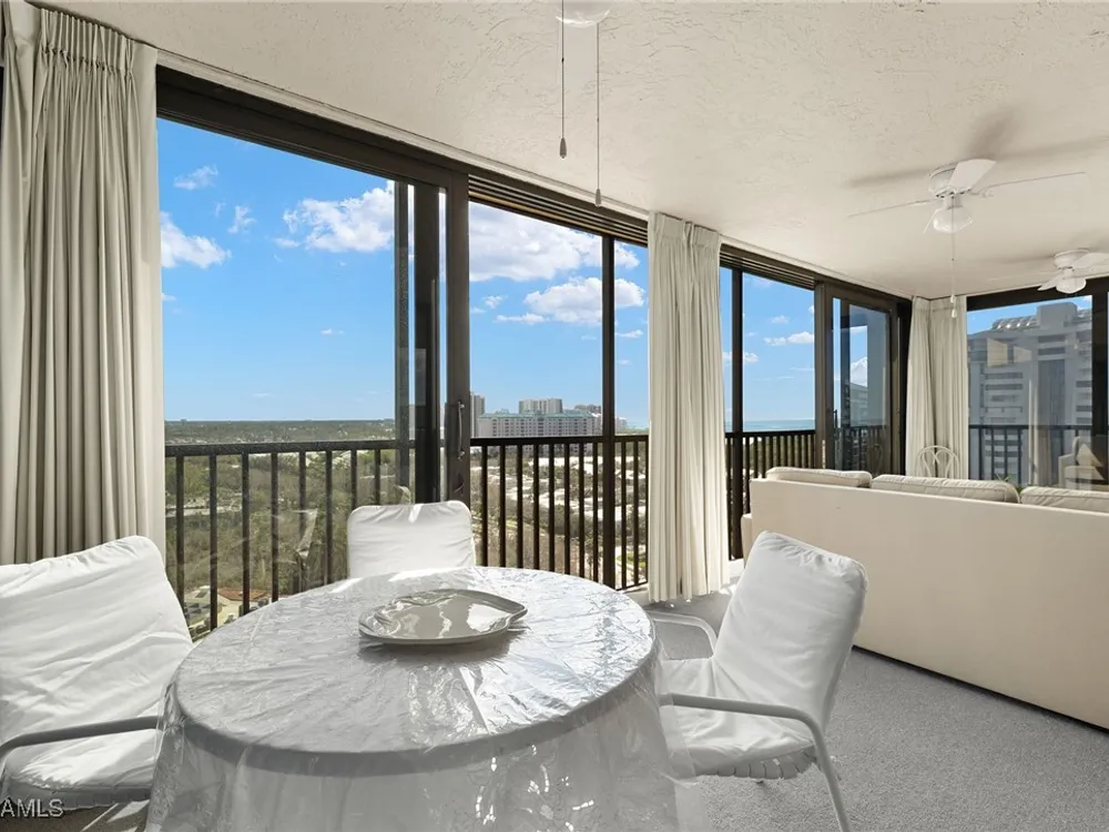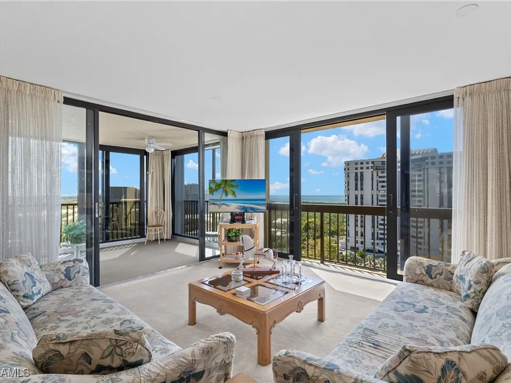 Welcome to this desirable 12th-floor condo in the highly sought-after Chateaumere community of Pelican Bay, where breathtaking panoramic southwest views of Clam Pass, the Gulf of Mexico, and mesmerizing sunsets with twinkling lights of downtown Naples await you. This stunning 2-bedroom, 2-bathroom fully furnished unit with a spacious enclosed lanai is truly a paradise in the sky. The open-concept floor plan ensures a seamless flow from room to room, enhancing comfort and convenience. The living area is bathed in natural light, thanks to large impact-resistant windows and sliding glass doors that frame extraordinary views. The eat-in kitchen boasts full views of the white sand beaches, making every meal a scenic delight. The spacious Master Suite is a tranquil oasis, featuring an en-suite bathroom with a double vanity and a walk-in shower. The guest bedroom and hall bath provide additional comfort for visitors. Residents of Chateaumere Royale enjoy access to 3 swimming pools, a fitness center, 3 guest suites, bike storage rooms, and a community room with a full kitchen and pool table, along with all the amenities of Pelican Bay. Pelican Bay offers tram service to 2 private beach clubs equipped with chairs umbrellas and kayaks, as well as 2 private restaurants open for lunch and dinner. The club features 18 tennis courts, another fitness center, and even yoga on the beach. Chateaumere is set on nearly 10 acres and is conveniently located less than 2 miles from Artis Fine Arts Theatre and Waterside Shops with fine dining and shopping. Centrally located near Mercato, Whole Foods, Fresh Market, and much more! Easy access to downtown Naples, renowned for its fine dining, shopping, and beautiful beaches.This condo comes with a rental with income.