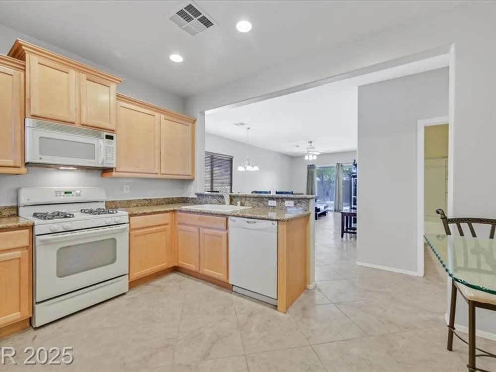 Directly Across from Clubhouse at 55+ Solera at Stallion Mountain 3 bedroom "Shire" model. Courtyard entry to Open Floor plan, large Tile flooring throughout (no carpet), upgraded granite countertops, dual sinks in primary bath, large walk-in closet. Barely occupied by original owner and well-maintained. Walk across the street to the clubhouse. Solera at Stallion Mountain community, offering resort-style amenities such as a pool, spa, clubhouse, fitness center, pickleball & tennis courts with a full calendar of social activities.