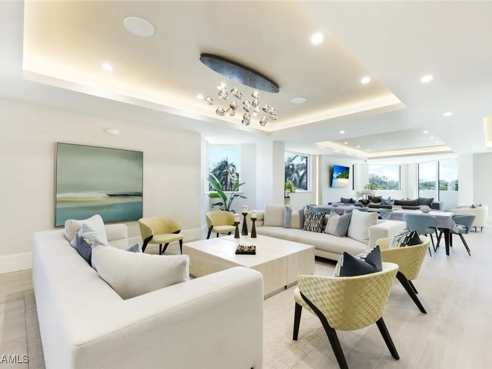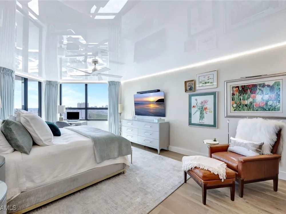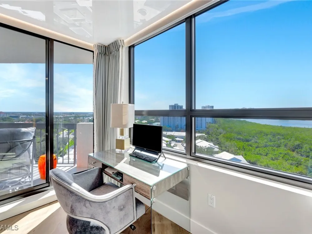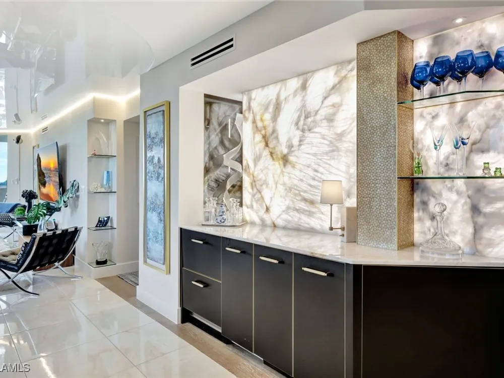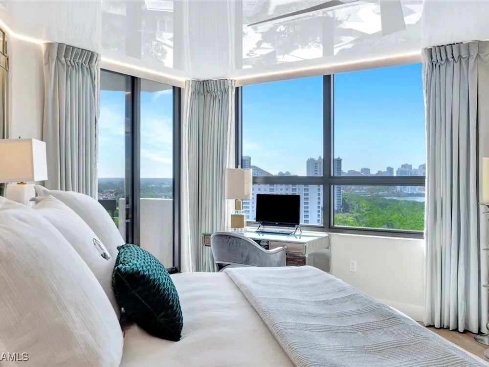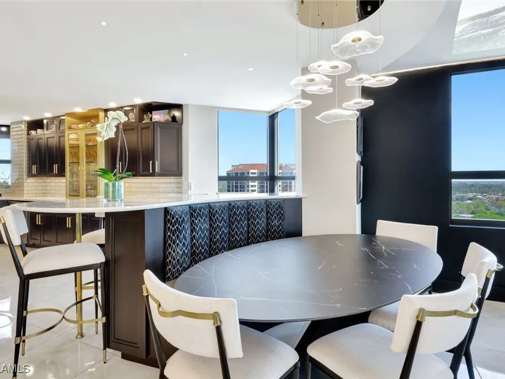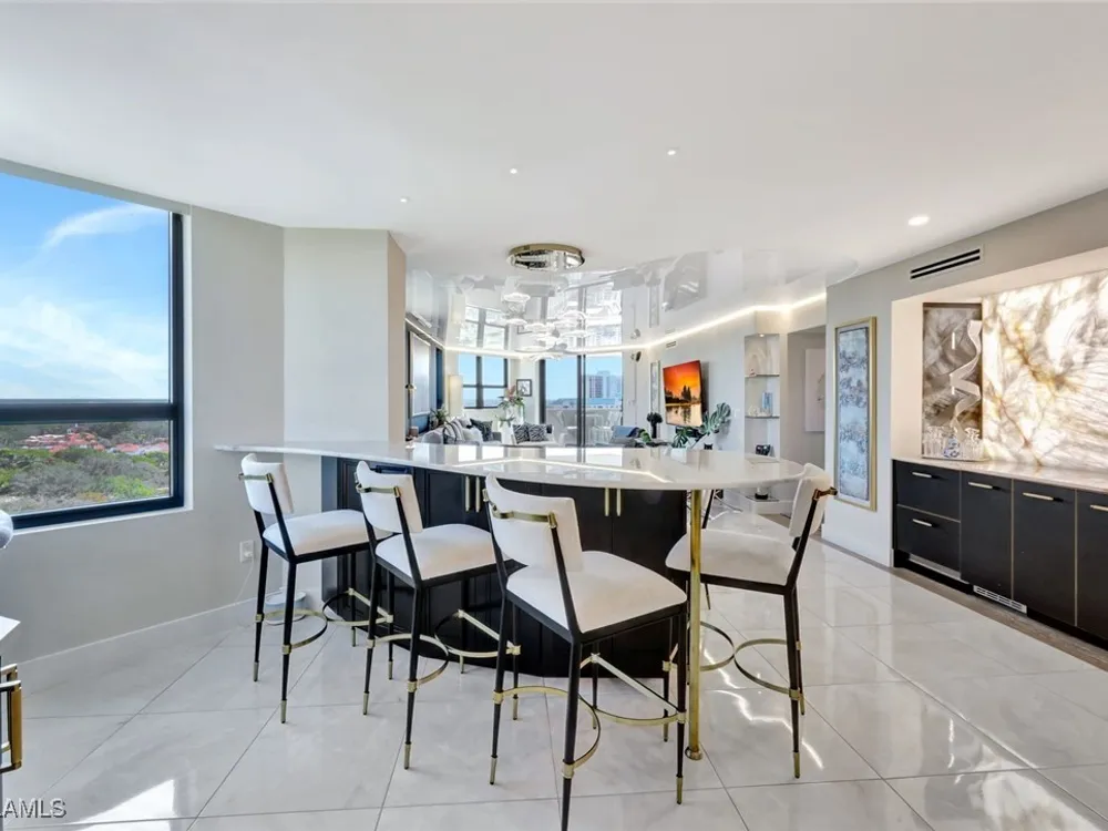Step into a residence where EVERY detail has been meticulously crafted to offer the finest in modern luxury! Move right into this AMAZING home- perched high above the cityscape---this STUNNING condominium showcases sweeping panoramic views of the Gulf and Clam Bay! Watch the Sunrise and the Sunset- all from the comfort of your private sanctuary! METICULOUS attention to detail - this condo has been completely reimagined with top of the line finishes. Half Million dollar renovation Evident from the moment you enter starting with NEW IMPACT Doors and Windows .... Every surface was touched and transformed. Upgrades include spa - inspired designer fixtures, tile, and cabinetry in the Primary dressing area and all bathrooms. State of the art chefs kitchen with premium appliances and custom bar area. New countertops, new paint throughout, new AC system, new lighting, new wood flooring... EXPANSIVE windows and velum ceilings in the Livingroom and Primary bedroom...the list goes on and on! The Grosvenor is an exclusive, full service building that has been beautifully remodeled. It is situated conveniently on the Tram route- giving you Easy access to the Unparalleled Pelican Bay amenities, which include 3 miles of beach, two beach clubs with TWO Restaurants and bars, two tennis clubs, state of the art fitness center, canoeing, sailing, and miles of walking, jogging, bike paths. Schedule your private tour today and discover what it means to live above it all.