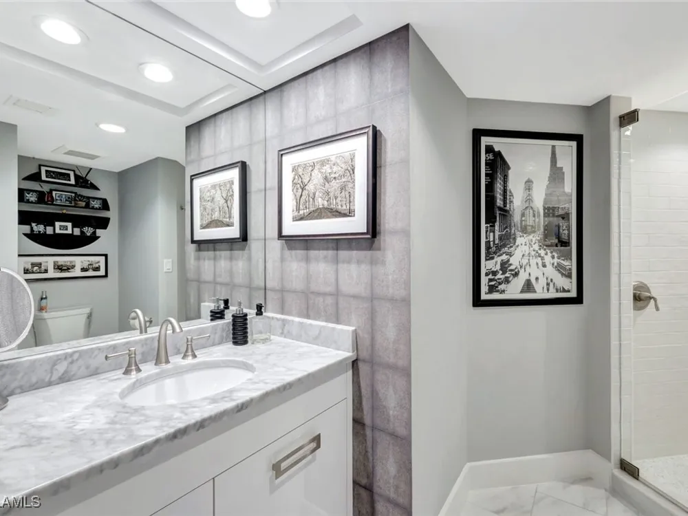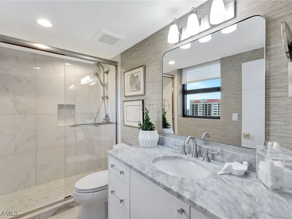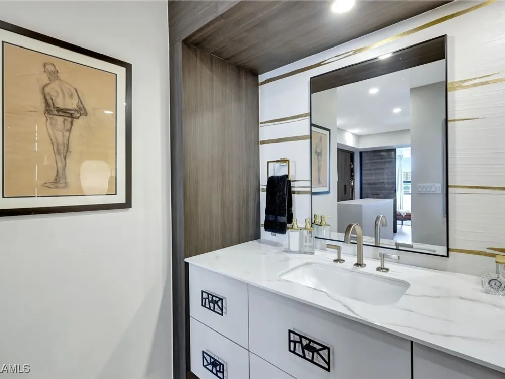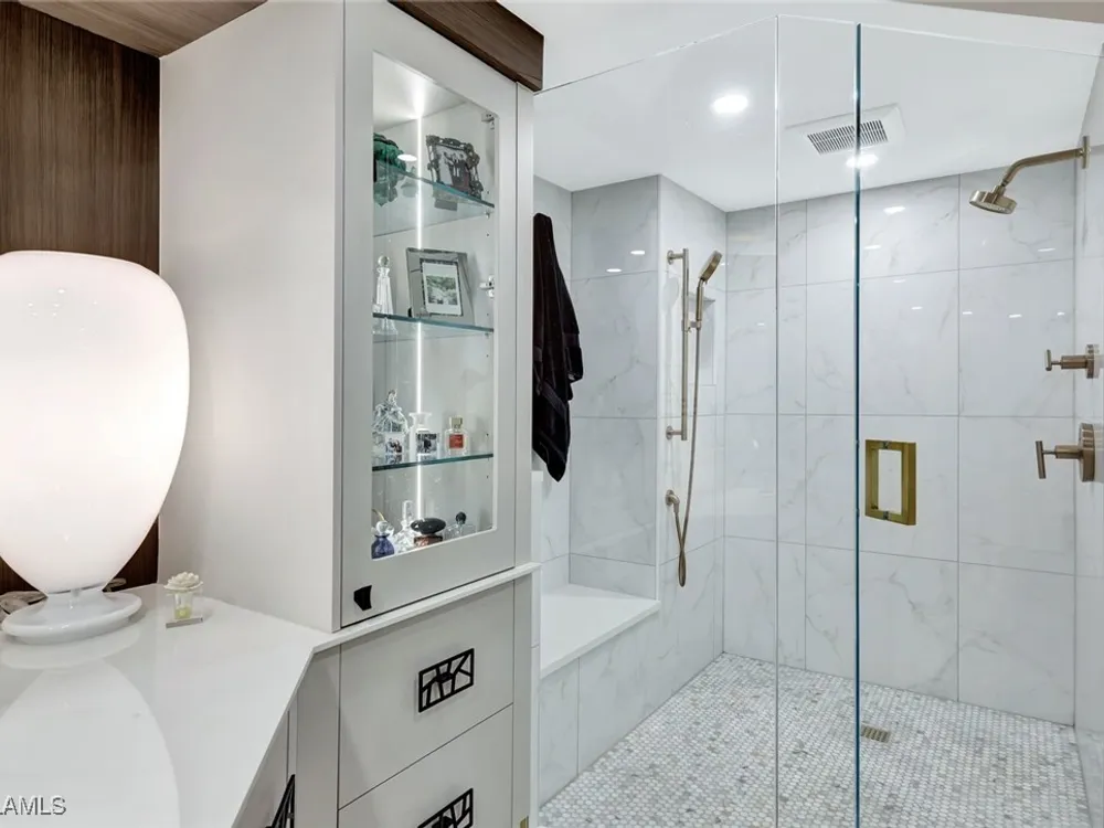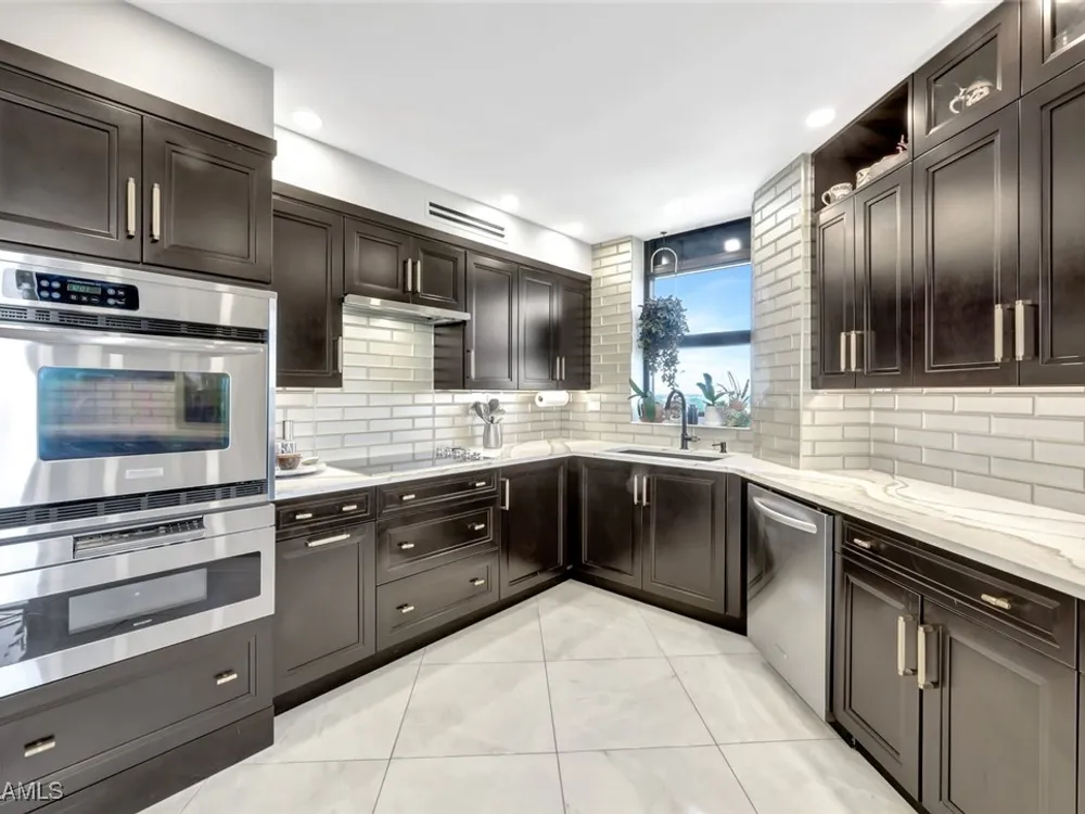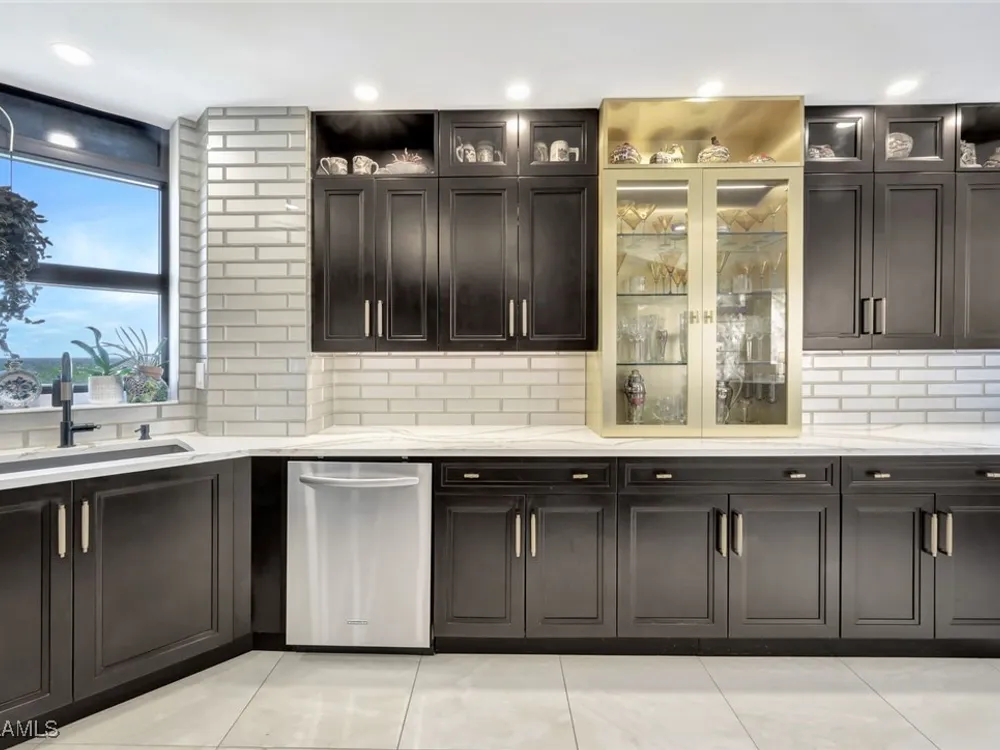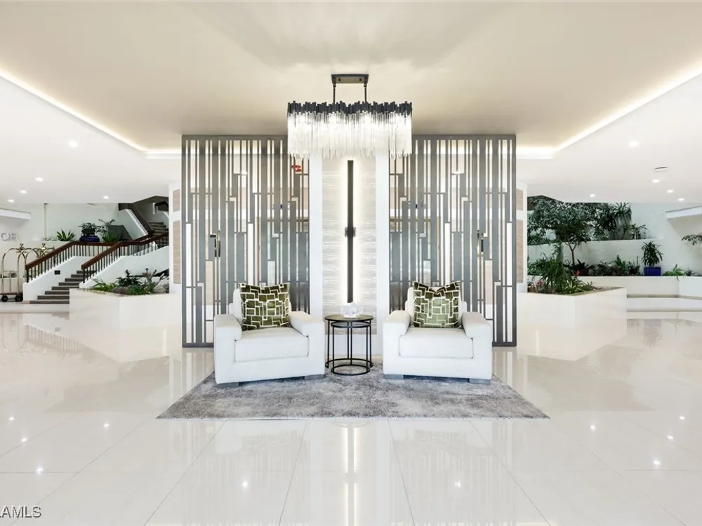 Step into a residence where EVERY detail has been meticulously crafted to offer the finest in modern luxury! Move right into this AMAZING home- perched high above the cityscape---this STUNNING condominium showcases sweeping panoramic views of the Gulf and Clam Bay! Watch the Sunrise and the Sunset- all from the comfort of your private sanctuary! METICULOUS attention to detail - this condo has been completely reimagined with top of the line finishes. Half Million dollar renovation Evident from the moment you enter starting with NEW IMPACT Doors and Windows .... Every surface was touched and transformed. Upgrades include spa - inspired designer fixtures, tile, and cabinetry in the Primary dressing area and all bathrooms. State of the art chefs kitchen with premium appliances and custom bar area. New countertops, new paint throughout, new AC system, new lighting, new wood flooring... EXPANSIVE windows and velum ceilings in the Livingroom and Primary bedroom...the list goes on and on! The Grosvenor is an exclusive, full service building that has been beautifully remodeled. It is situated conveniently on the Tram route- giving you Easy access to the Unparalleled Pelican Bay amenities, which include 3 miles of beach, two beach clubs with TWO Restaurants and bars, two tennis clubs, state of the art fitness center, canoeing, sailing, and miles of walking, jogging, bike paths. Schedule your private tour today and discover what it means to live above it all.