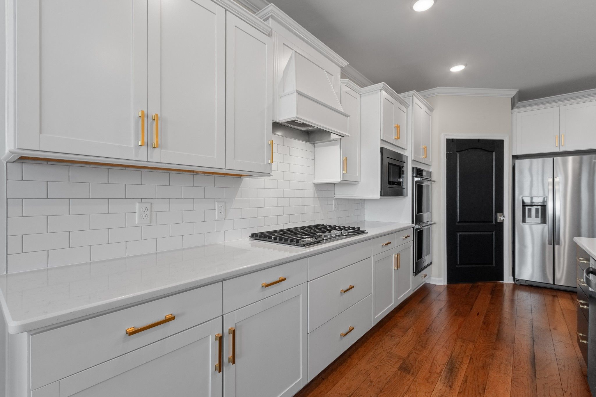 - Built-In Electric Oven, Double Oven, Cooktop, Gas Range, Dishwasher, Disposal, Microwave, Refrigerator, Stainless Steel Appliance(s)