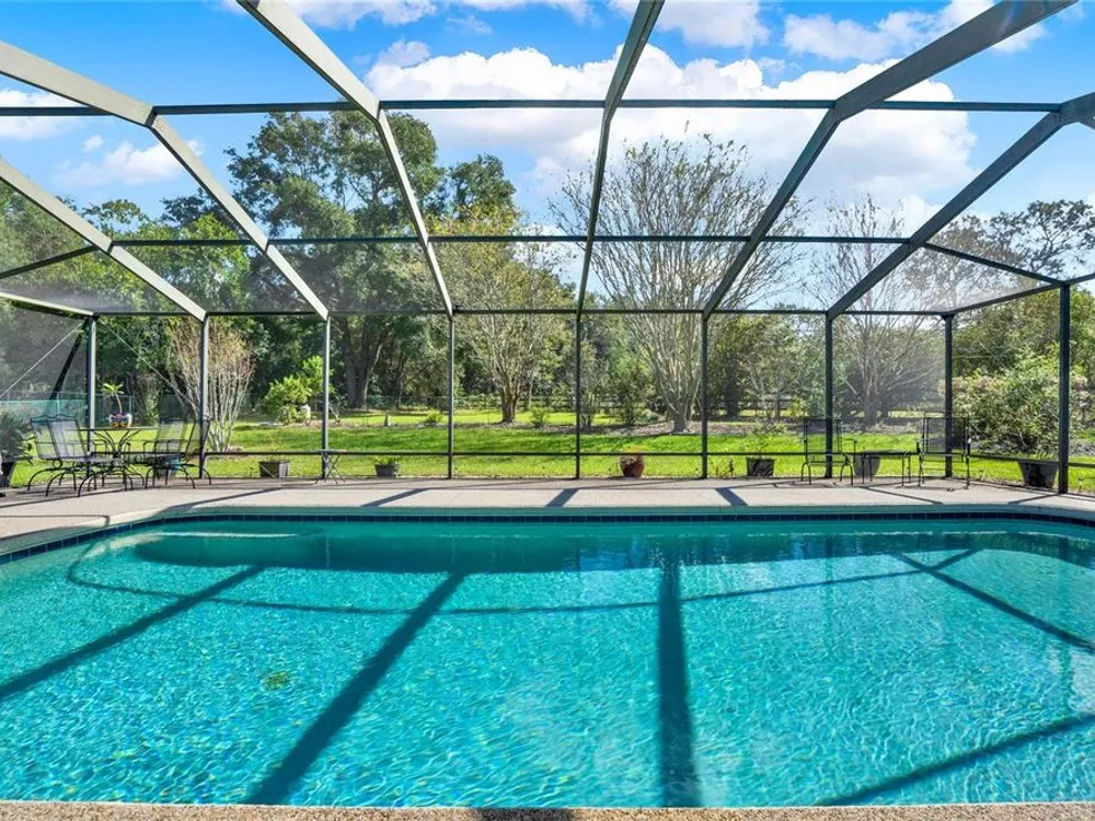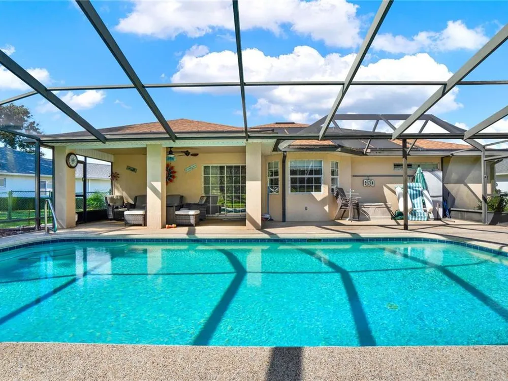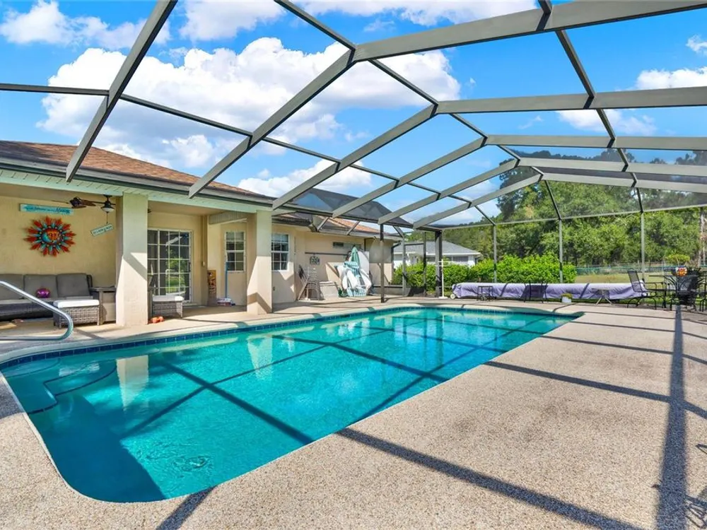 OCALA ** BUYERS FINANCING FELL THROUGH** NOW IS YOUR CHANCE TO OWN THIS HOME! | OVERSIZED LOT | POOL | PROPERTY CURRENTLY HAS A 5 YEAR HOME WARRENTY THAT IS FULLY TRANSFERRABLE | SCREEN ENCLOSURE | FRESH EXTERIOR PAINT | FENCED | NEW PLANTATION SHUTTERS. Welcome to the desirable 55+ community of Cherrywood Estates, where this stunning 3-bedroom, 2-bathroom home awaits on an oversized, high-and-dry 0.55-acre lot—the largest in the neighborhood. This property offers easy-to-maintain landscaping and inviting curb appeal. The spacious living room is bright and open, thanks to large windows and sliding doors that allow natural light to fill the space. The kitchen is a highlight, featuring stainless steel appliances, a decorative backsplash, and ample counter and storage space, while the cozy breakfast nook provides charming views of the private backyard. The primary bedroom includes a ceiling fan, walk-in closet, and en suite bathroom complete with a garden tub, walk-in shower, and double sinks. Additional bedrooms are well-sized and share a guest bathroom, and the indoor laundry room offers extra storage space, with the washer and dryer included. The backyard is the epitome of Florida living with an expansive covered porch, screened saltwater pool, and a fully fenced, huge backyard with solar heat for the pool, allowing for year-round enjoyment. Community amenities include a clubhouse, fitness center, community pool, and tennis courts, and the HOA fee covers cable TV, internet, grounds maintenance, and recreational facilities. Located close to shopping, dining, and essential services, this home is an incredible opportunity to experience the best of Florida living in a vibrant 55+ community. Make your appointment today to see all that this home and community have to offer. **The information in the MLS is believed to be accurate but not guaranteed.**