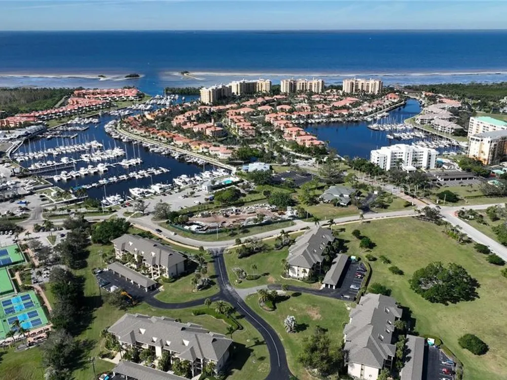 Seize the opportunity to escape winters’ cold and purchase YOUR TROPICAL GET-AWAY at Burnt Store Marina’s Spinnaker Club! This cozy FURNISHED/TURNKEY resort style 1440 square foot 2 bedroom, 2 bathroom, condominium with CARPORT features a combination living room and dining room floor plan with adjoining kitchen. The kitchen boasts newer appliances with side-by-side refrigerator/freezer with external ice, flat top stove/oven and dishwasher as well as loads of cabinet space and breakfast bar! In addition to the charming décor, the Living Room features carpeted flooring & French doors leading to the lanai. Enjoy the view from your private lanai which overlooks a lush manicured lawn & the pool area beyond. The large screened features tile floor, sliding window enclosures which create a bonus room for even greater living space & is the perfect place to entertain family & friends. Bedrooms are generously sized & have neutral color carpet. Master Bedroom Suite features a French door to the lanai & its own Master Bathroom with dual vanity sinks & combination bathtub & shower. This condominium is suitable for either a full time or seasonal residence. Burnt Store Marina is the home of SW Florida’s largest full service deep water marina with direct access to the gulf, 27-hole executive golf course with clubhouse, fitness center, tennis, 2 restaurants, walking path & Yacht Club. Come for the lifestyle….stay for life!