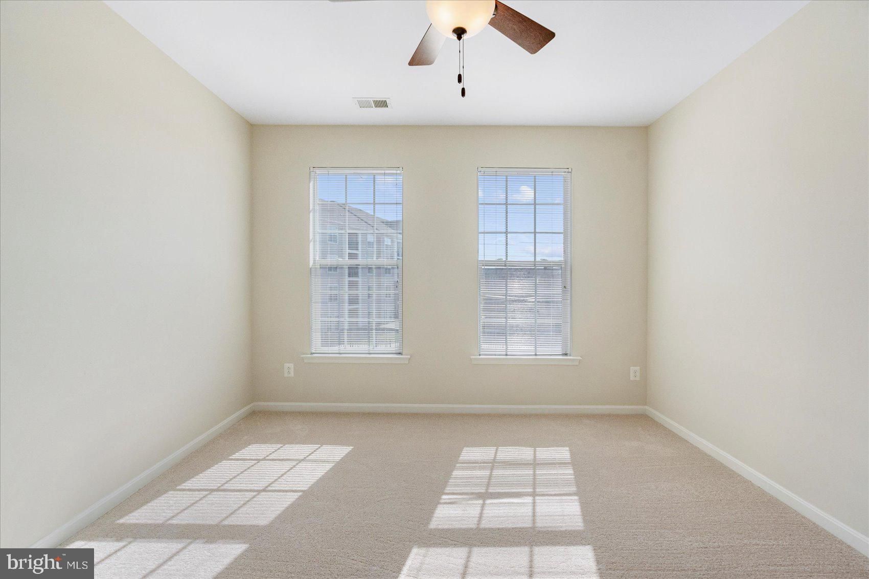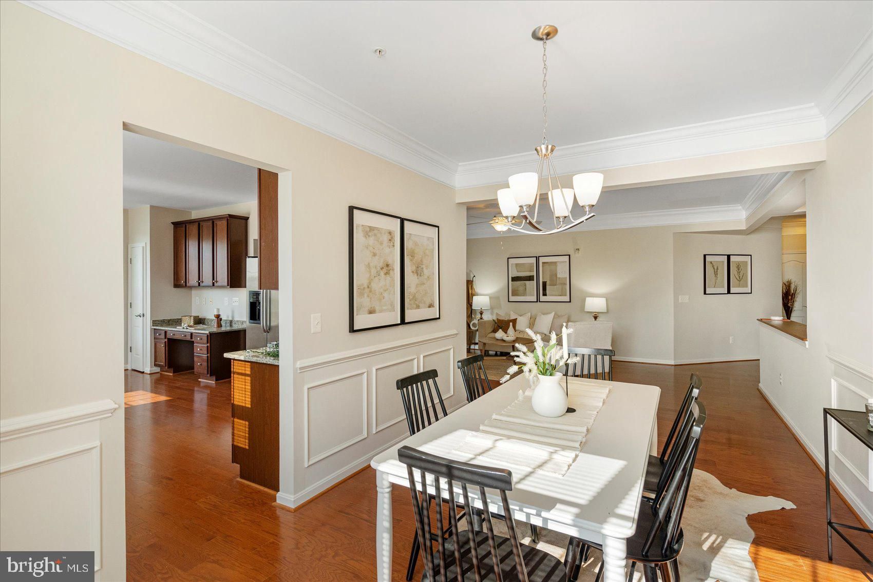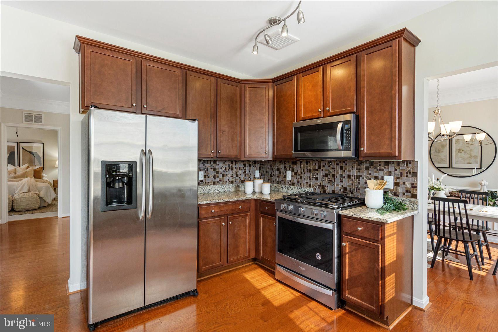 Step inside to an inviting open layout filled with natural light, gleaming vinyl floors, and a freshly painted neutral palette. The gourmet kitchen boasts granite countertops, stainless steel appliances, and 42" cabinetry, while elegant crown molding enhances the dining and living areas. Sliding glass doors open to a private balcony, offering the perfect spot to unwind outdoors.n The spacious primary suite includes a cozy sitting area, walk-in closet, secondary closet, and an ensuite bath with a dual-sink vanity and walk-in shower enclosed by sliding glass doors. The second bedroom and full bath with a tub-shower combo are thoughtfully positioned on the opposite side of the unit for added privacy. A den off the foyer provides flexible space for a home office, library, or guest retreat. Additional highlights include a dedicated laundry room, ample parking, and attached garage. Enjoy amazing community amenities such as a clubhouse with a fitness center, outdoor pool, community garden, dog park, scenic walking paths, social events, and more. Conveniently located just off I-795, this home offers easy access to shopping, dining, and everything you need.