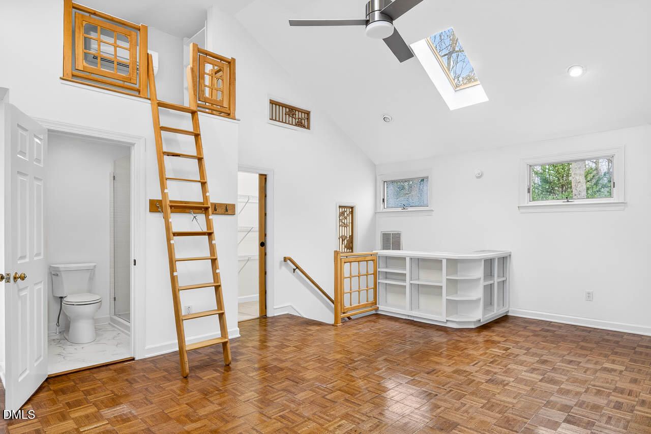GREAT FLOOR PLAN allows for your imagination to make this home your DREAM HOME! HUGE GREAT ROOM as well as SUNROOM, DEN/OFFICE and RETREAT off primary bedroom with NATURE VIEWS. Custom second floor BONUS ROOM and MODERN FULL BATH (previously used as artist's studiio) offers multiple possibilities. EXPANSIVE DECKS to enjoy nature and entertaining. LOTS OF STORAGE in KITCHEN*SS APPLIANCES INCLUDED, W/D INCLUDED, roomy 2-car garage with plenty room for hobbies. Move in as-is or add your updates when you're ready. Newer main HVAC 2020, 4 New SKYLIGHTS, Freshly painted and ready to go. Gas HOT water heater 2021, gas dryer. Utility Easement between side of property (woods) and townhomes. Open House during Fearrington Folk Art Show, February 21, 12-5