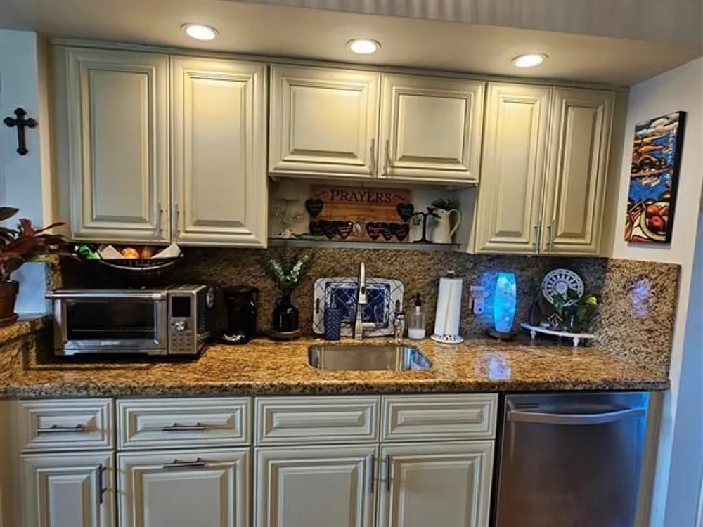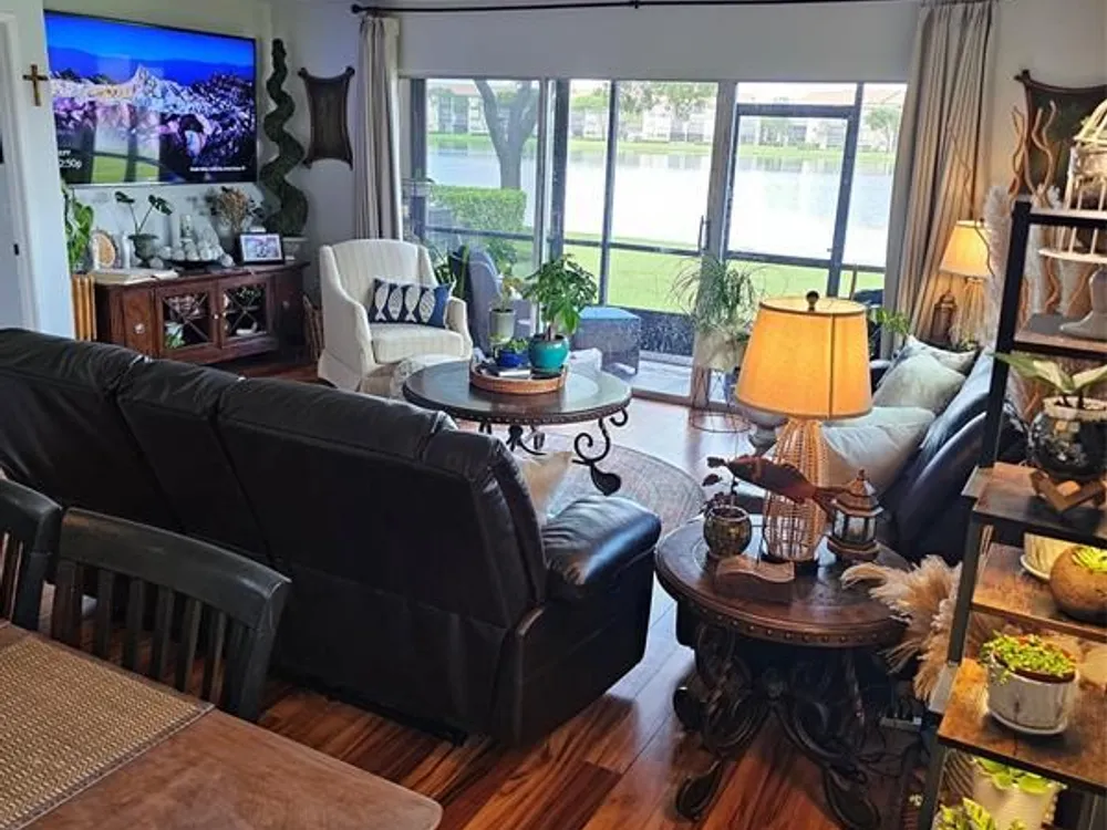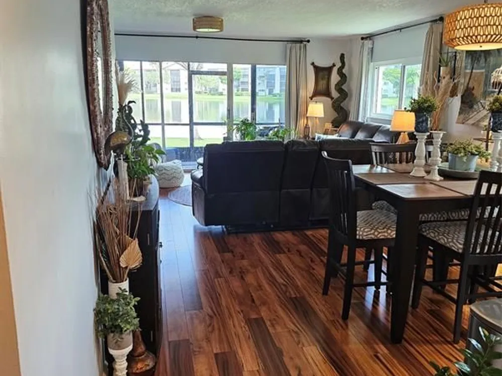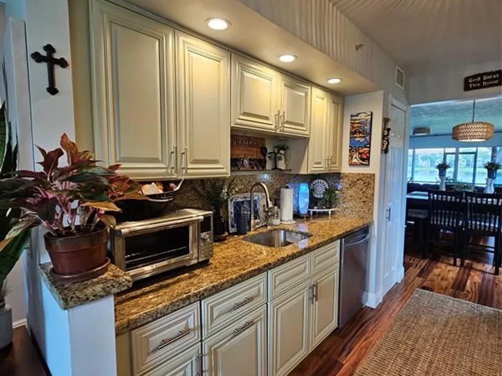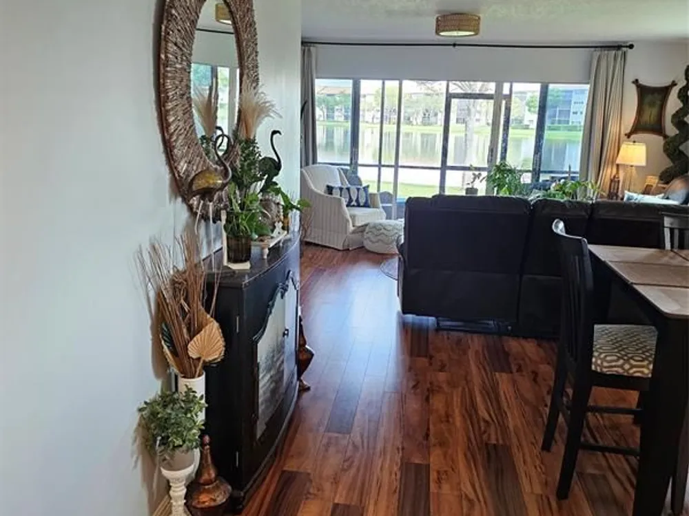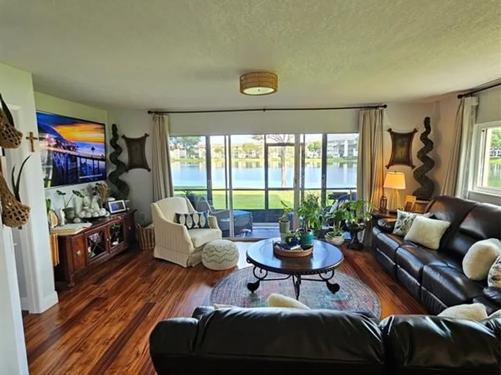 CORNER, CORNER! FIRST FLOOR, FIRST FLOOR! DON'T DRAG YOUR GROCERIES UP THE STAIRS, OR INTO THE ELEVATOR! WAKE UP TO BREATHTAKING LAKEFRONT VIEWS FROM 6 OF THE 8 WINDOWS IN THIS RARE FIRST FLOOR CORNER RESIDENCE. THE LARGEST FLOOR PLAN IN THE COMMUNITY. FLOODED WITH MORNING SUNLIGHT FROM THE EAST AND AMAZING BREEZE. THIS COMPLETELY UPDATED HOME BLENDS MODERN ELEGANCE WITH EVERYDAY COMFORT. HIGH QUALITY LAMINATE FLOORING, SOFT CLOSE HIGH END WOOD CABINETS, STAINLESS STEEL APPLIANCES, GRANITE COUNTERTOPS IN KITCHEN AND BATHROOMS. HOME IS COMPLETELY RENOVATED. NEW WINDOW TREATMENTS, IMPACT WINDOWS AND SLIDING GLASS DOOR. SCREENED PATIO WITH SHADES AND ADDITIONAL SLIDING GLASS DOOR. BRAND NEW AIR CONDITIONING UNIT, TANKLESS WATER HEATER. TOTAL APPLIANCE WARRANTY CONTRACT IN PLACE.