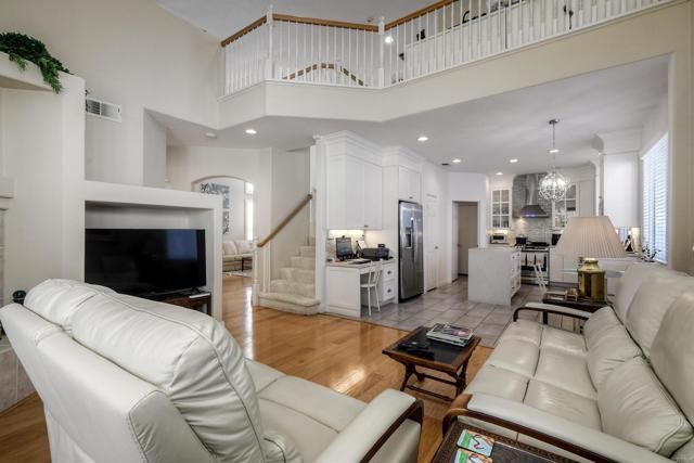 Welcome to 6015 Dassia Way – A Serene Retreat in Ocean Hills Country Club. Tucked away within the highly sought-after Ocean Hills Country Club 55+ community, this beautifully updated detached Athos model offers the perfect blend of comfort, style, and privacy. Step inside to light-filled living spaces designed for effortless living and entertaining. The inviting family room with fireplace flows seamlessly into the updated kitchen, featuring sleek countertops, contemporary cabinetry, and stainless steel appliances—built in desk area, ideal for gatherings with family and friends. The main-level primary suite is a true sanctuary, complete with a remodeled, spa-inspired bath. Hardwood floors add warmth and elegance throughout the primary bedroom, living room, and family room. While assessor records reflect three bedrooms (originally offered as an option), the home is currently configured as two bedrooms, creating a more open and spacious feel. Upstairs, you’ll find the second bedroom and full bath, along with an expansive loft and library area—perfect for guests, a home office, or creative pursuits. Outside, relax in the private, tranquil yard surrounded by mature landscaping—your own peaceful retreat.Additional highlights include forced-air heating, central air conditioning, and a dedicated laundry room with soaking sink. Enjoy the exceptional lifestyle Ocean Hills Country Club is known for, with access to free golf, pickleball, a saltwater pool, scenic walking trails, and a vibrant calendar of social activities. A rare opportunity to enjoy resort-style living in a beautifully updated home—this is more than a residence; it’s a way of life. See the floor plan. See virtual tour.