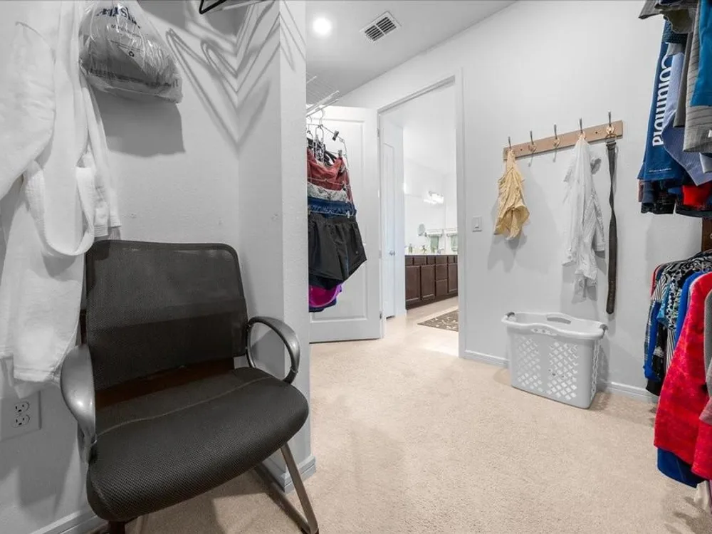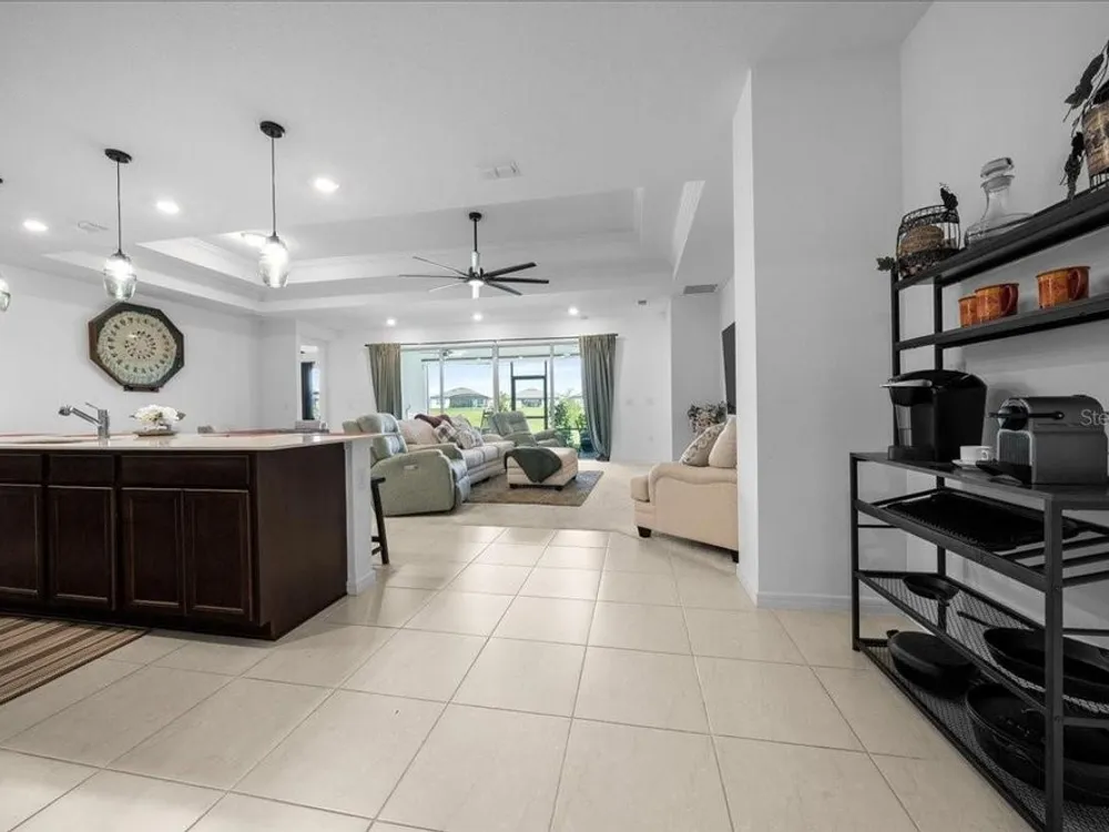 - Ceiling Fan(s), Eat-in Kitchen, High Ceilings, Kitchen/Family Room Combo, Open Floorplan, Main Level Primary, Smart Home, Thermostat, Tray Ceiling(s), Window Treatments