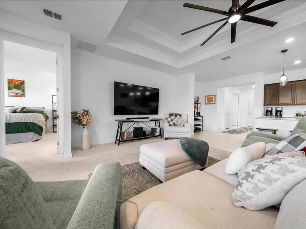 Stunning Stardom Model – Stylish, Spacious & Designed for 55+ Living Step into this exceptional 2-bedroom Stardom model, where modern design meets resort-style comfort. Featuring a large open floor plan, this thoughtfully crafted home offers the perfect blend of functionality, elegance, and entertainment-ready spaces. Stylish Open-Concept Living At the heart of the home is a bright, open-concept layout where the kitchen takes center stage, seamlessly connecting to the gathering room and café. The entertainer’s kitchen is a showstopper—complete with an oversized island, stainless steel appliances, and a walk-in pantry—ideal for both casual meals and special gatherings. Private Retreats Enjoy two spacious private suites, including a luxurious Owner’s Suite and a comfortable guest suite. Each offers abundant natural light, generous walk-in closets, and a tranquil ambiance designed for rest and relaxation. ALSO, a bonus room that can be an office, exercise room, 3rd bedroom or use your imagination. Smart Functionality & Storage Designed with daily living in mind, the home includes ample storage throughout, a generously sized laundry room, and flexible garage space—with the option to upgrade to a 3-car garage, perfect for hobbies or additional storage needs. Outdoor & Community Lifestyle Set within the highly desirable Stone Creek 55+ community, residents enjoy resort-style living with access to an 18-hole championship golf course, tennis and pickleball courts, multiple swimming pools, a state-of-the-art fitness center, and a variety of clubs and social activities. The community is celebrated for its lush landscaping, friendly atmosphere, and active lifestyle options.