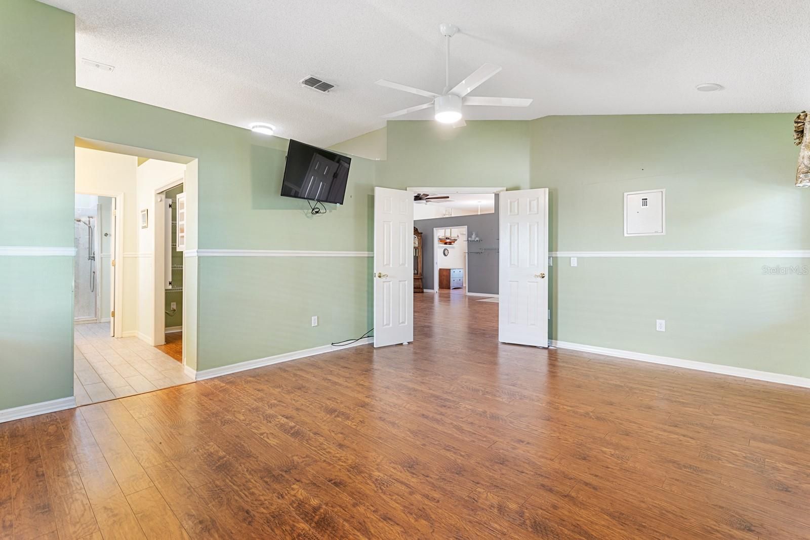 - Ceiling Fan(s), Central Vacuum, Eat-in Kitchen, Living/Dining Room, Solid Surface Counters, Solid-Wood Cabinets, Split Bedrooms, Stone Counters, Vaulted Ceiling(s), Walk-In Closet(s), Window Treatments