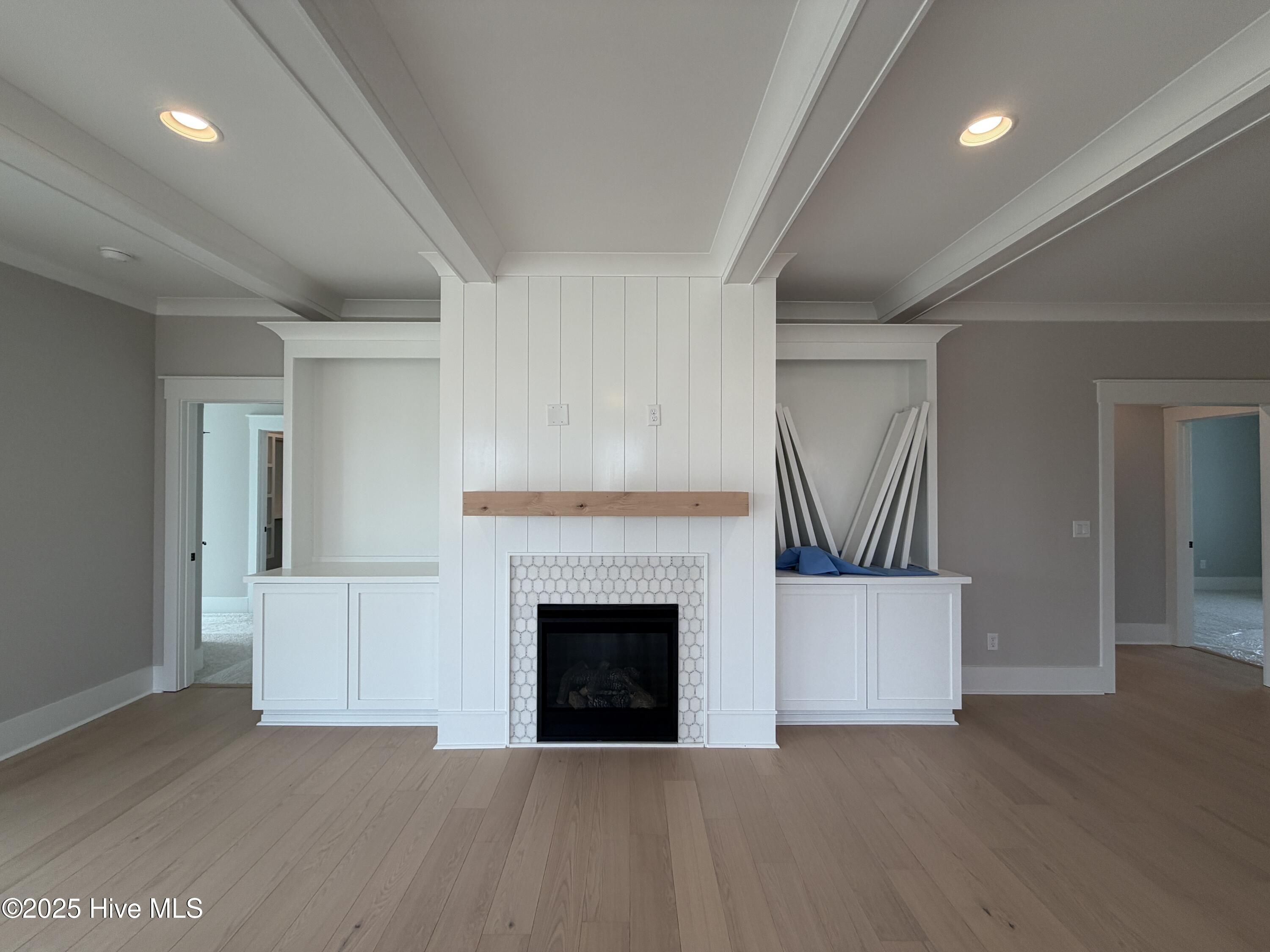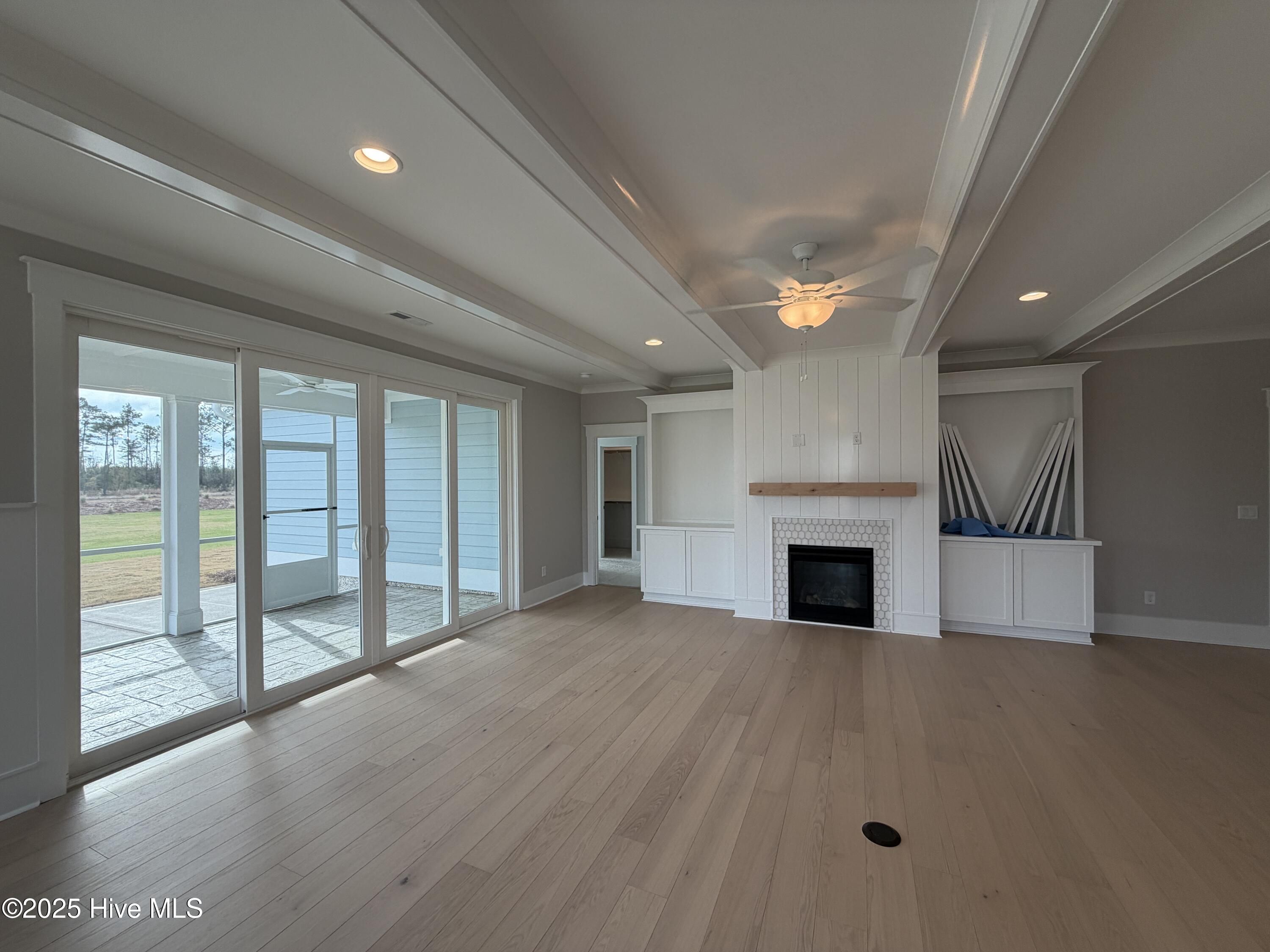 Welcome to the Cherry in Collingwood Cottages. Experience luxury living in this stunning 3-bedroom, 3-bathroom, 2,287 square foot home nestled within the exclusive 30-homesite Collingwood Cottages neighborhood. Built by Legacy Homes in the prestigious Brunswick Forest community, this beautifully crafted home offers the perfect blend of elegant design and comfortable living. The heart of the home features a spacious great room with exposed beams and a gas fireplace flanked by built-ins, flowing seamlessly into the prestige kitchen with quartz countertops and dining area surrounded by natural light. Center-meet sliders open to an impressive 25-foot screened porch and grilling patio with charming brick border—ideal for entertaining while enjoying the beautifully landscaped green space. The first-floor primary suite is the perfect retreat, complete with two large walk-in closets and a spacious master shower. A convenient secondary suite on the main level provides flexible space for family, guests, or a home office. Upstairs, a beautiful open staircase leads to a bonus room and third bedroom, maximizing your living options. Premium finishes throughout include extensive craftsman trim, shiplap wainscoting, and custom white wood closet shelving. Located in the coveted Cape Fear National neighborhood, you'll enjoy low-maintenance living with HOA-included lawn care while having access to all the lifestyle amenities of this renowned master-planned community.
