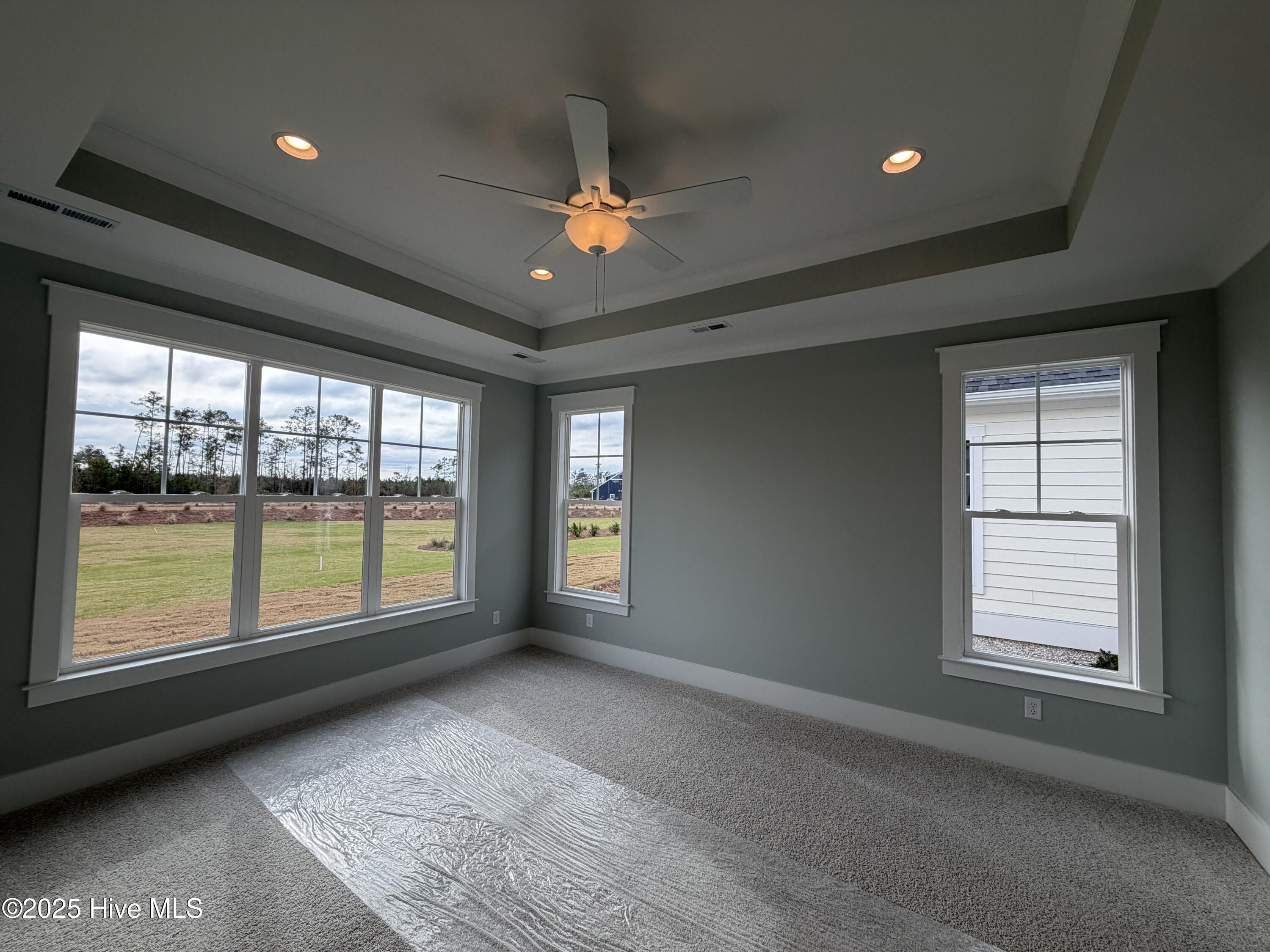 - Master Downstairs, Walk-In Closet(s), Tray Ceiling(s), High Ceilings, Entrance Foyer, Kitchen Island, Ceiling Fan(s), Walk-In Shower, Kitchen/Dining Combo
