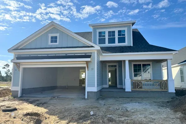 Welcome to the Cherry in Collingwood Cottages. Experience luxury living in this stunning 3-bedroom, 3-bathroom, 2,287 square foot home nestled within the exclusive 30-homesite Collingwood Cottages neighborhood. Built by Legacy Homes in the prestigious Brunswick Forest community, this beautifully crafted home offers the perfect blend of elegant design and comfortable living. The heart of the home features a spacious great room with exposed beams and a gas fireplace flanked by built-ins, flowing seamlessly into the prestige kitchen with quartz countertops and dining area surrounded by natural light. Center-meet sliders open to an impressive 25-foot screened porch and grilling patio with charming brick border--ideal for entertaining while enjoying the beautifully landscaped green space. The first-floor primary suite is the perfect retreat, complete with two large walk-in closets and a spacious master shower. A convenient secondary suite on the main level provides flexible space for family, guests, or a home office. Upstairs, a beautiful open staircase leads to a bonus room and third bedroom, maximizing your living options. Premium finishes throughout include extensive craftsman trim, shiplap wainscoting, and custom white wood closet shelving. Located in the coveted Cape Fear National neighborhood, you'll enjoy low-maintenance living with HOA-included lawn care while having access to all the lifestyle amenities of this renowned master-planned community.