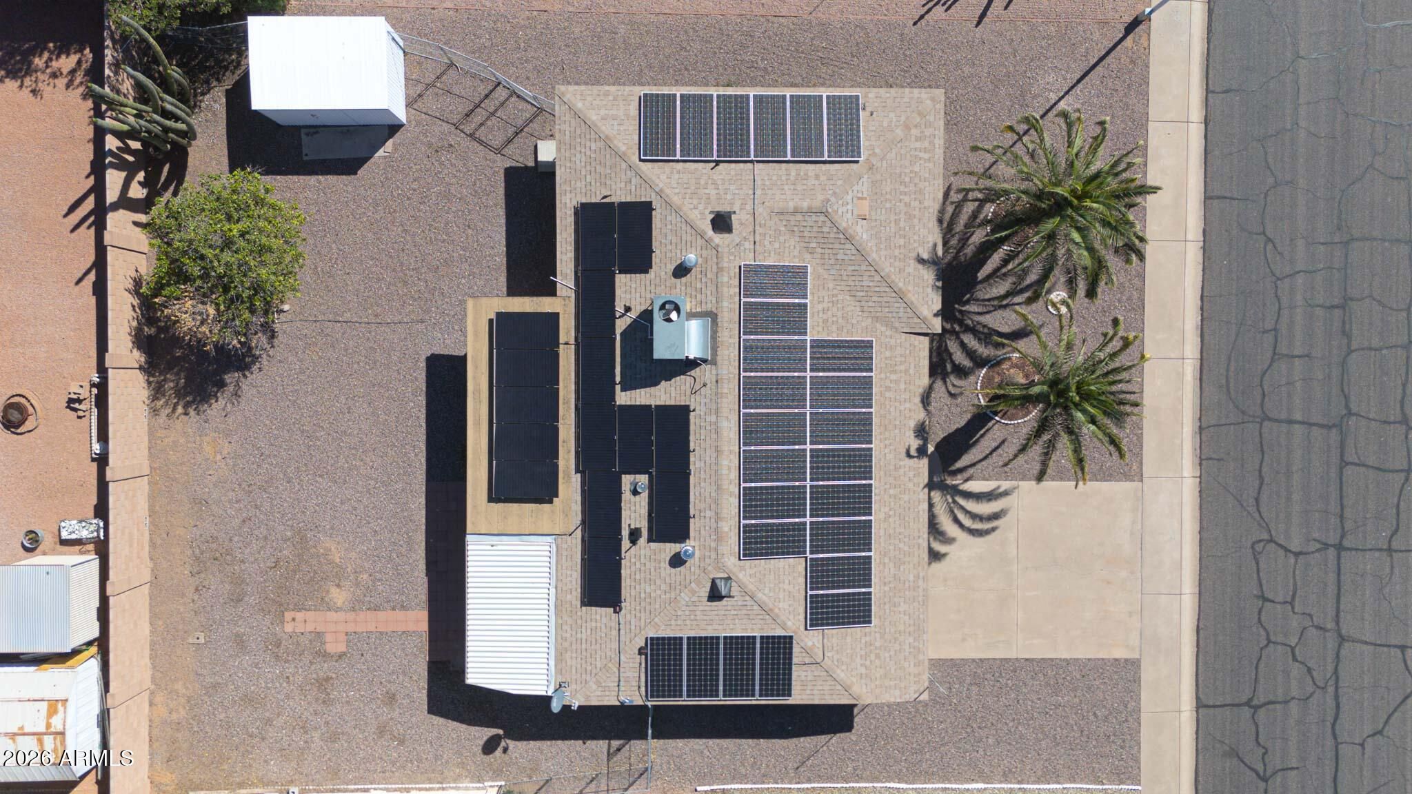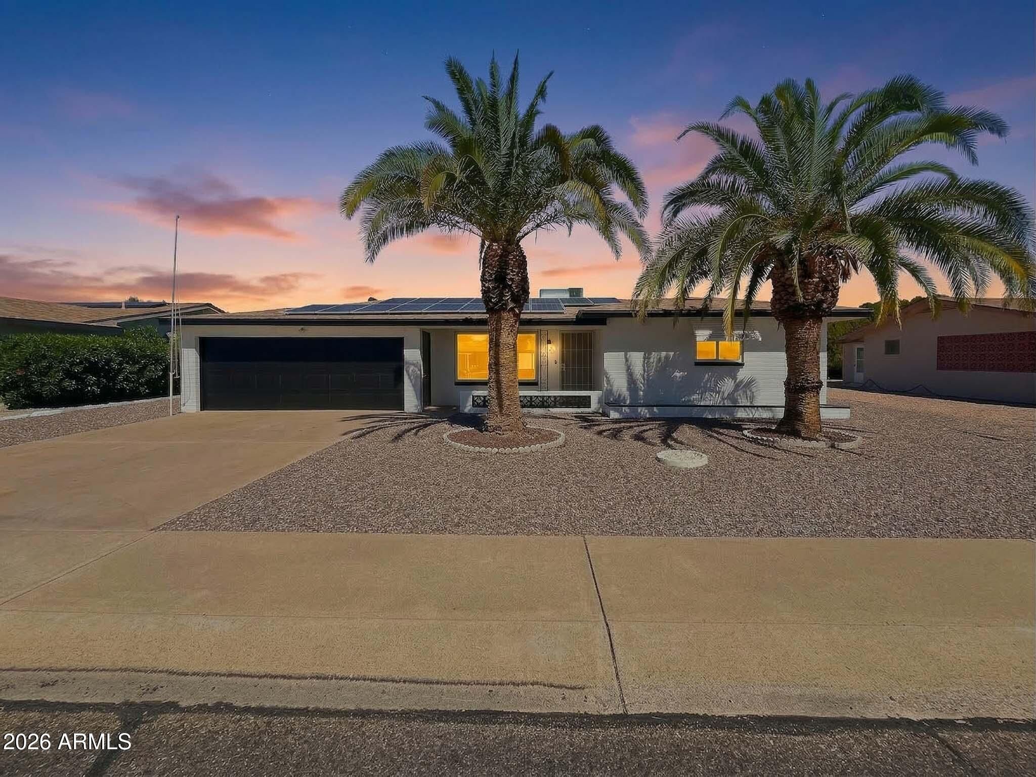 Beautifully updated home in the desirable Dreamland Villa 55+ community featuring a fully owned 41-panel solar system with no lease or loan to assume. The solar system produced approximately 24.67 MWh (24,670 kWh) in 2025, providing significant energy efficiency and reduced utility costs. Interior updates include new luxury vinyl plank flooring, fresh interior and exterior paint, updated lighting, new mirrored closet doors, and a new dishwasher. The home offers a functional layout with comfortable living spaces and move-in ready condition. Additional features include a sun room providing extra living space, a dedicated utility/storage room off the garage, and a backyard storageshed with room for outdoor enjoyment. Located in a well-established active adult community with convenient ac