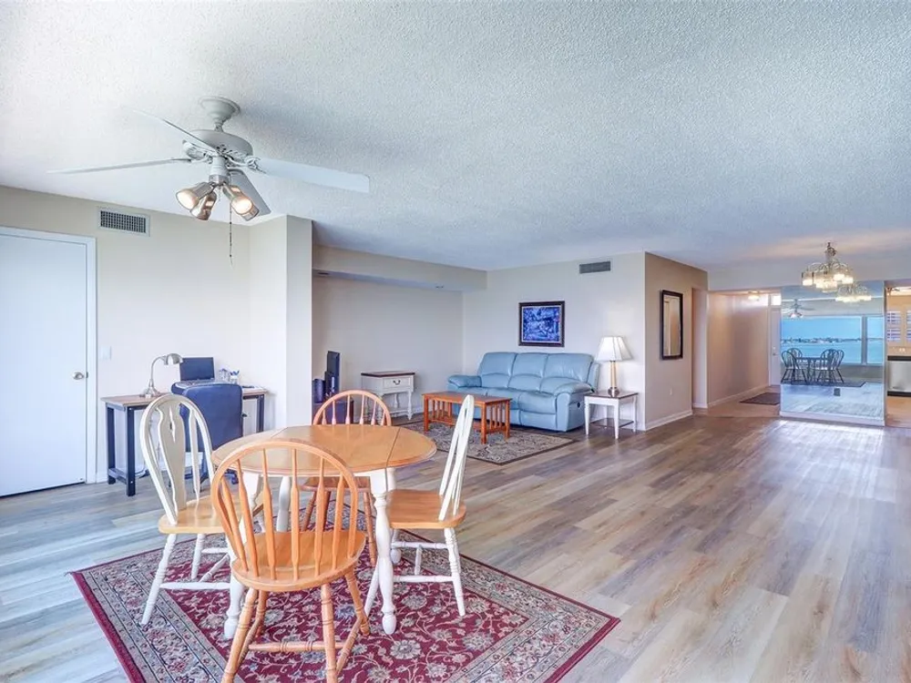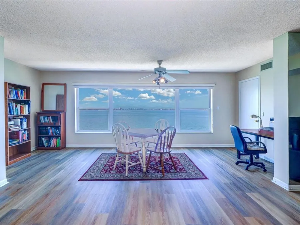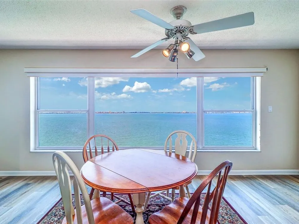 AMAZING AND STUNNING WATER VIEW OF BOCA CIEGA BAY from the large living room window. Just a few feet away you can see dolphins and sometimes manatees and stingrays, as they swim close to the sea wall below. You can see many boats especially on weekends, and at night you can see the St Petersburg Beach skyline about 3 miles across the Bay with the Don Cesar Hotel lit up in pink. This unit has an open floor plan which gives more flexibility in decorating. It has 1,450 square feet–including 2 bedrooms and 2 bathrooms. There are 18 buildings in Town Shores, and Windsor is one of the 4 buildings that overlook Boca Ciega Bay. The building got new carports in 2024 and a new roof is now being installed. This unit, #503, has motorized hurricane shutters for the very large living room window and also for the windows in each bedroom. New A/C and Furnace on 9-13-22. All the appliances will stay. In 2022, the condo was freshly painted in all rooms and got all new vinyl flooring in the 2 bedrooms, living room, and hallway and also new ceramic tiles in the 2 bathrooms and kitchen before the current owner took possession on May 6, 2022. Seller will consider negotiating all the furniture, beds, Asian rugs, bookcases. and books. HOA dues ($596/mo) cover cable TV, internet, building maintenance, escrow reserve funds, building insurance, water, sewer, trash, recycling bins, and gas for the stove! You only have to pay for electricity. The Town Shores Clubhouse has a large auditorium for all kinds of social activities and events. The Clubhouse has an exercise room, puzzle room, card room, large billiards room, library, a kitchen on each floor, sauna rooms and showers in the restrooms by the main pool. Activities include chair volleyball and yoga. Outside you can play pickleball, tennis, shuffleboard, and bocce, and there is an area for kayak storage. Gulfport is a town that focuses on the arts, and Town Shores is within walking distance to the Gulfport Recreation Center, Gulfport Senior Center, Gulfport Library, the historic Gulfport Casino, Gulfport Beach, and all the restaurants and shops on Beach Blvd.