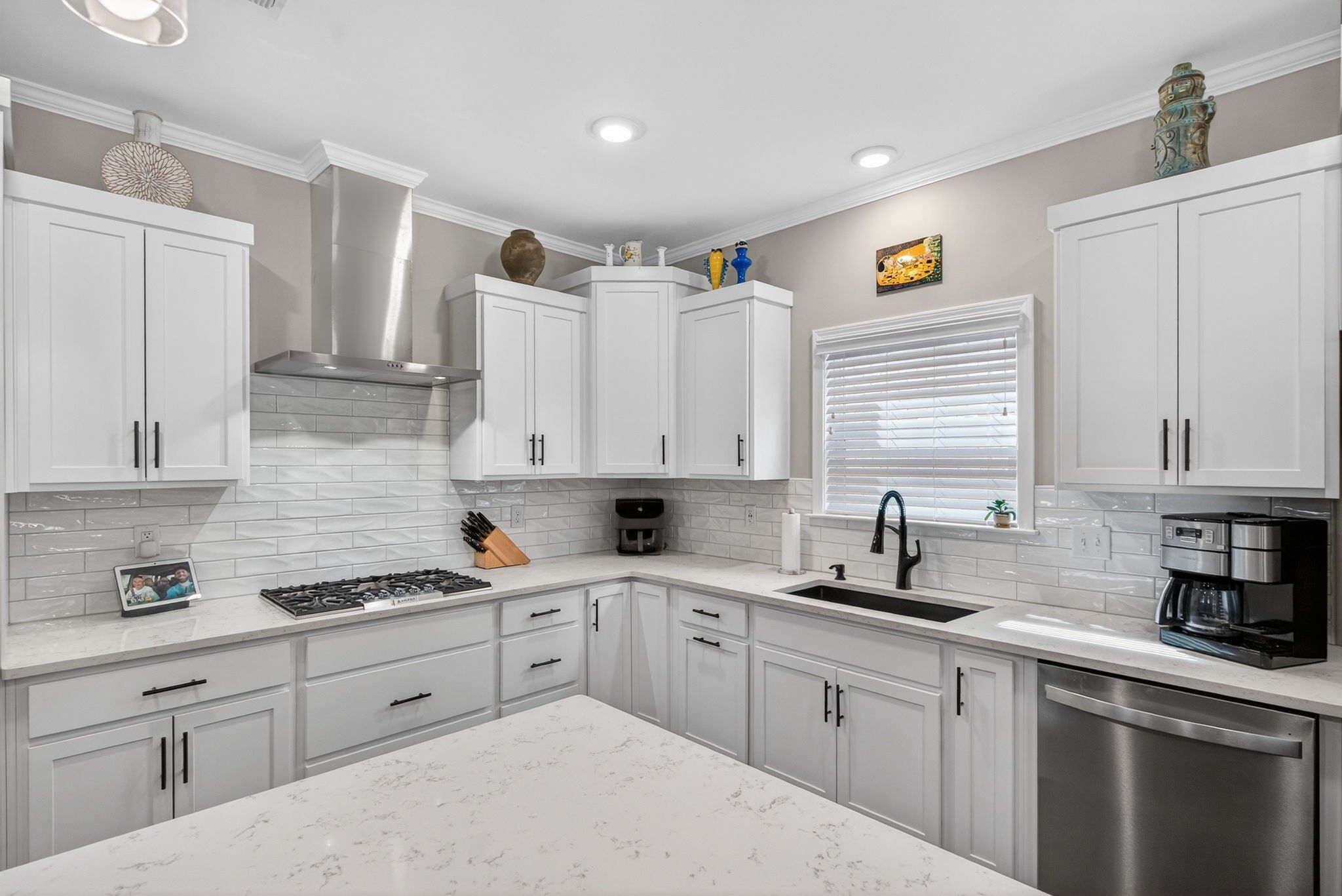 - Built-In Electric Oven, Gas Range, Dishwasher, Disposal, Microwave, Stainless Steel Appliance(s)