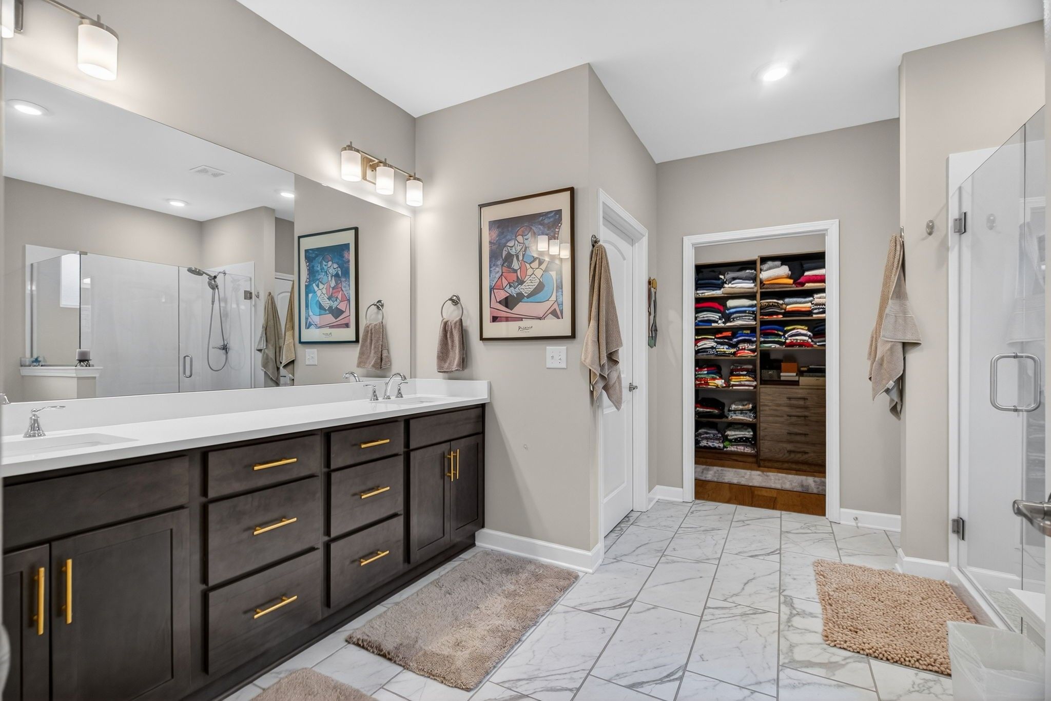Nashville’s best 55+ community has so much to offer, starting with this tastefully updated "Richland B" layout. Located on a premium lot with rear alley access facing woods. Upgrades include: living room featuring custom wood cabinets, two built in real-wood bookshelves with additional windows, and an additional gas fireplace surrounded by gorgeous tile. The open quartz counter-top kitchen was upgraded with a quartz sink, matching faucet, and a luxury "Heston" gas stove top. Three custom made shiplap walls. Custom built walk-in closet crafted from real oak wood in the main level primary bedroom. The 3-car tandem garage boasts an epoxy floor as well as slat-walls for organized storage. WIFI switches throughout the home - have you ever turned on a tankless water heater or front porch lights with your voice? It's pretty sweet! Pre-wired with CAT 6. Other features include a covered patio with an outdoor fireplace, pantry, large laundry room, walk-in attic storage, engineered hardwood flooring (main floor), office with french doors, energy efficient "Argon" filled windows and a large hobby room with full bath + 3rd guest bedroom upstairs. Community amenities: Pool, two tennis courts, eight pickle ball courts, two dog parks, walking path adjacent access to Stones River Greenway - a short walk to the Cumberland River. The clubhouse includes a running track, yoga room, quality exercise equipment room, pool table, table shuffleboard, over-sized beautiful poolside gathering room with fireplace and full kitchen for hosting events, large conference room, gorgeous little library, card room, game room, multiple patios, outdoor shuffleboard, bocce ball and more! Builder: HND