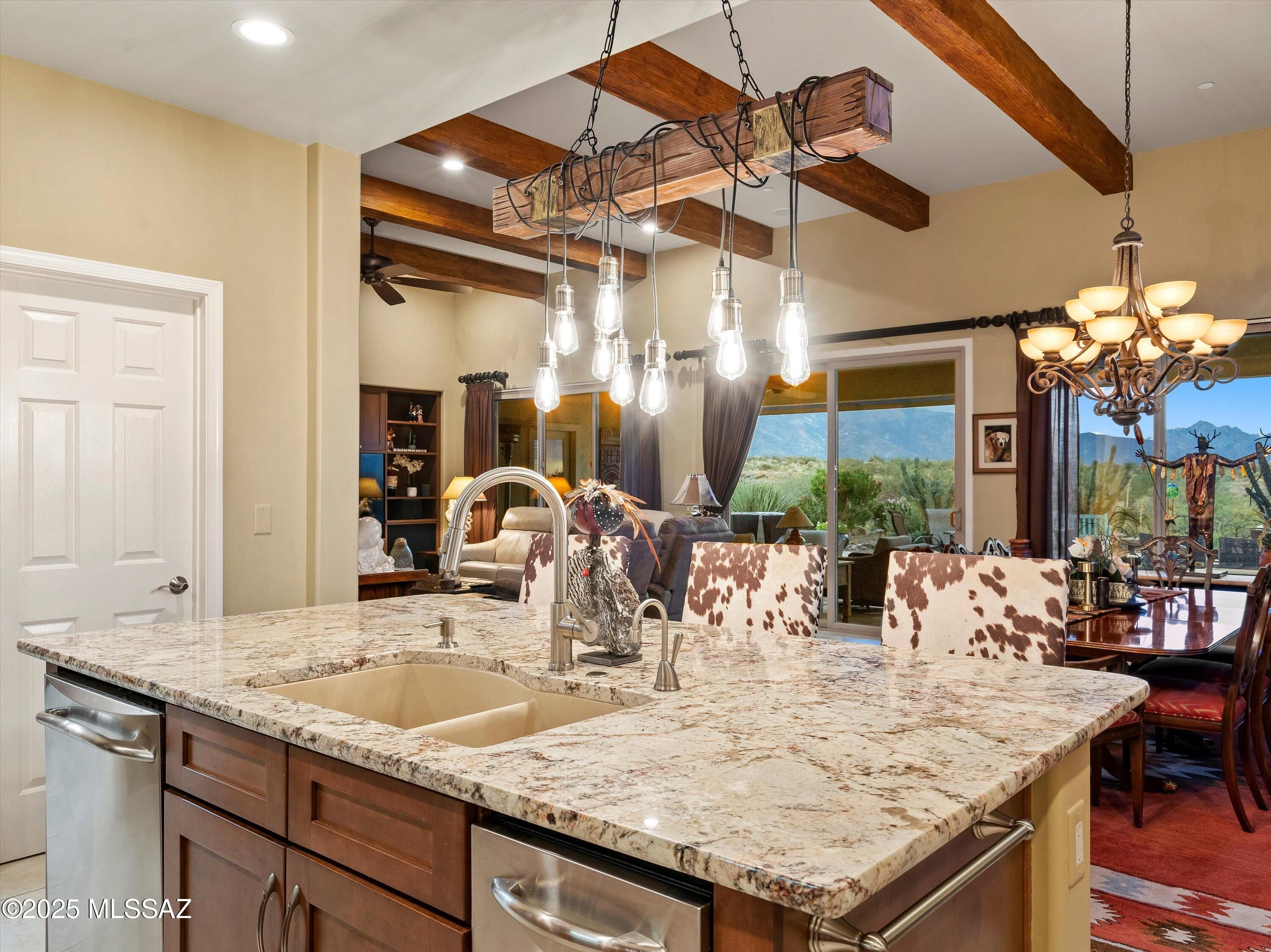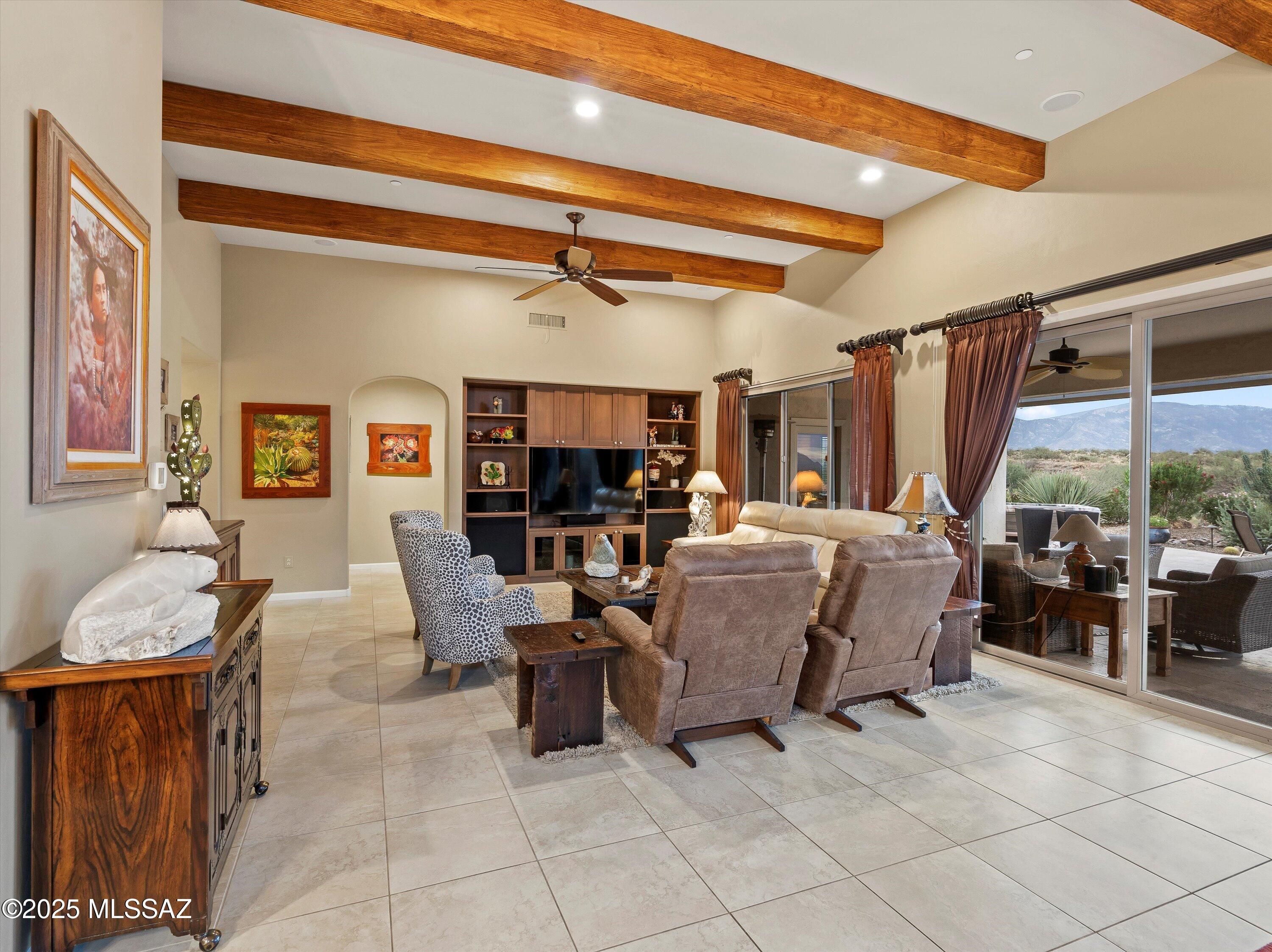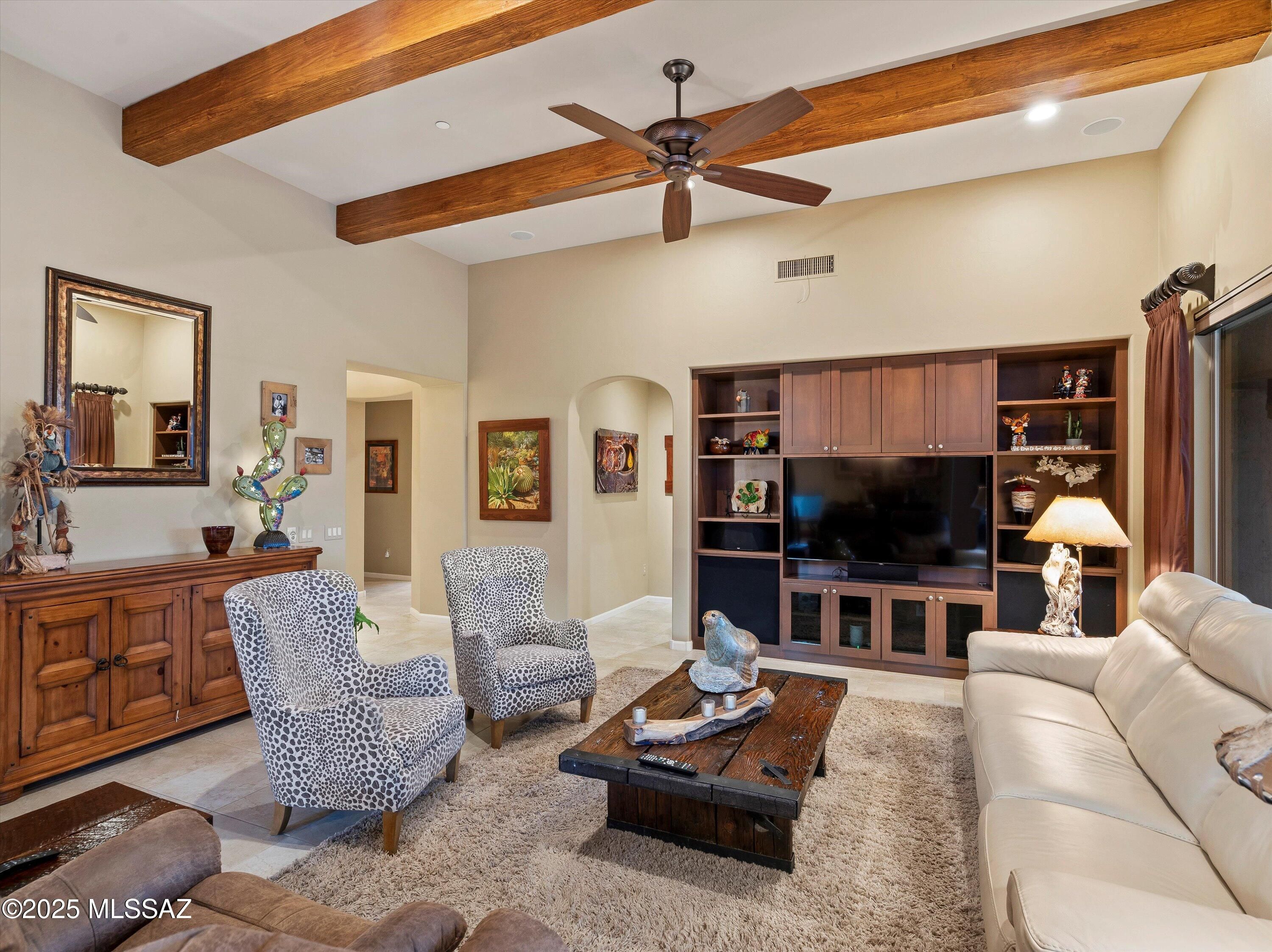 - Beamed Ceilings, Ceiling Fan(s), Central Vacuum, Entertainment Center, Entrance Foyer, Fire Sprinkler System, High Ceilings, Solar Tube(s), Split Bedrooms, Walk-In Closet(s), Water Purifier