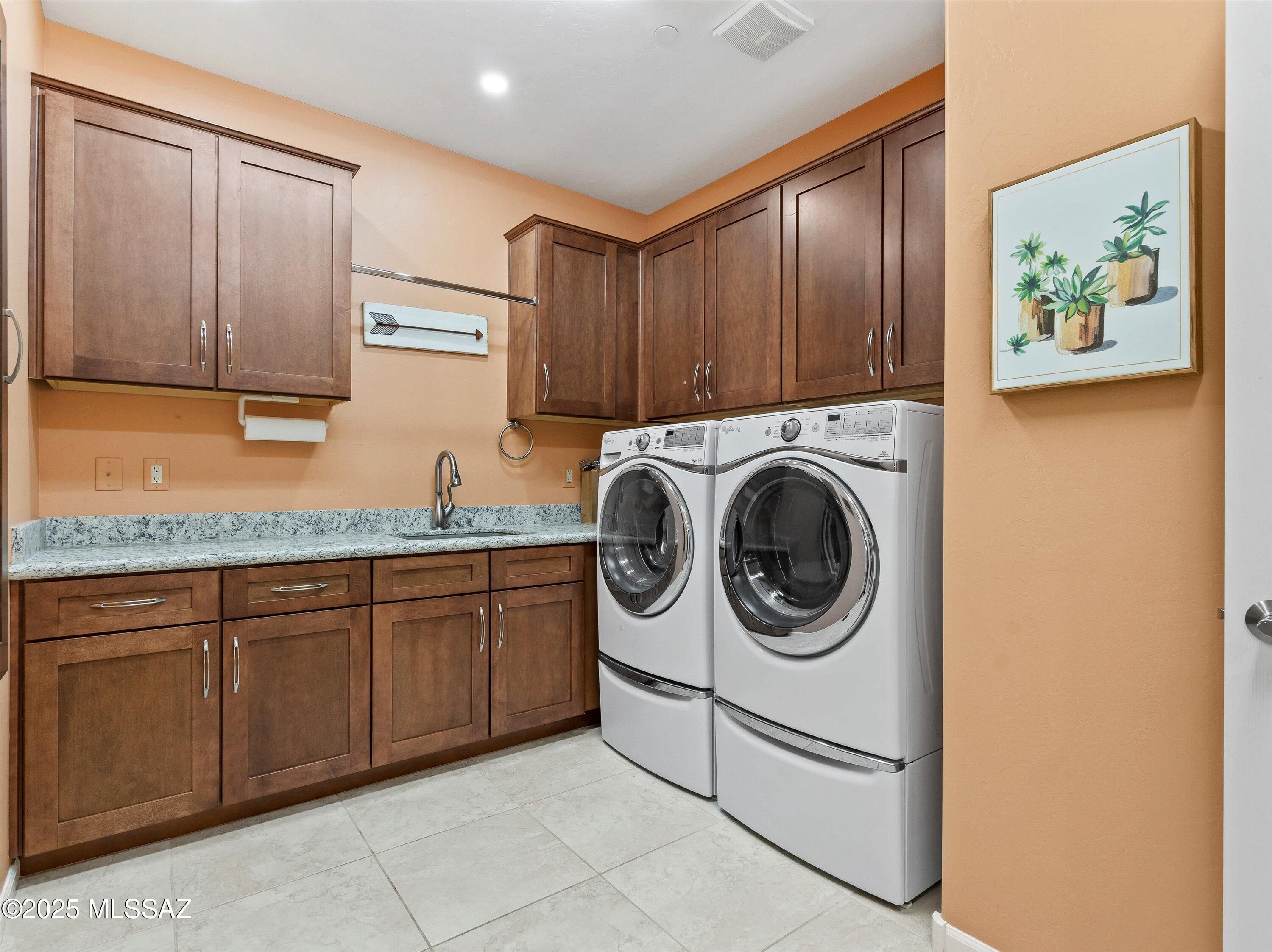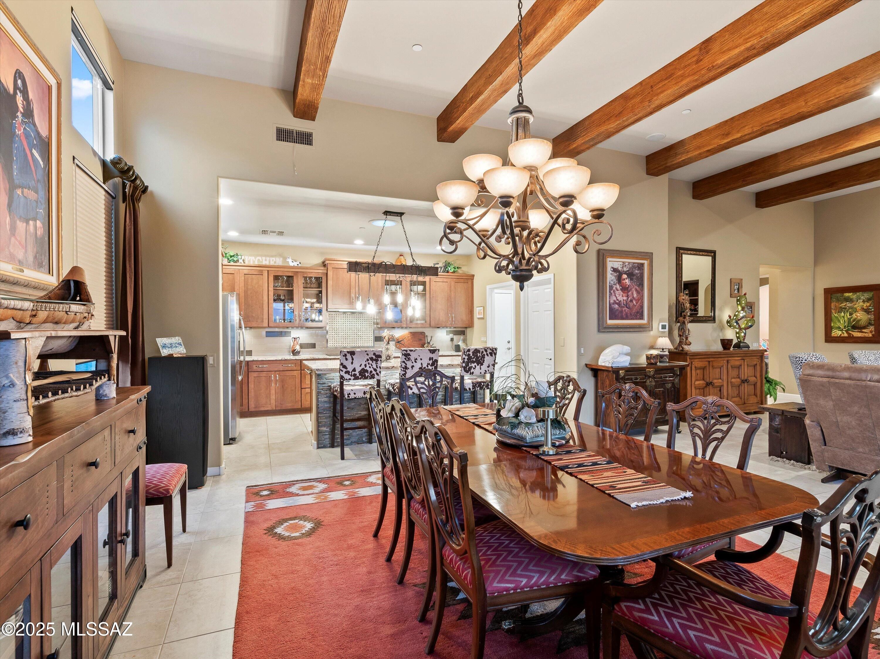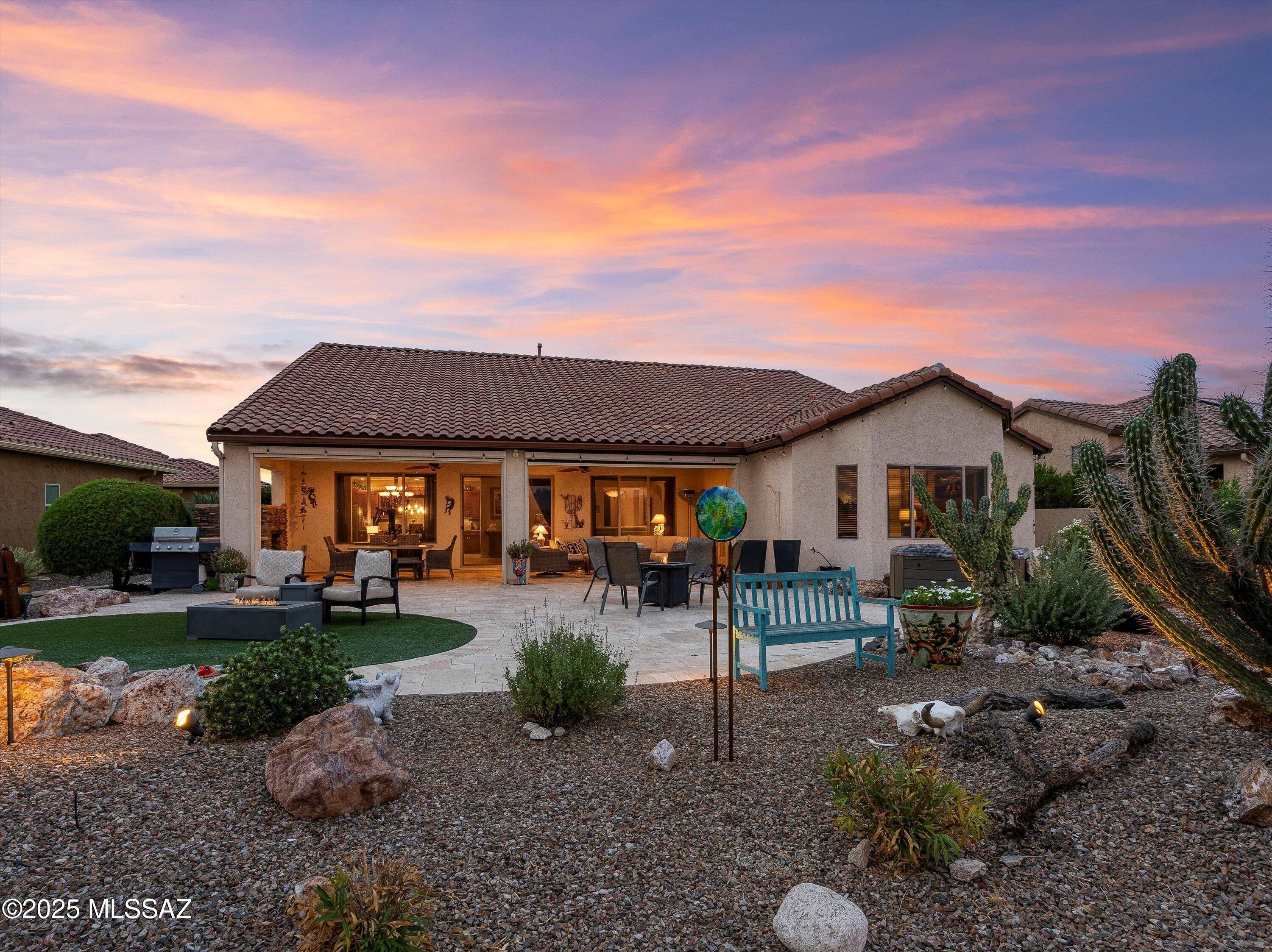 Currently-accepted offer is contingent upon Buyer selling home, other offers can be submitted/accepted.Enjoy breathtaking panoramic mountain views from your extended travertine patio, perfect for outdoor entertaining. This highly upgraded Pima model has a special casita hobby room that makes a wonderful retreat & hobbyist's dream! The gourmet kitchen features a sleek induction cooktop, full tile backsplash, dual roll-out base cabinets, a lazy Susan, Edison pendant lighting, solar tube, & a spacious walk-in pantry. The adjacent laundry room is equally impressive, offering full cabinetry, a convenient hang bar, & built-in ironing board for seamless functionality. The primary bedroom features a door for easy access to the patio, bay window, a soaking tub & separate shower,