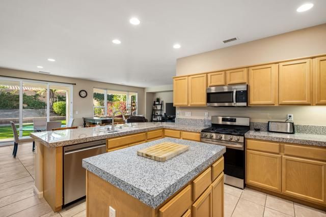 Experience the relaxed desert lifestyle at Trilogy La Quinta, where resort-style amenities include golf, tennis, pickleball, bocce ball, and a state-of-the-art fitness center. Ideally located just minutes from the Santa Rosa Clubhouse, this desirable Oasis plan offers 2 bedrooms, 2 baths, 1551 sqft. of interior living space, a dining area, and an inviting great room with a built-in TV/media niche. The chef's kitchen features granite countertops, a gas range, prep island, breakfast bar seating, spacious pantry, and built-in microwave. The guest quarters enjoy an adjacent full bath and excellent privacy from the master suite, which boasts abundant natural light, a spa-like bath with dual vanities, shower enclosure, dressing area, and a generous walk-in closet. The backyard is a blank canvas, ready for your dream pool or the ever-popular SPOOL concept, while the covered patio provides shade and year-round comfort. Just a short golf cart ride away, Kitchen 1011 offers outstanding dining, all framed by breathtaking mountain and golf course views. Schedule your private tour today!