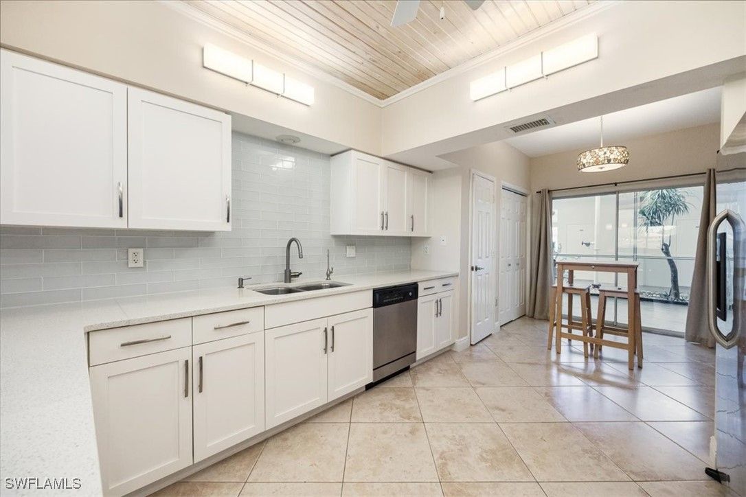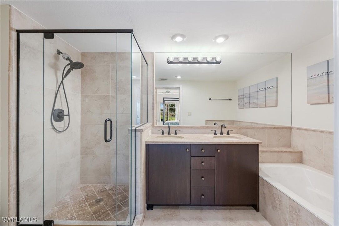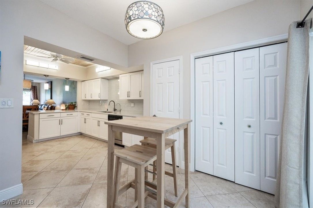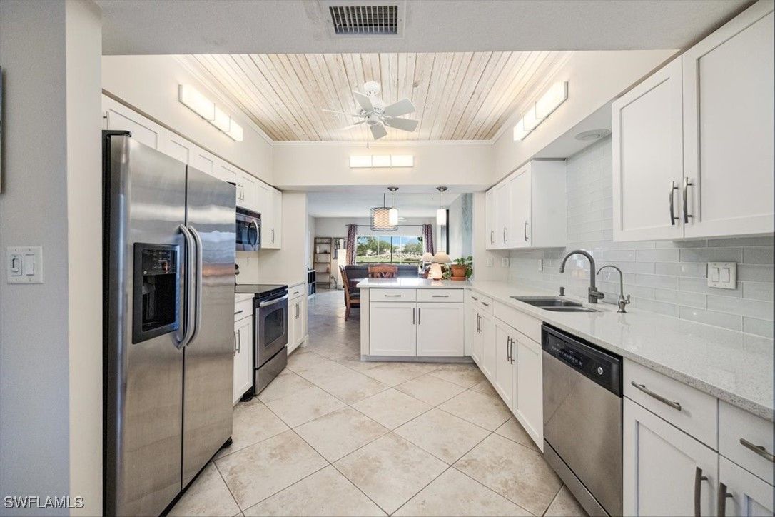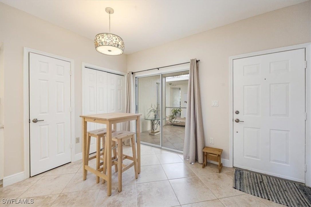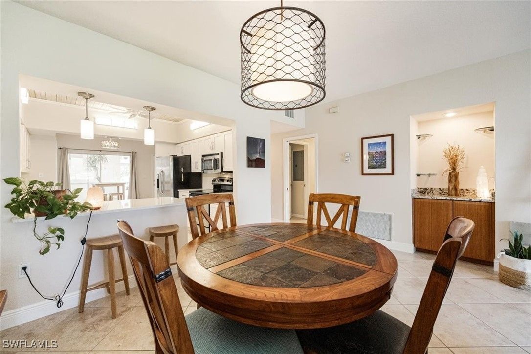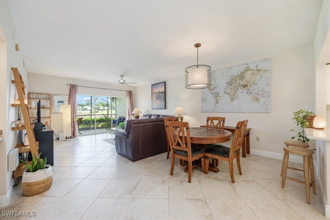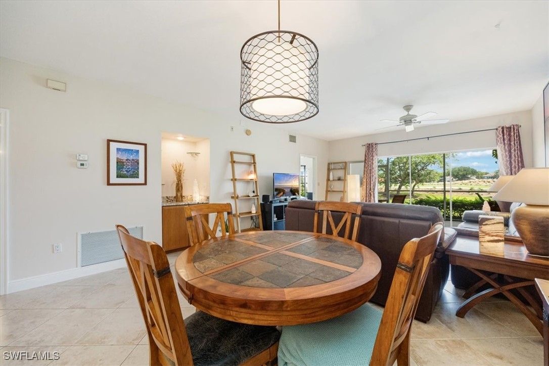 Chardonnay in the Vineyards is simply a great community to enjoy your full time or seasonal residency in SWFL! This fresh and breezy first floor condo offers front and rear screened lanai spaces for optimal living and the rear lanai, accessible from the great room and the primary bedroom, offers serene sunrises and golf course views. Step into this charming condo and be immediately drawn to the inviting view while appreciating the subtle detail throughout. The open, spacious great room/dining room combo flows to the updated kitchen complete with pretty ceiling detail and white cabinets. A second dining area can also function perfectly as a quiet workspace or a lively game night spot. The primary bedroom and bath are well-appointed with an updated shower, separate tub and dual sinks. Featuring a brand-new A/C system installed in August 2025, this impeccably maintained residence offers comfort and care at the highest standard. Located only 5 miles from sandy gulf beaches, and walking distance to Crossroads Market Shopping Center and Physicians Regional, a multitude of dining and shopping destinations, arts centers and nature trails, this is an ideal location for enjoying everything Naples. Vineyards Country Club offers several levels of optional membership which can include 36 holes of Championship Golf, Pickleball, Bocce, Har Tru Tennis courts, Wellness/Fitness Center, Spa, Saltwater Lap pool and a Halotherapy Salt Room!