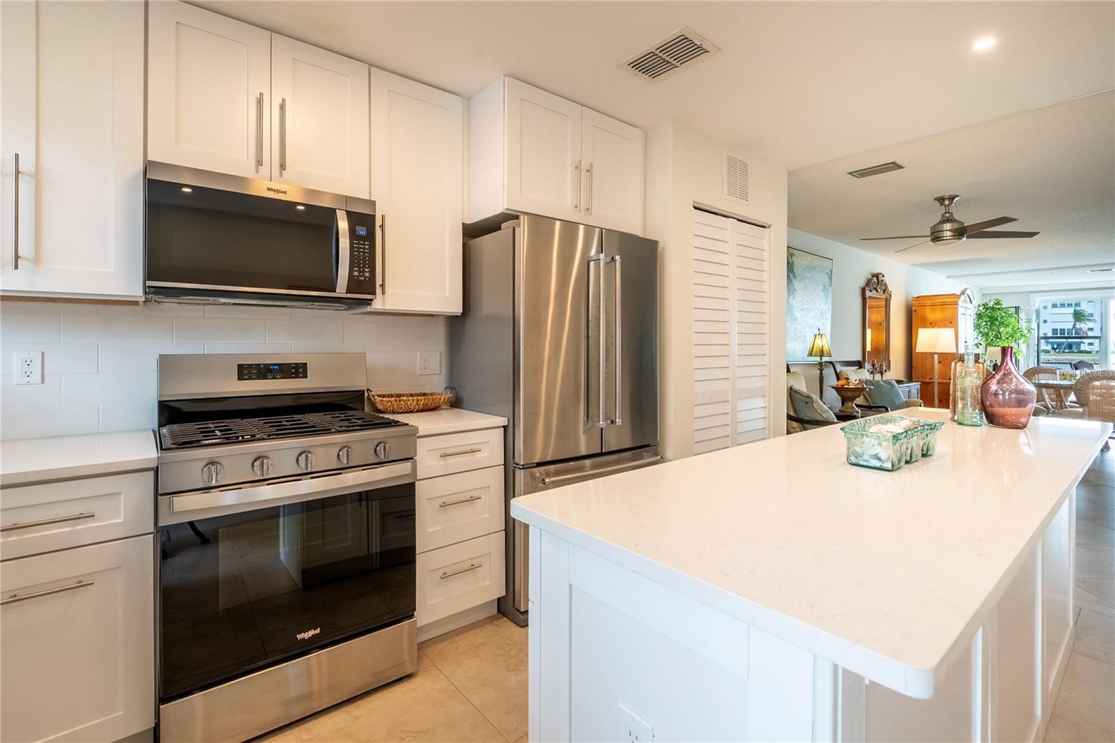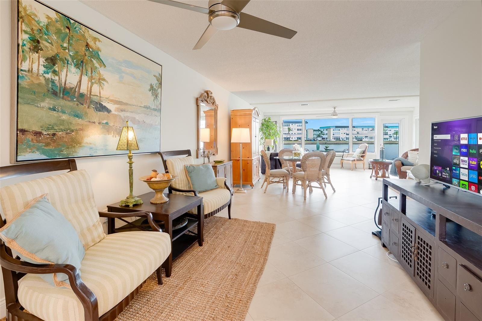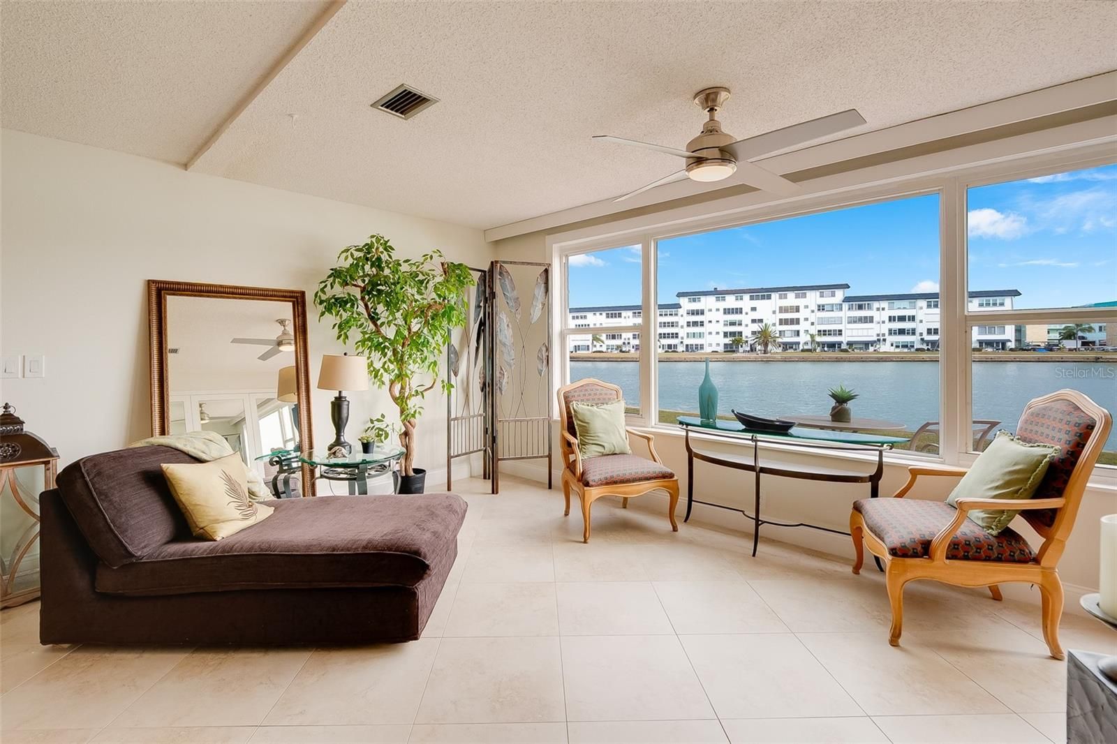 Discover EXCEPTIONAL COASTAL LIVING in this super spacious, bright and BEAUTIFULLY RENOVATED WATERFRONT 1-bedroom condo located in the sought after Manchester Building at Town Shores of Gulfport, an awarding winning 55+ community with RESORT-STYLE AMENITIES! Whether a vacation destination, part-time or permanent home, you can't beat this wonderful location that is just blocks away from the artsy, vibrant and fun Gulfport Village with its own beach, restaurants, boutiques, music venues and art galleries. This bright and beautiful home comes turnkey and ATTRACTIVELY FURNISHED, featuring an impressively OPEN FLOOR PLAN, MODERN UPGRADES throughout, and SHIMMERING WATER VIEWS that create a serene, leisurely atmosphere. Every detail has been thoughtfully upgraded, and the customized alterations to the Deluxe model create a modern, inviting home that blends comfort with coastal elegance and provides a flowing, exceptionally open and airy floor plan. From the stylishly updated kitchen with white shaker cabinets, recessed lighting, new stainless appliances and sleek brushed nickel hardware ... to the living area that blends comfortable seating with plenty of space for dining ... to a relaxing nook by a scenic window … you will fall in love with this stunning waterfront unit! Walk out to the patio and breathe in the fresh sea breezes and immerse yourself in the intercoastal water views. The ambiance and tasteful design elements throughout blend beautifully together to bring the coastal outdoors inside. Upgrades include high impact windows and doors for safety, efficiency and peace of mind, new HVAC (2025), new Whirlpool and KitchenAid stainless appliances including a gas stove/air fryer combo, and an elongated island with lots of drawer space. Upgraded flooring throughout, including large square travertine-look tiles laid on the diagonal, and a bath with a 60"vanity, shower with tempered glass sliding doors and modern lighting. The monthly HOA fee includes a Spectrum Bulk internet and wireless package, natural gas for cooking (and on demand) hot water, flood and building insurance, and pool, landscaping and exterior maintenance. This unit is deeded with Carport space #33 for your convenience, and the Manchester has ample guest parking available in front of the building. Town Shores has its own private marina and slips (as they become available), 4 heated pools, an active and social Clubhouse with weekly events, a tennis/pickleball court, shuffleboard, bocce ball and kayak storage. This vibrant community is just a short distance from the fun, active and artsy village of Gulfport and its famous Gulfport Tuesday Fresh Market and lively First Friday Art Walks. Conveniently located just 30 minutes from TIA and 10 minutes from thriving downtown St. Pete and the Gulf coast beaches. Don't miss out on this beautiful turnkey unit.
