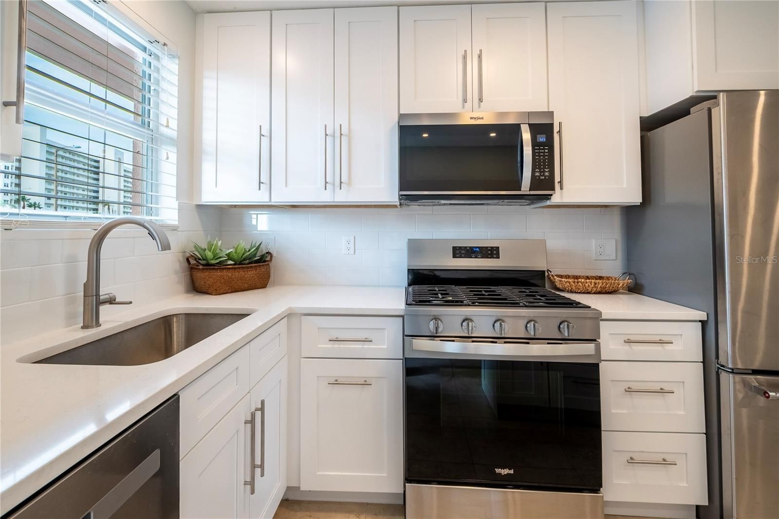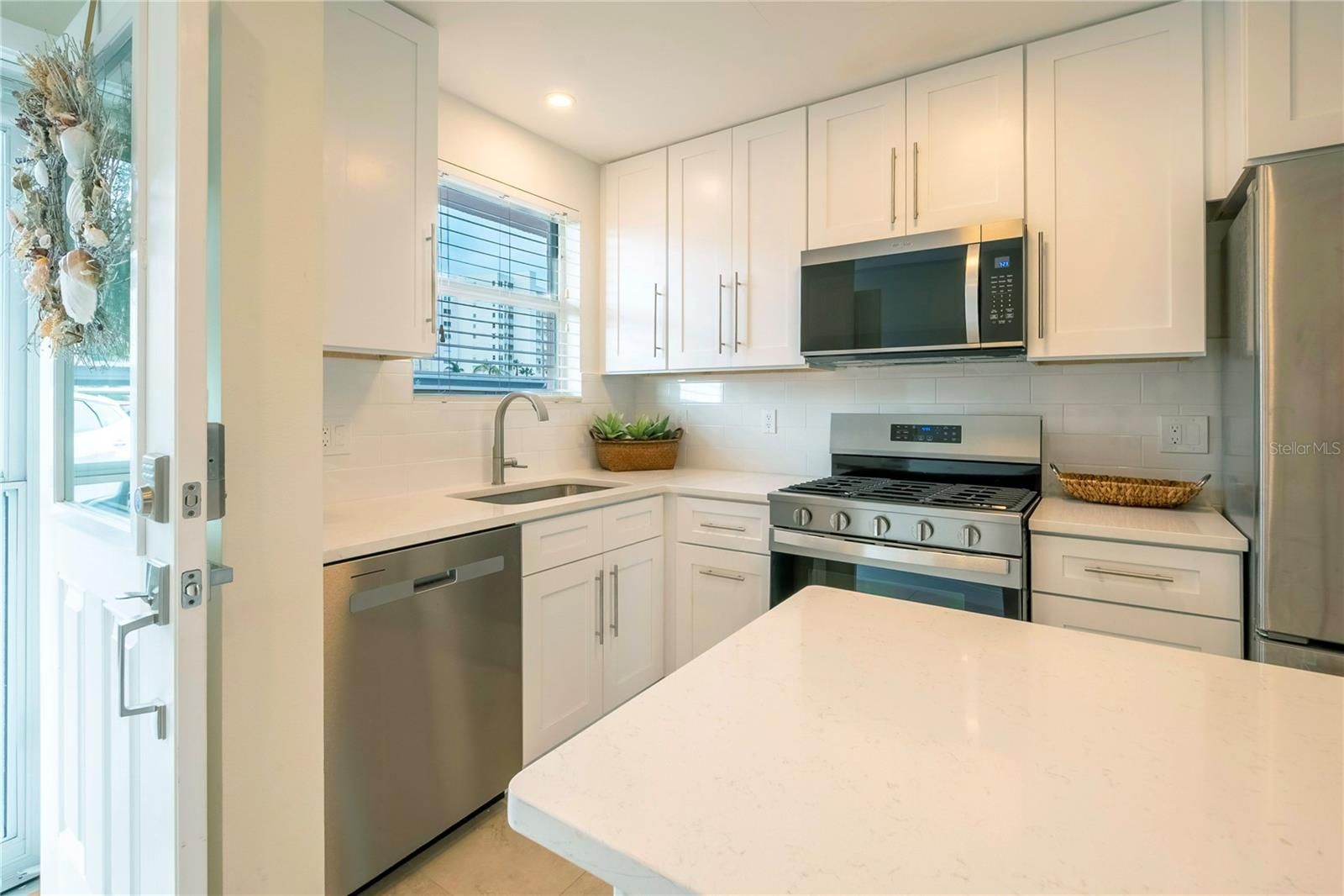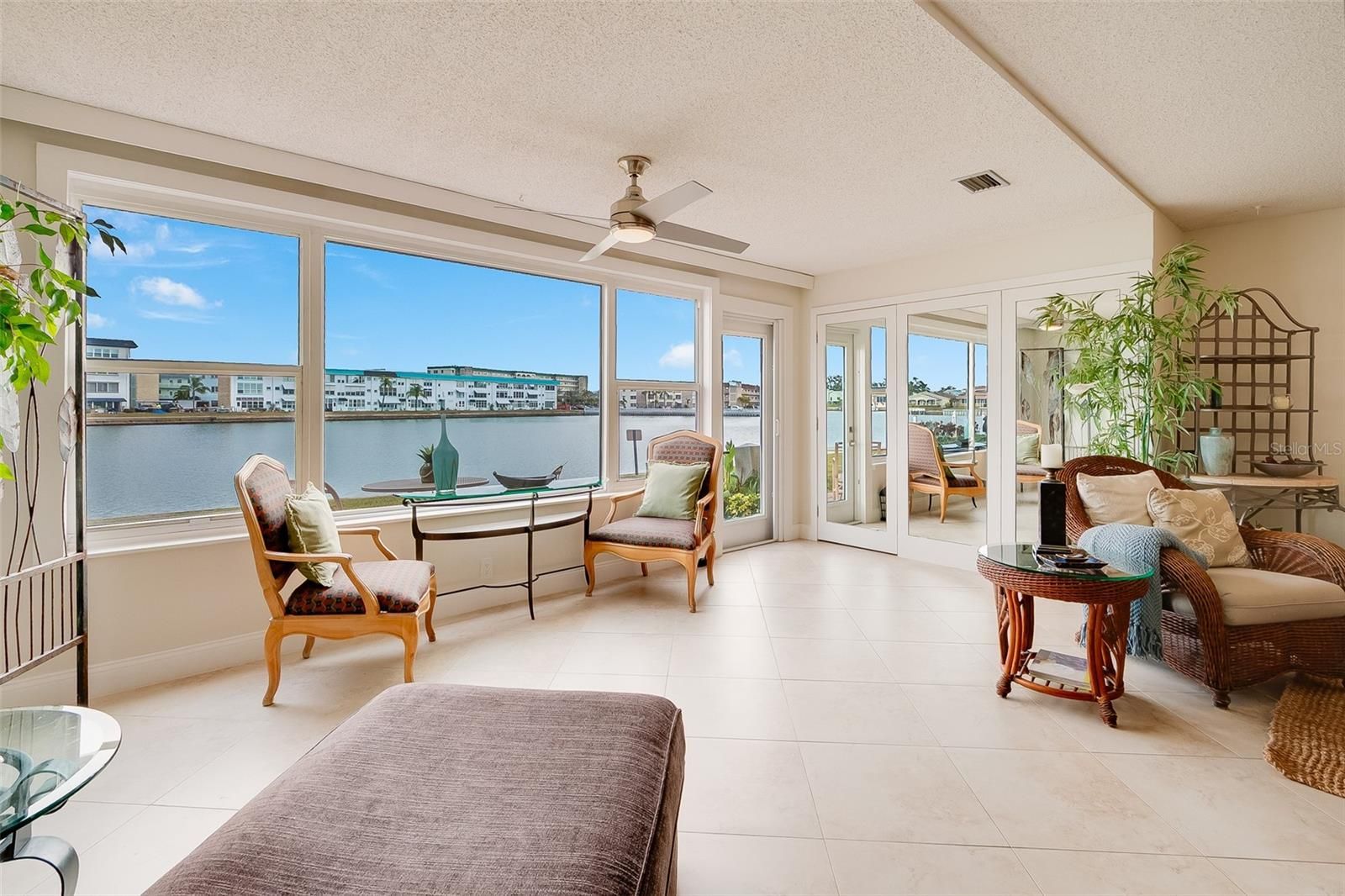Discover EXCEPTIONAL COASTAL LIVING in this super spacious, bright and BEAUTIFULLY RENOVATED WATERFRONT 1-bedroom condo located in the sought after Manchester Building at Town Shores of Gulfport, an awarding winning 55+ community with RESORT-STYLE AMENITIES! Whether a vacation destination, part-time or permanent home, you can't beat this wonderful location that is just blocks away from the artsy, vibrant and fun Gulfport Village with its own beach, restaurants, boutiques, music venues and art galleries. This bright and beautiful home comes turnkey and ATTRACTIVELY FURNISHED, featuring an impressively OPEN FLOOR PLAN, MODERN UPGRADES throughout, and SHIMMERING WATER VIEWS that create a serene, leisurely atmosphere. Every detail has been thoughtfully upgraded, and the customized alterations to the Deluxe model create a modern, inviting home that blends comfort with coastal elegance and provides a flowing, exceptionally open and airy floor plan. From the stylishly updated kitchen with white shaker cabinets, recessed lighting, new stainless appliances and sleek brushed nickel hardware ... to the living area that blends comfortable seating with plenty of space for dining ... to a relaxing nook by a scenic window … you will fall in love with this stunning waterfront unit! Walk out to the patio and breathe in the fresh sea breezes and immerse yourself in the intercoastal water views. The ambiance and tasteful design elements throughout blend beautifully together to bring the coastal outdoors inside. Upgrades include high impact windows and doors for safety, efficiency and peace of mind, new HVAC (2025), new Whirlpool and KitchenAid stainless appliances including a gas stove/air fryer combo, and an elongated island with lots of drawer space. Upgraded flooring throughout, including large square travertine-look tiles laid on the diagonal, and a bath with a 60"vanity, shower with tempered glass sliding doors and modern lighting. The monthly HOA fee includes a Spectrum Bulk internet and wireless package, natural gas for cooking (and on demand) hot water, flood and building insurance, and pool, landscaping and exterior maintenance. This unit is deeded with Carport space #33 for your convenience, and the Manchester has ample guest parking available in front of the building. Town Shores has its own private marina and slips (as they become available), 4 heated pools, an active and social Clubhouse with weekly events, a tennis/pickleball court, shuffleboard, bocce ball and kayak storage. This vibrant community is just a short distance from the fun, active and artsy village of Gulfport and its famous Gulfport Tuesday Fresh Market and lively First Friday Art Walks. Conveniently located just 30 minutes from TIA and 10 minutes from thriving downtown St. Pete and the Gulf coast beaches. Don't miss out on this beautiful turnkey unit.